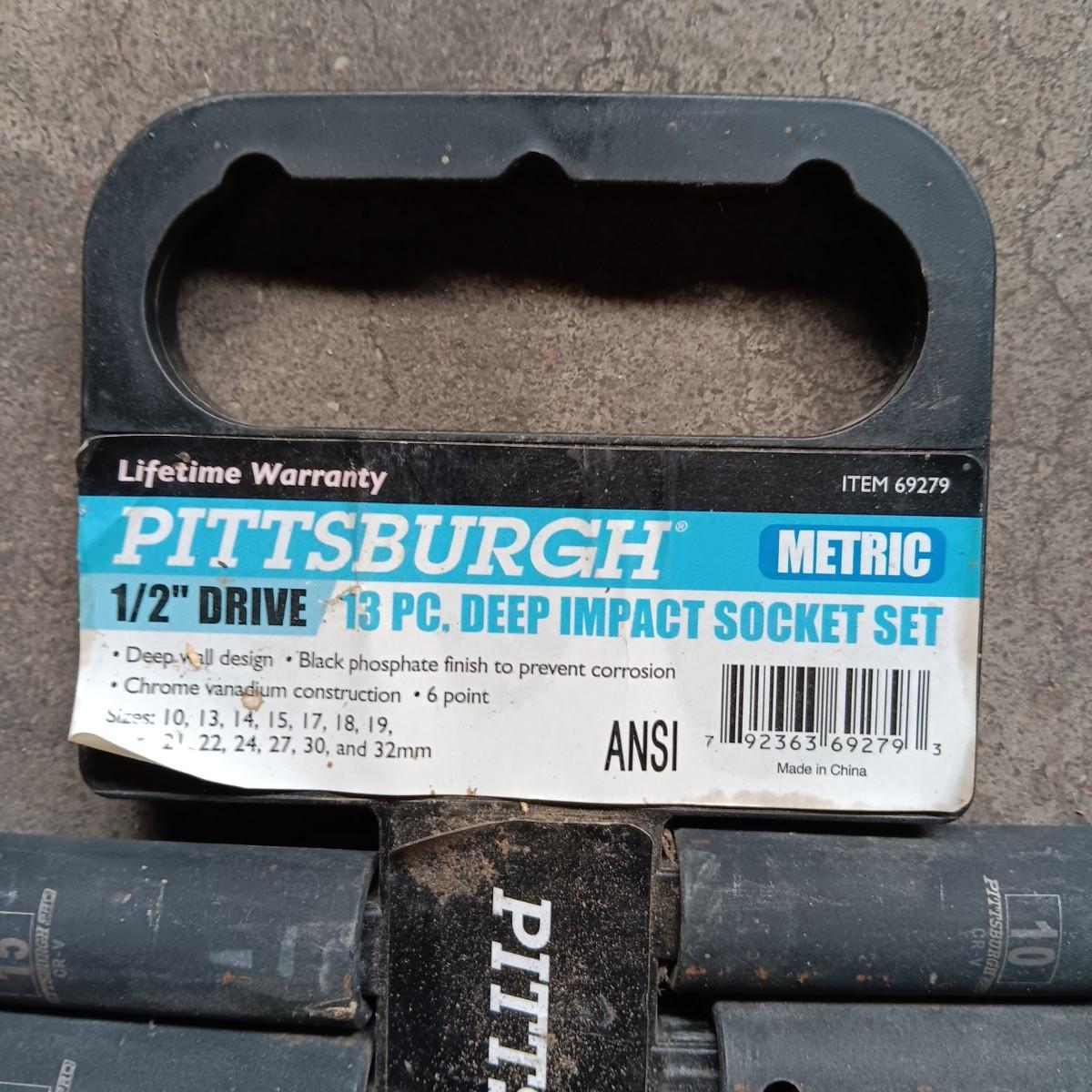 PITTSBURGH 1/2" DRIVE 13 PC DEEP IMPACT METRIC SOCKETS