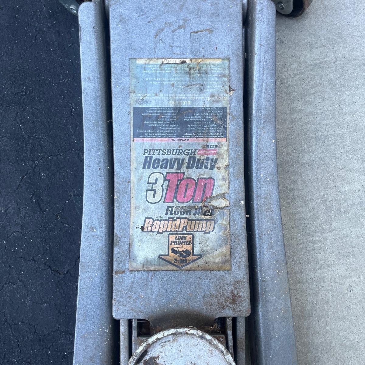 This heavy duty Pittsburgh 3 ton low profile jack features a rapid pump. See photos for more information.