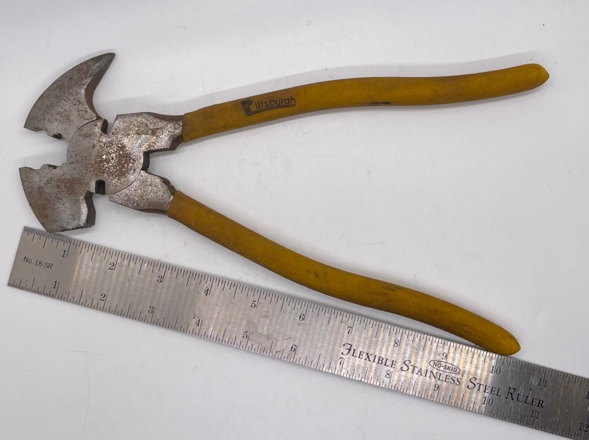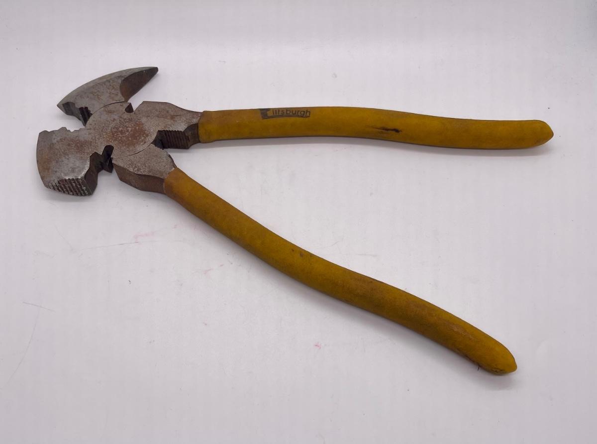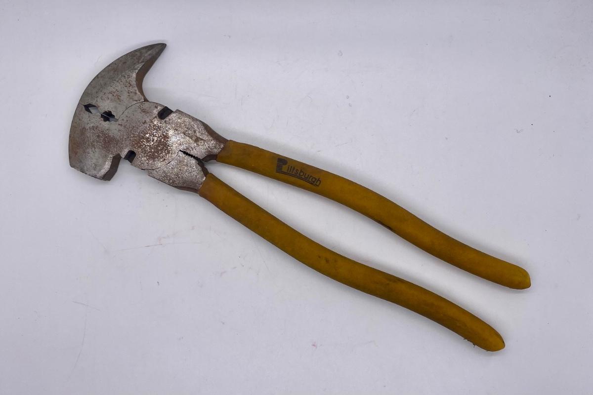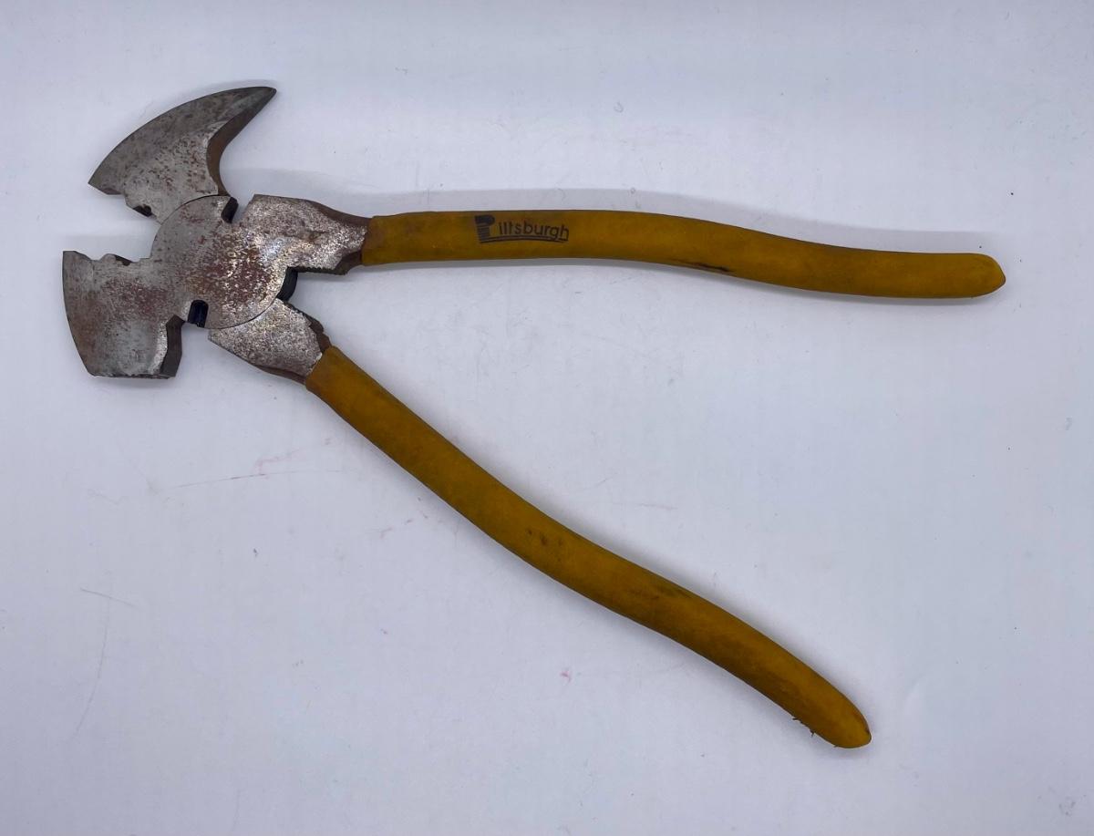 Multi Tool Ranch Fence Pliers, used for fencing, barbed wire, nail cutter tool, hammer head, staple puller. In good used condition.