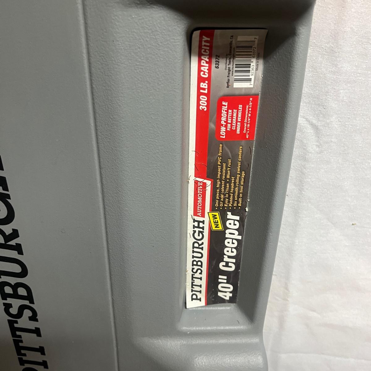 Lot includes a Pittsburgh low profile 40” creeper with a 300 pound weight limit.