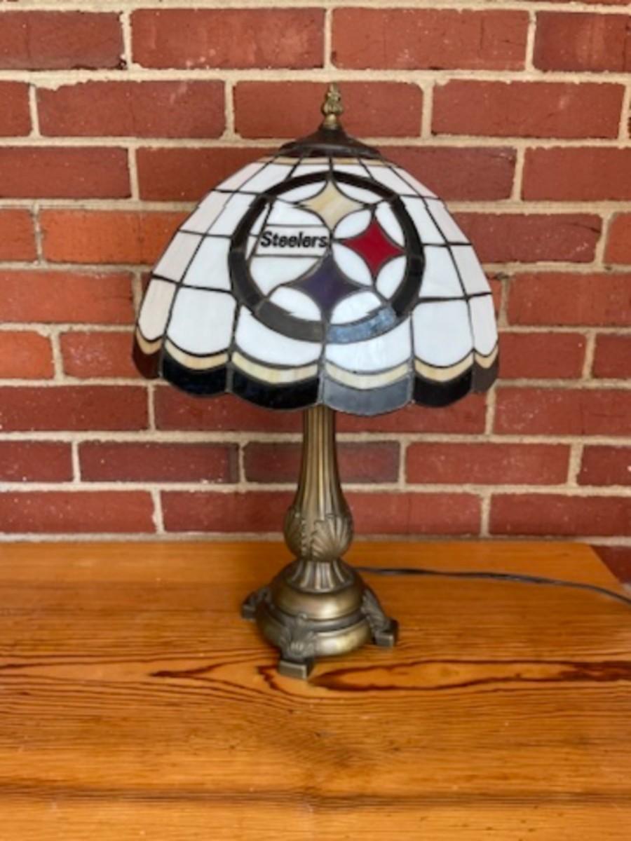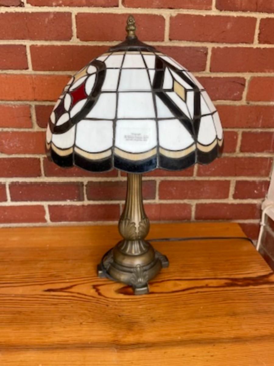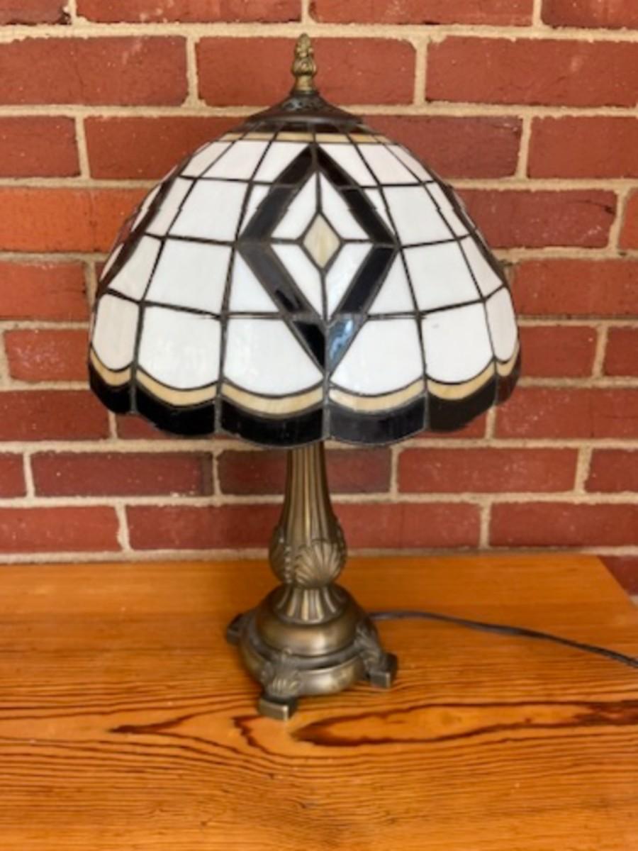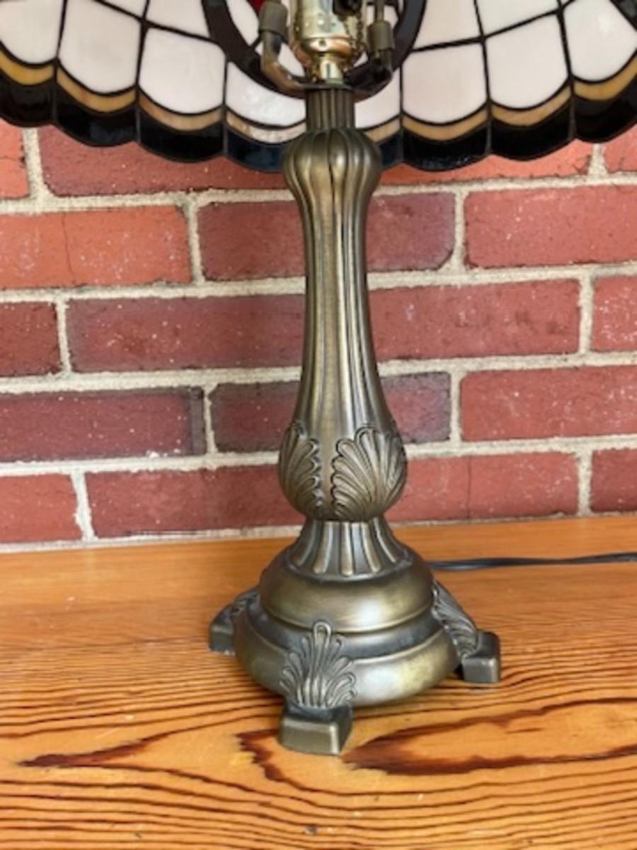 Shade measure 12" in diameter. The height of the lamp is 20" tall. In good working order.