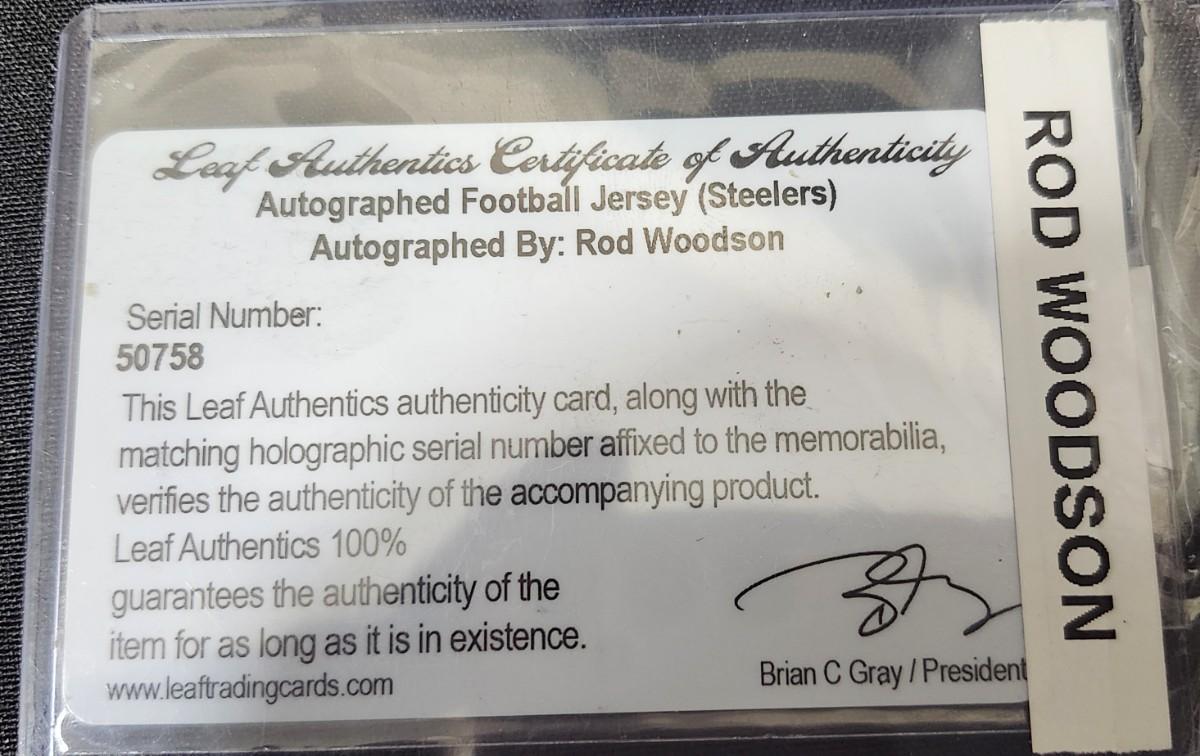 Pittsburgh Steelers Rod Woodson Autographed Black Jersey Leaf COA