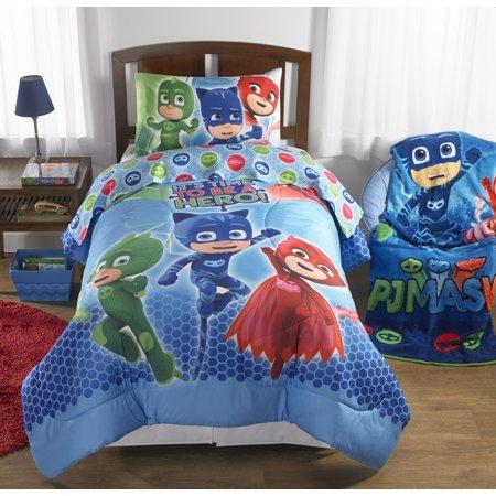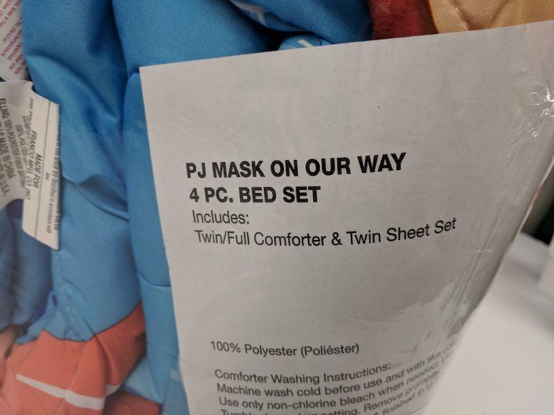 PJ Mask Twin 4PC. Bed Set, Comforter & Sheet Set, Open - New