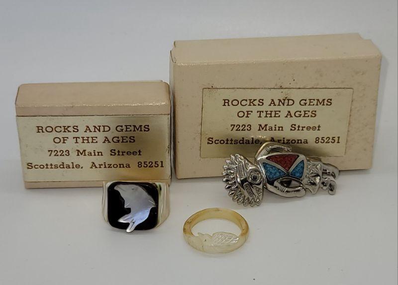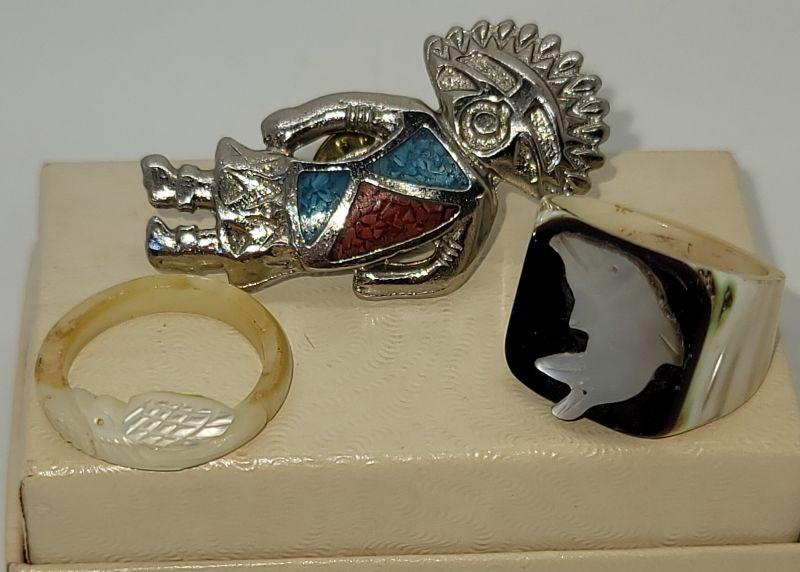 PJ22** Indian Pin and 2 rings size 5 1/2 each.