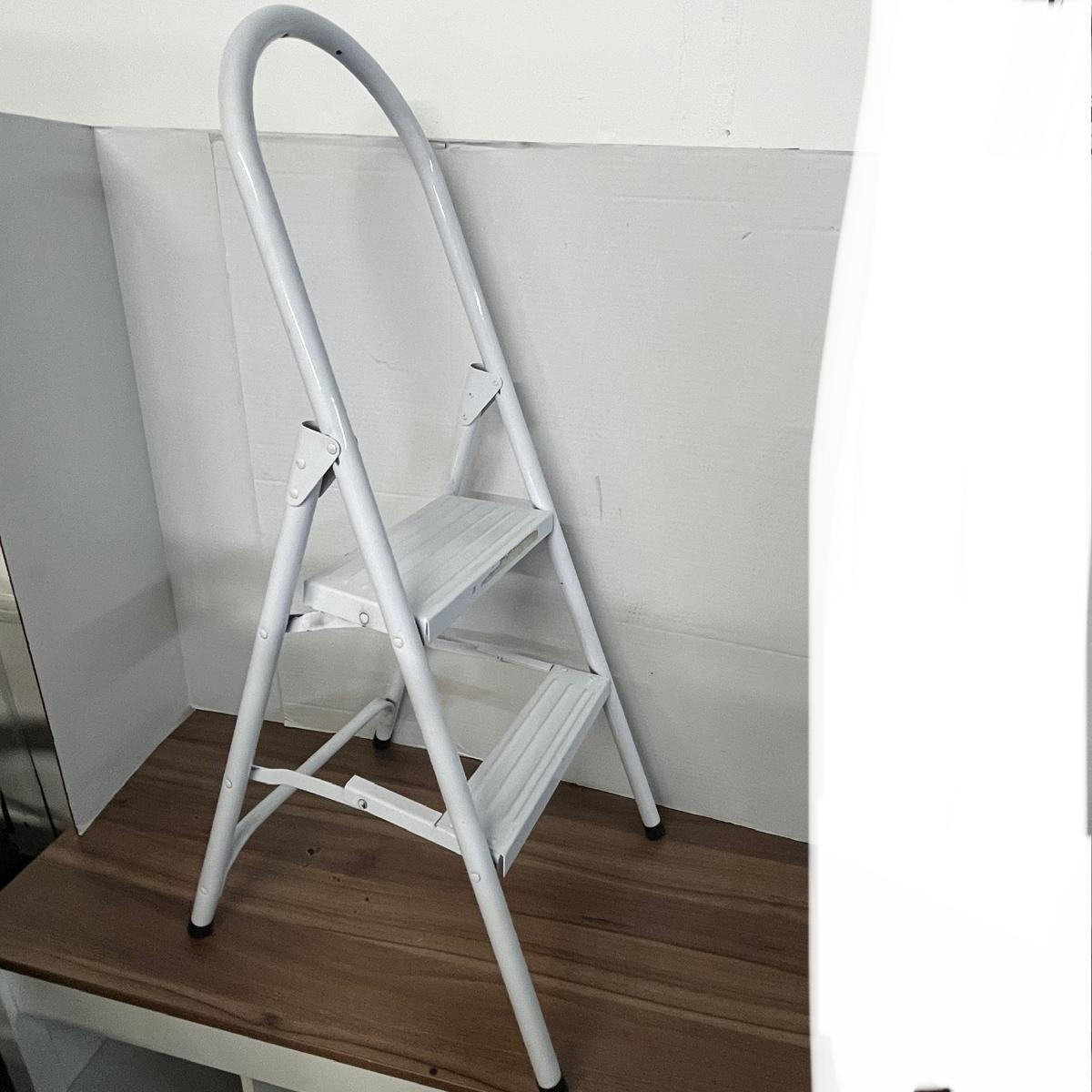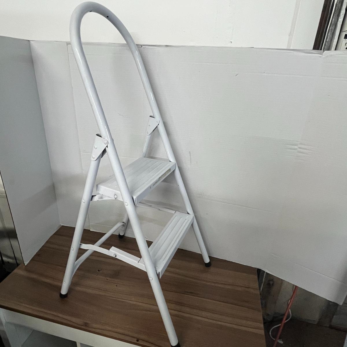 White metal ladder, 40" tall, 20" standing height, 200 lb rating.