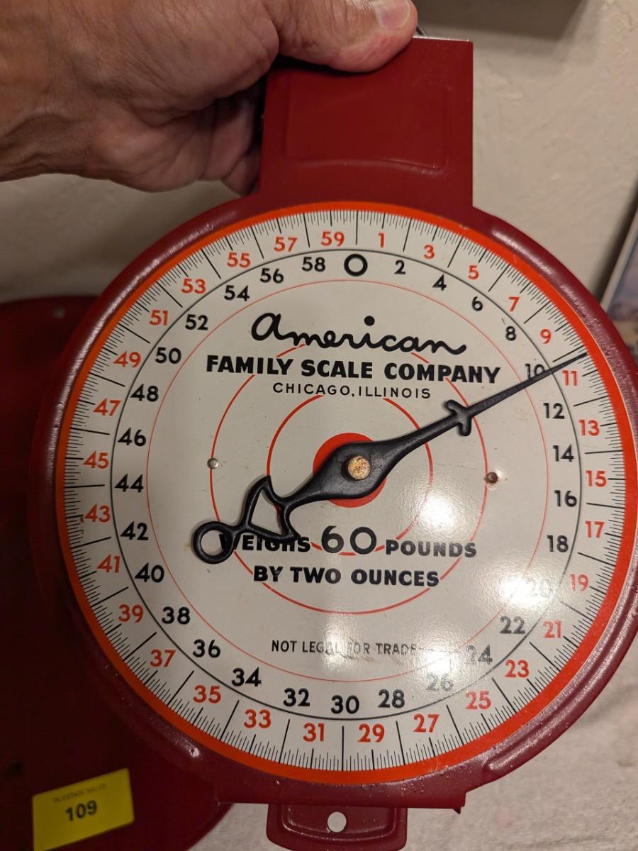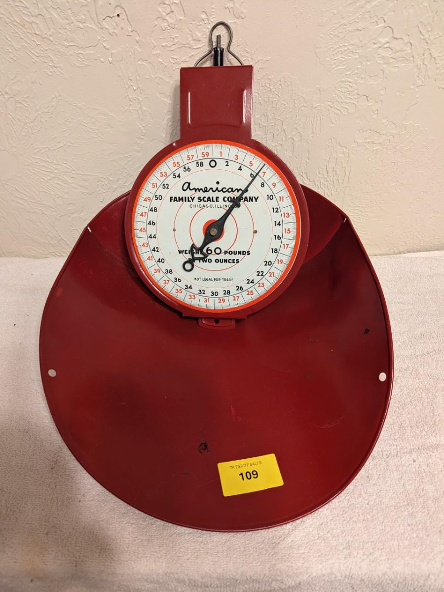 Vintage Red Hanging Scale by American Family Scale Company-no chains