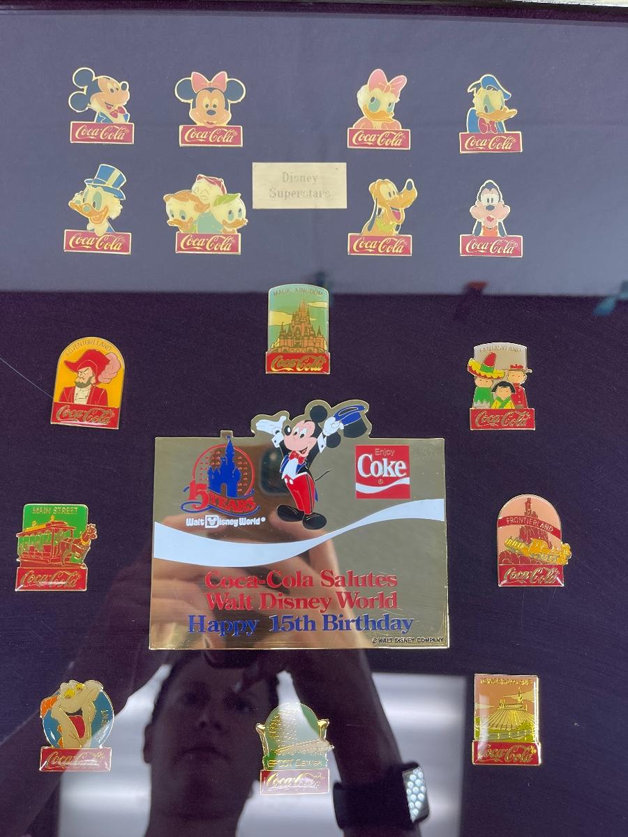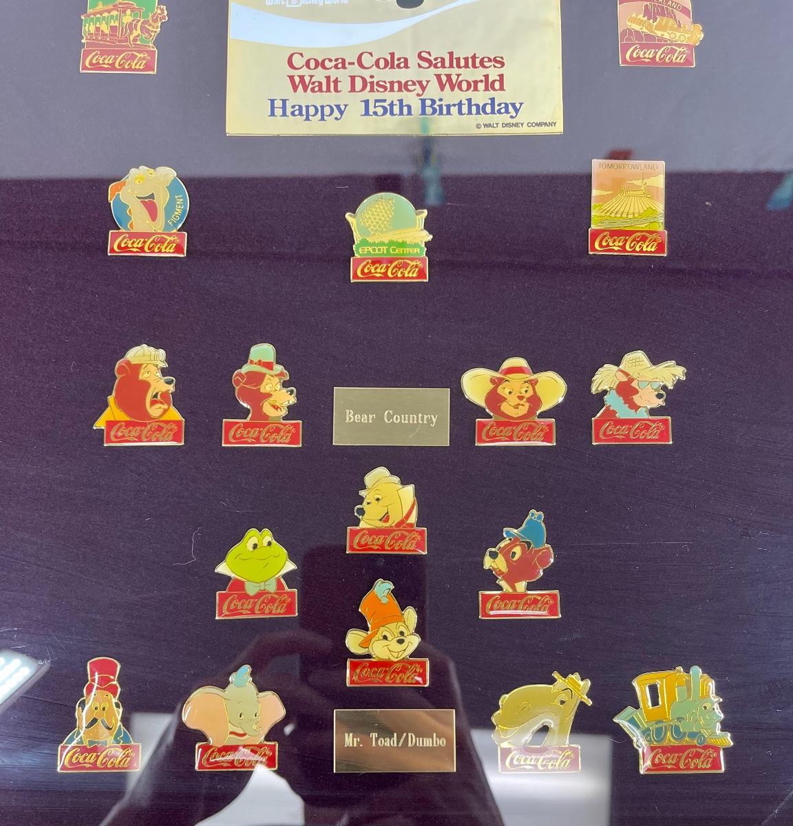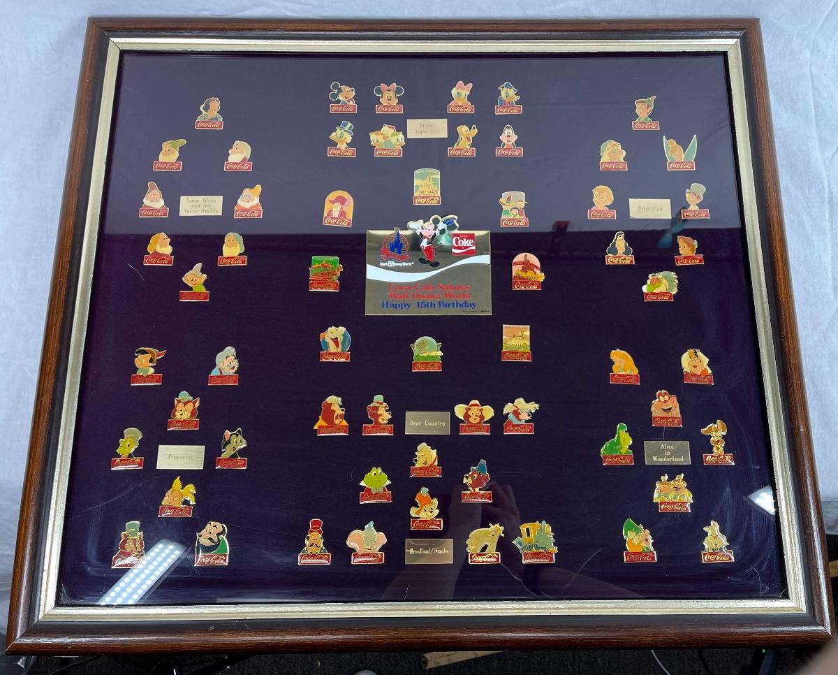 Coca-Cola Salutes Walt Disney World Happy 15th Birthday 60 pin framed set 1986