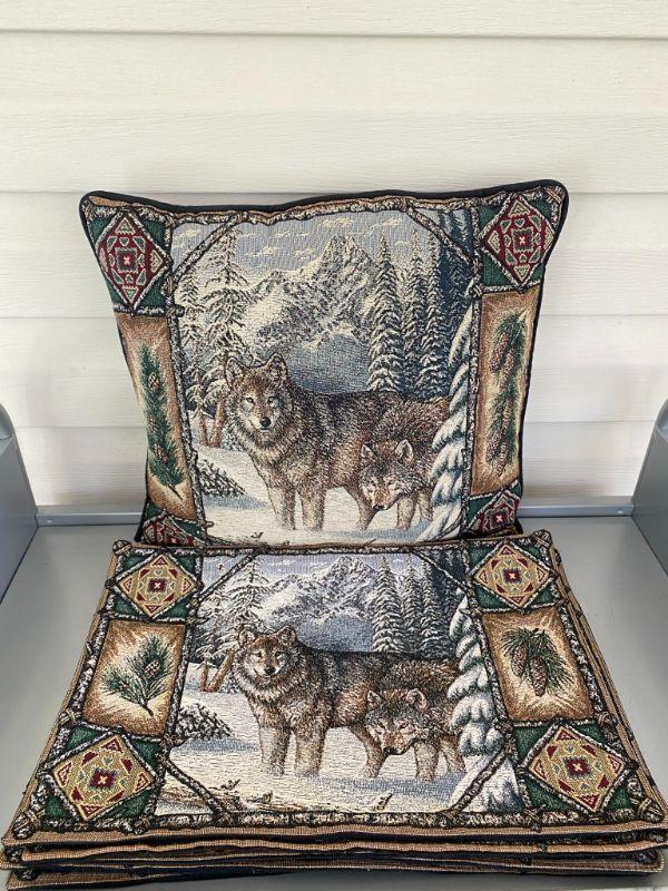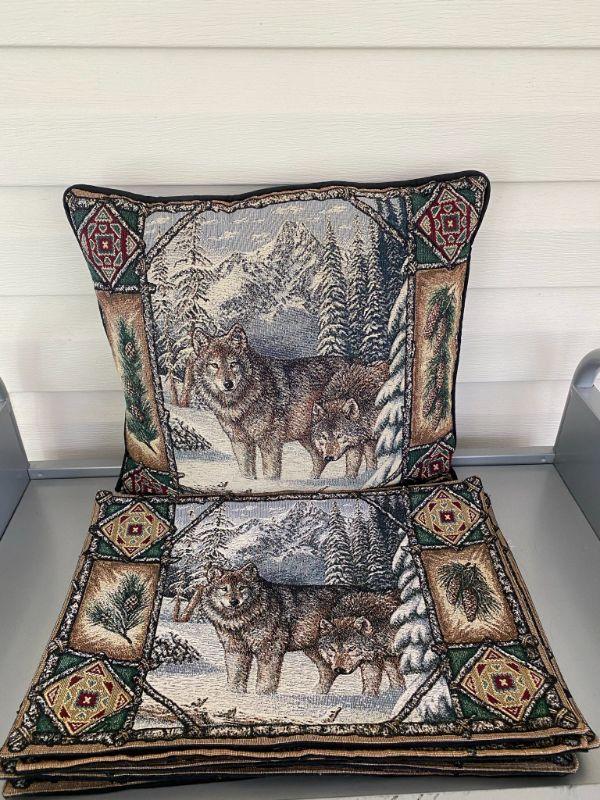 Set of 6 Place Mats with 1 pillow wolves in snow