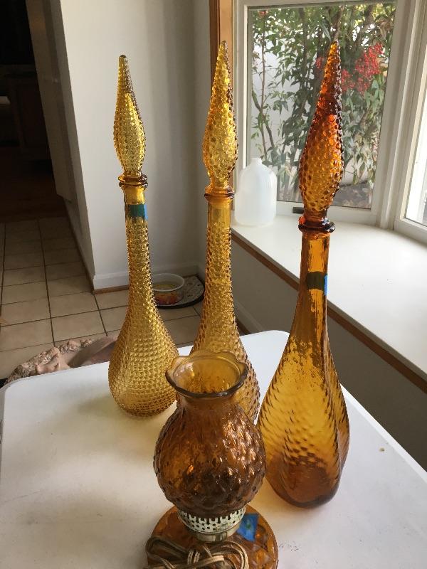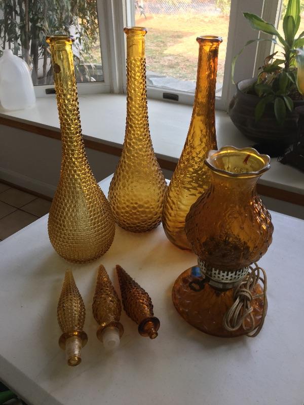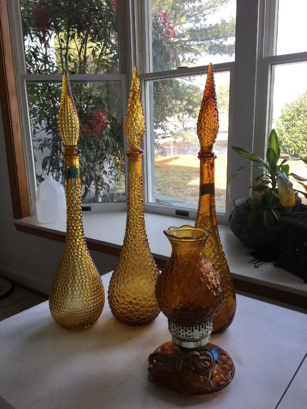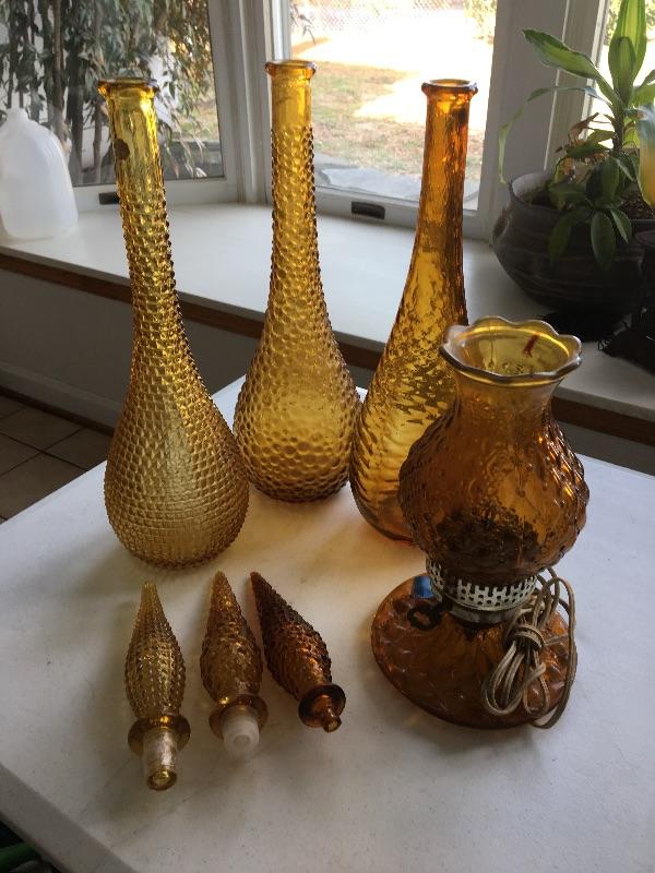 Set of 3 Crystal Decanters - Made in Italy & Vintage Lamp