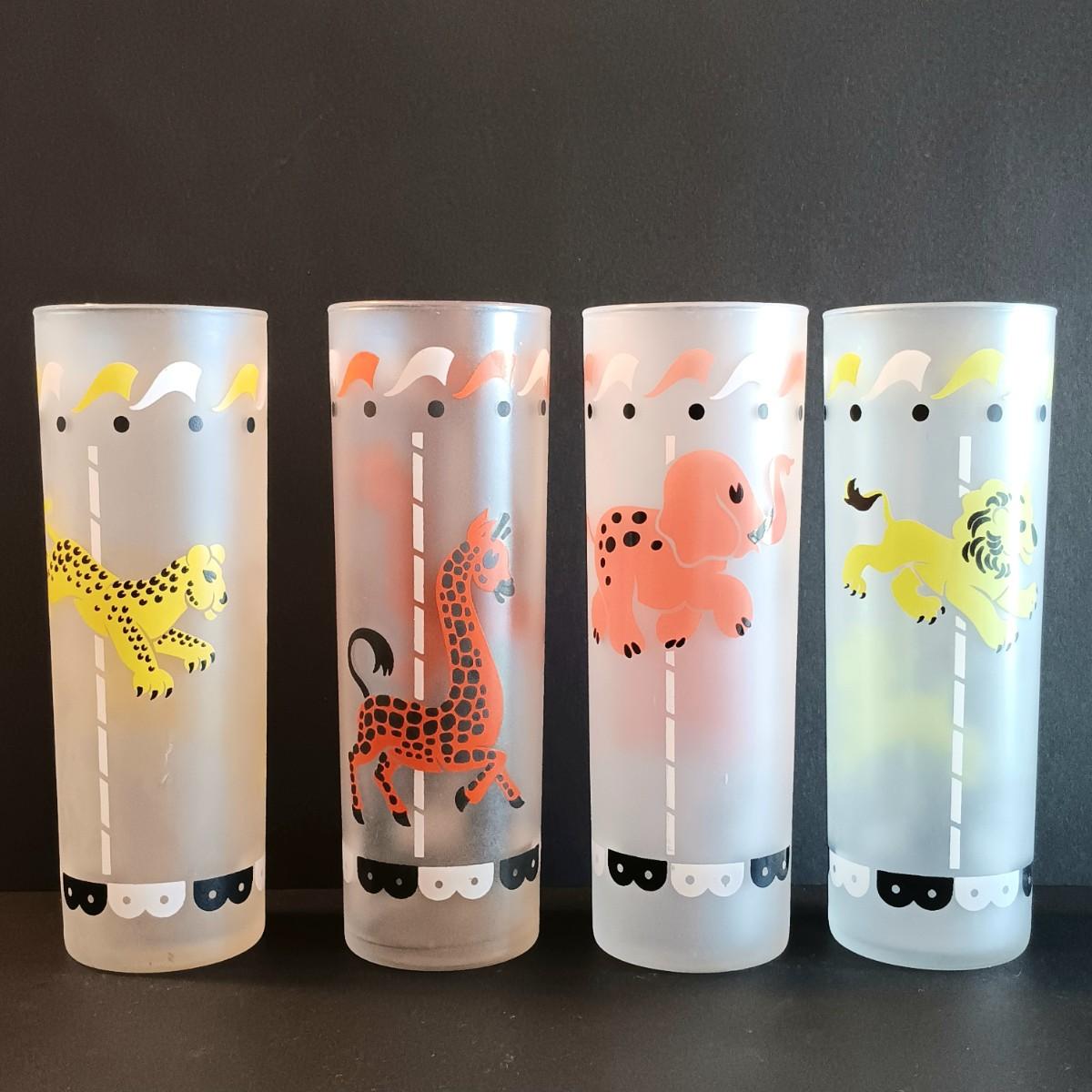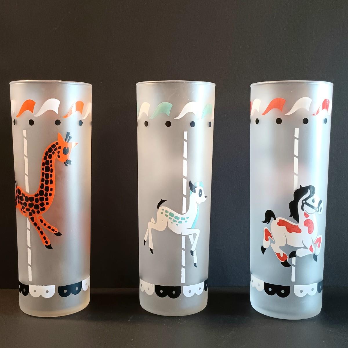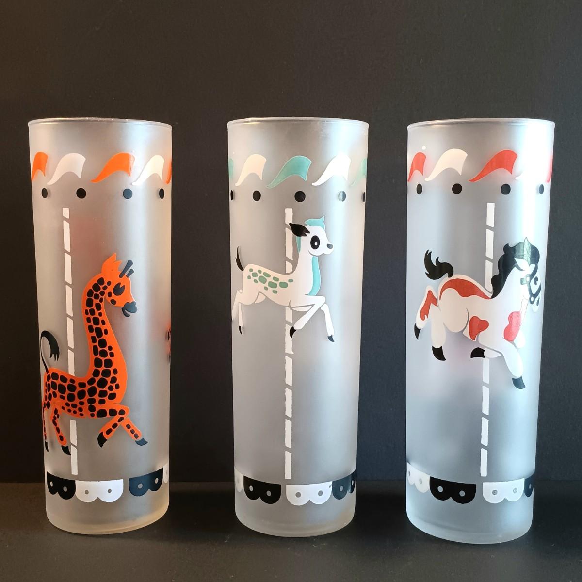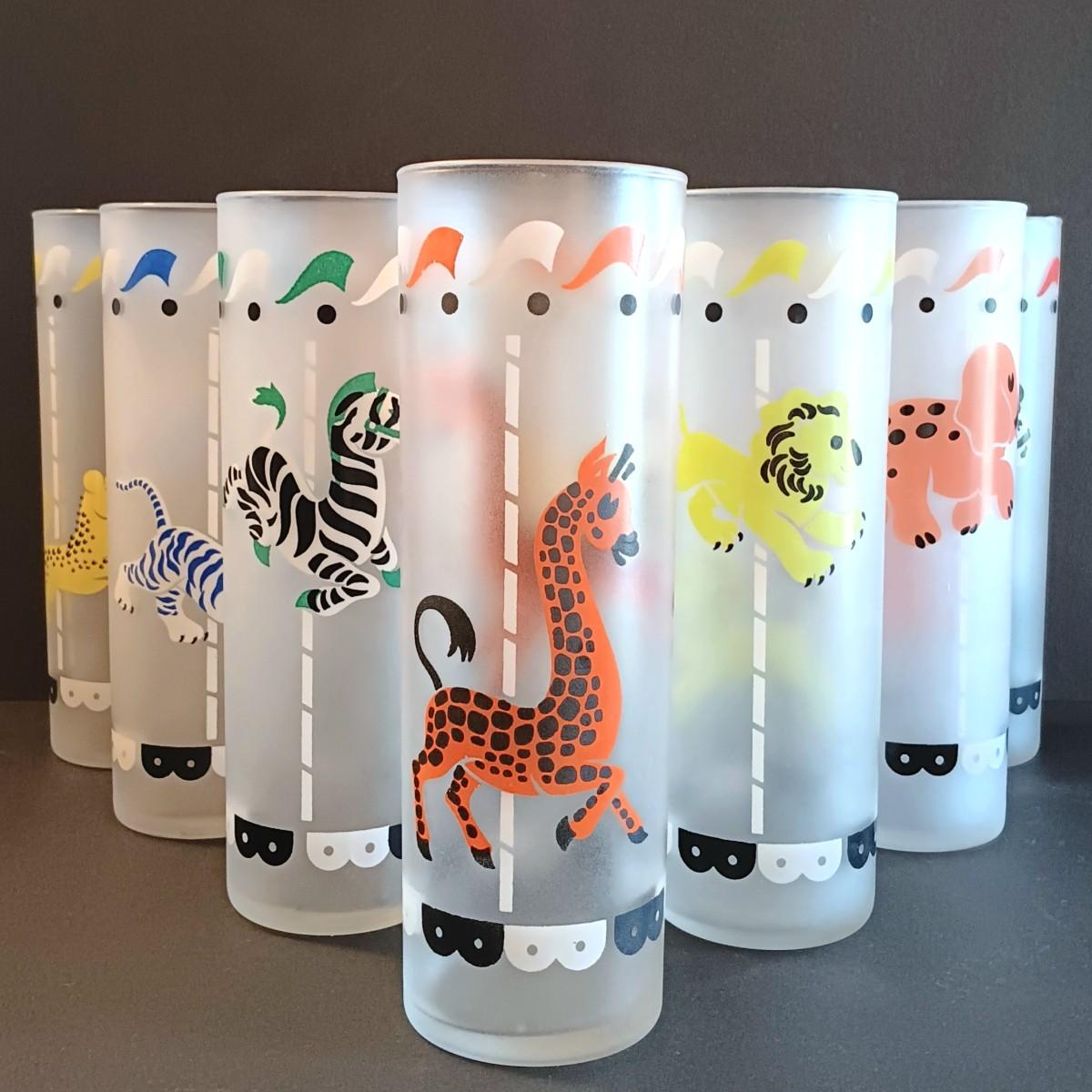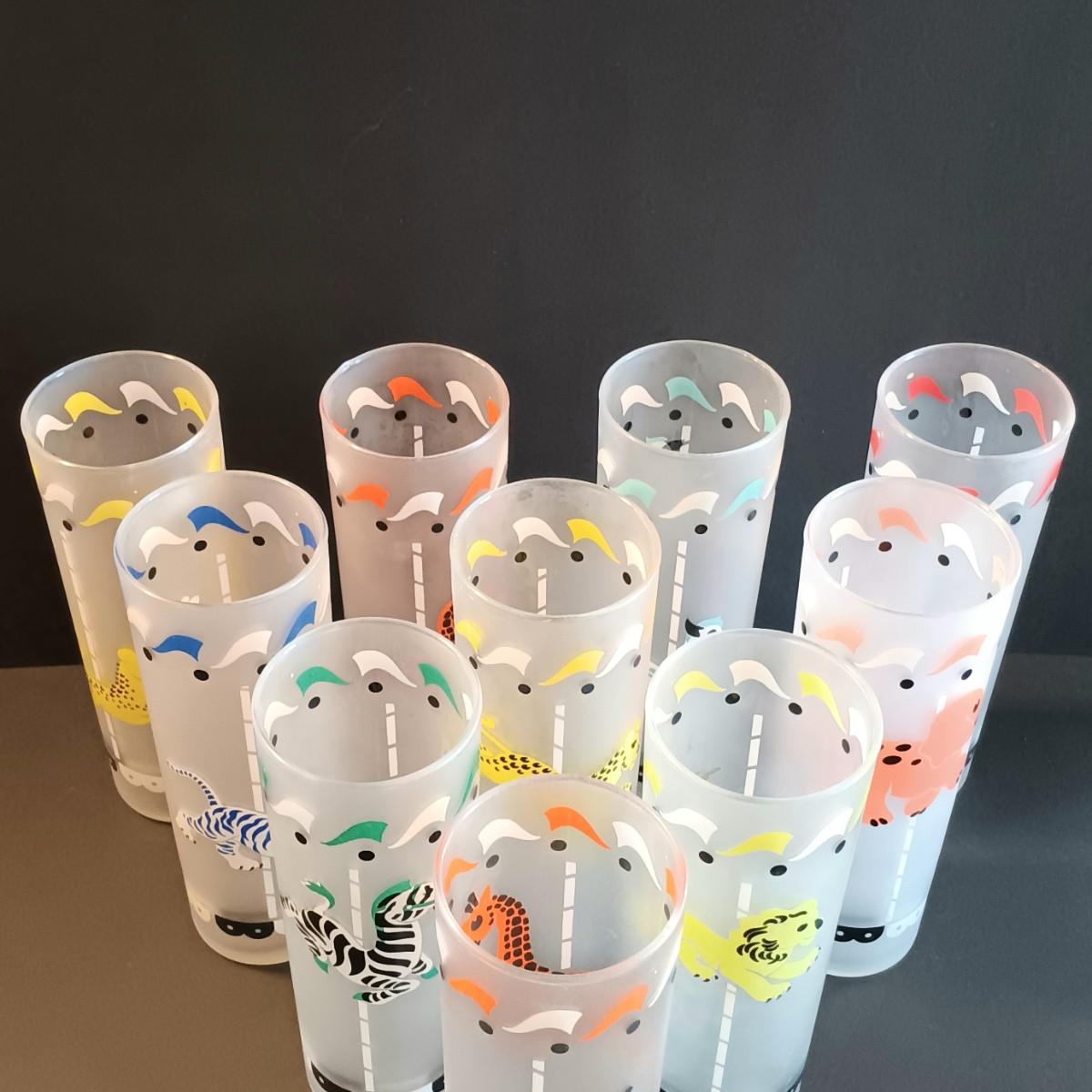 LOT 1: Collection of 10 Vintage Libbey Tall Frosted Carousel Glasses