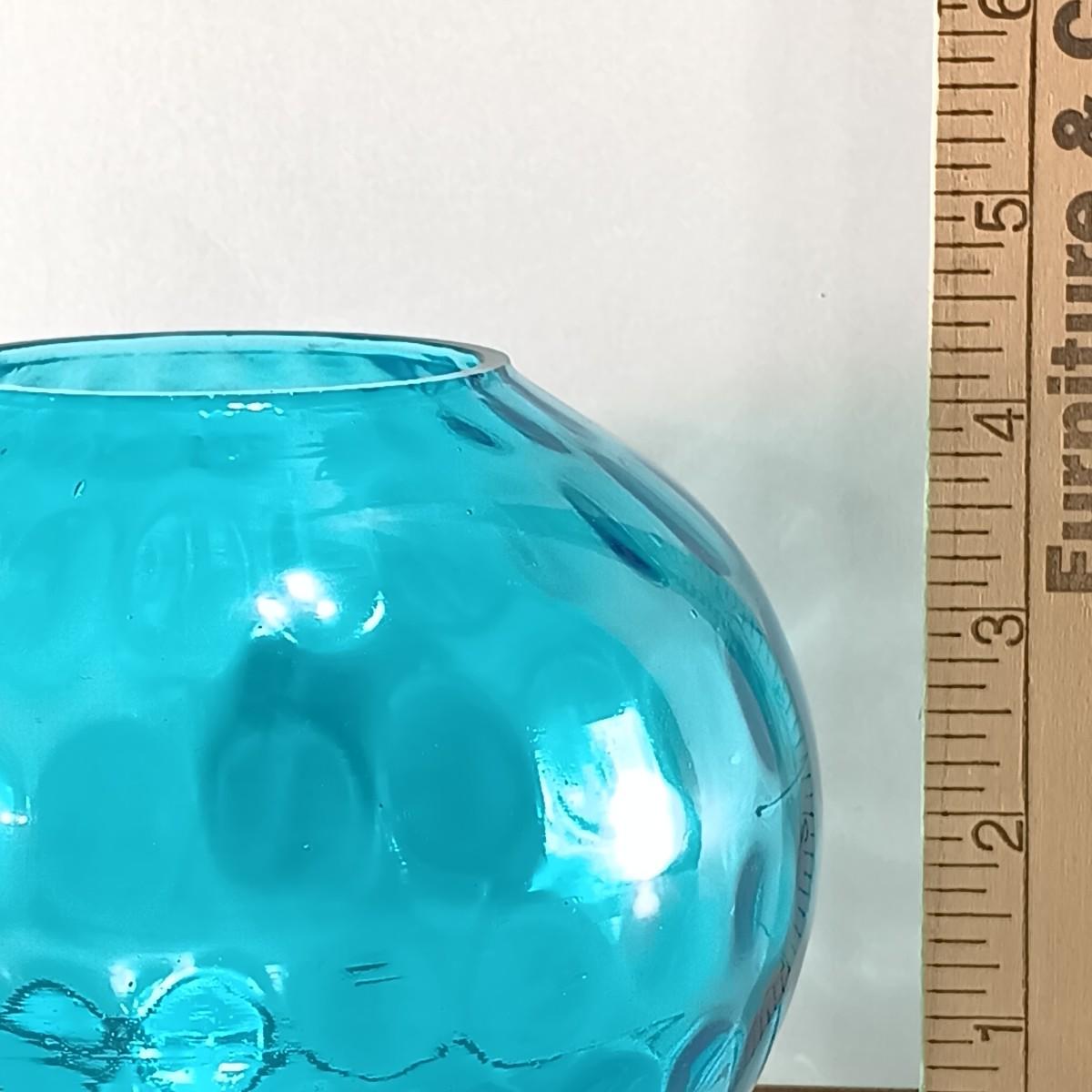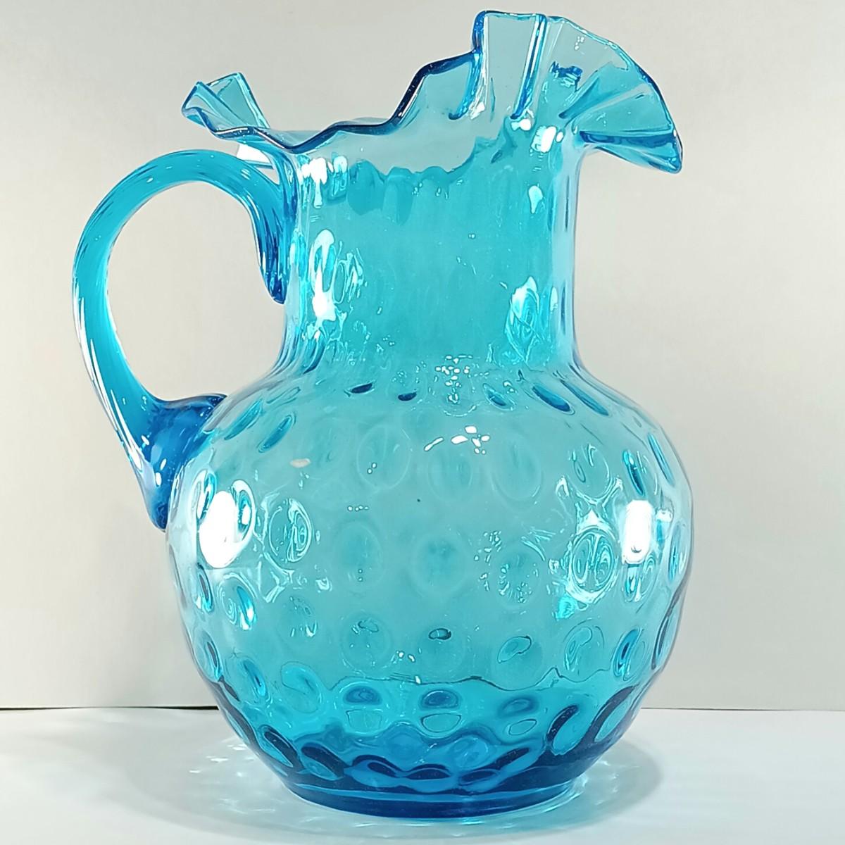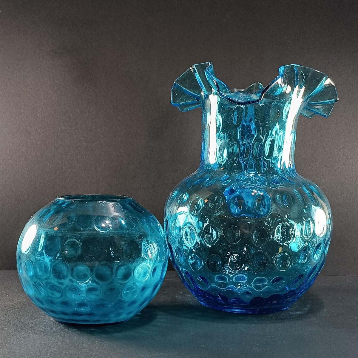 LOT 1: Blue Glass Thumbprint Pitcher w/ Round Vase