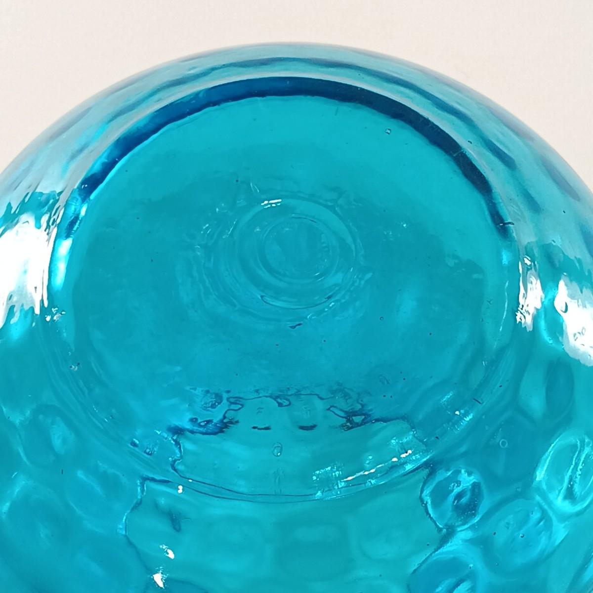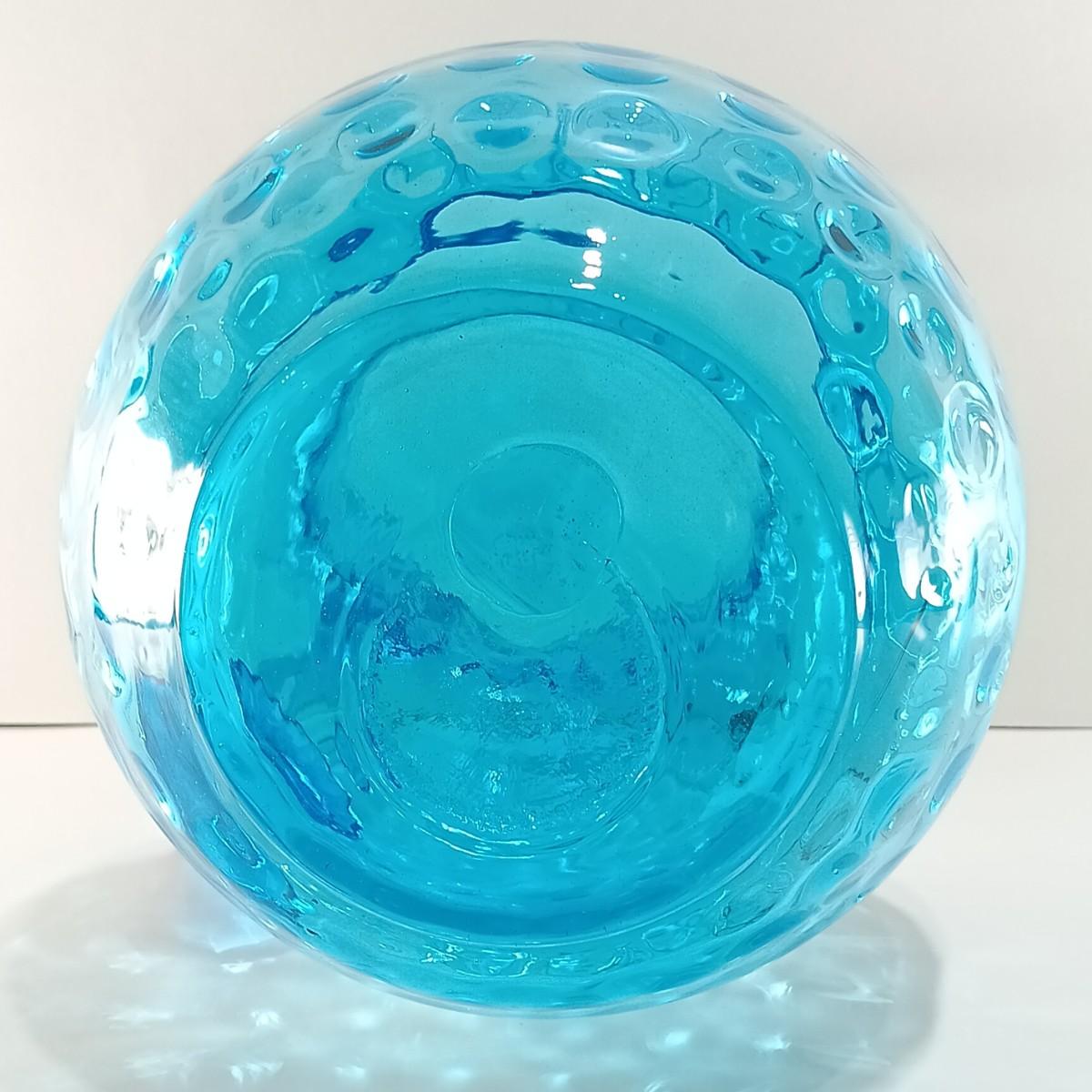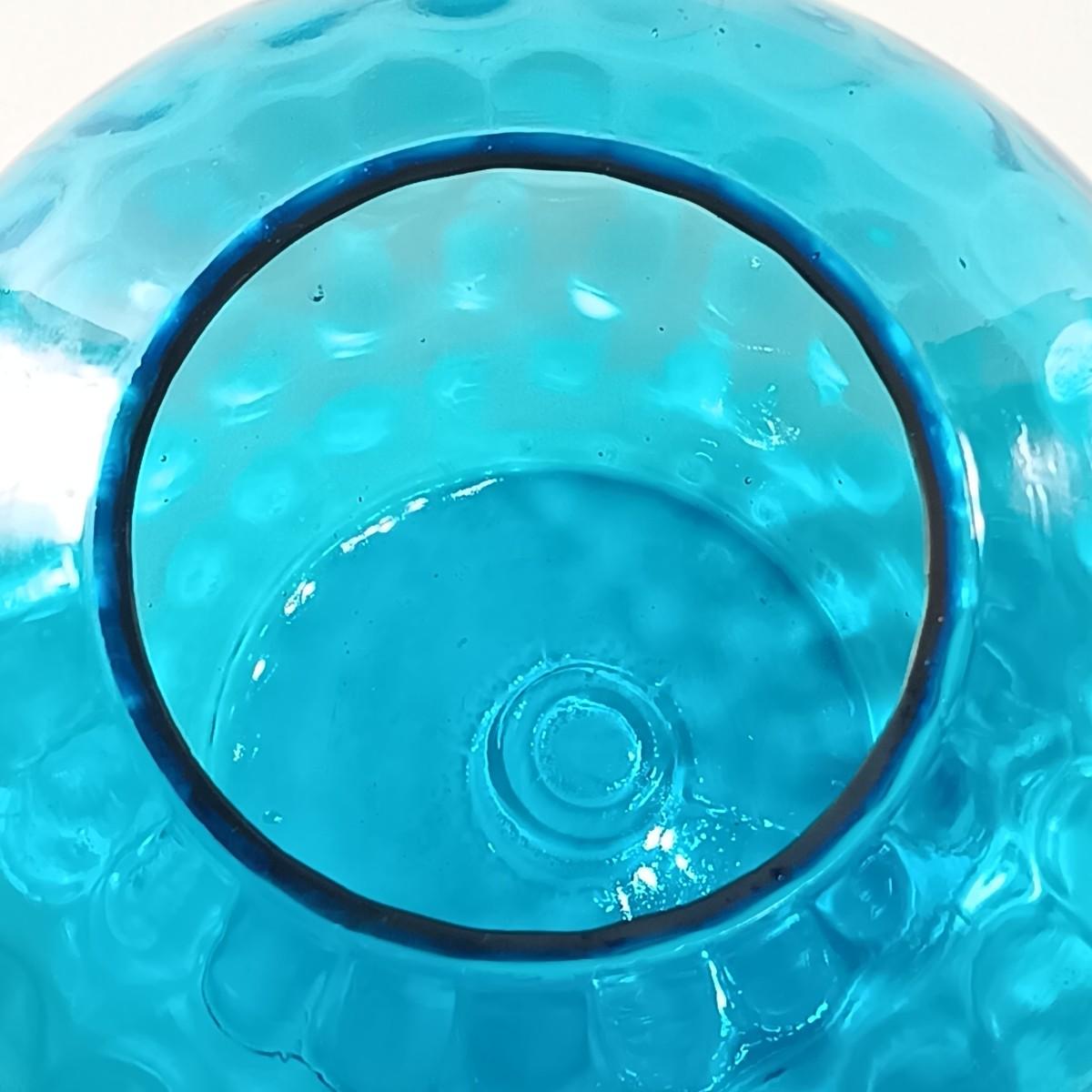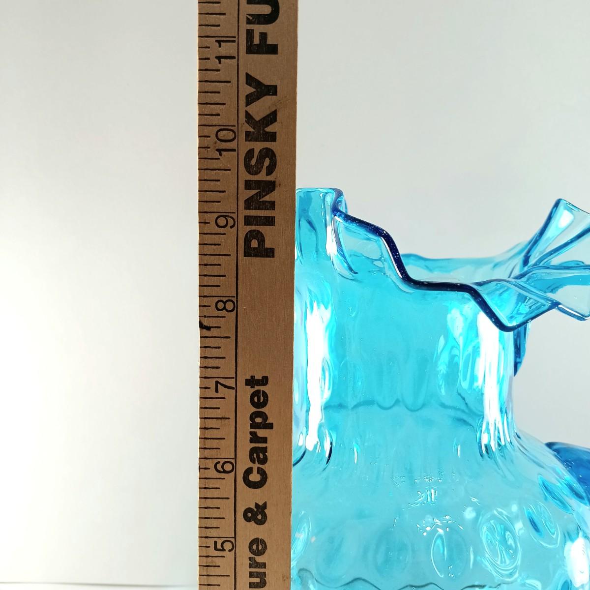 LOT 1: Blue Glass Thumbprint Pitcher w/ Round Vase