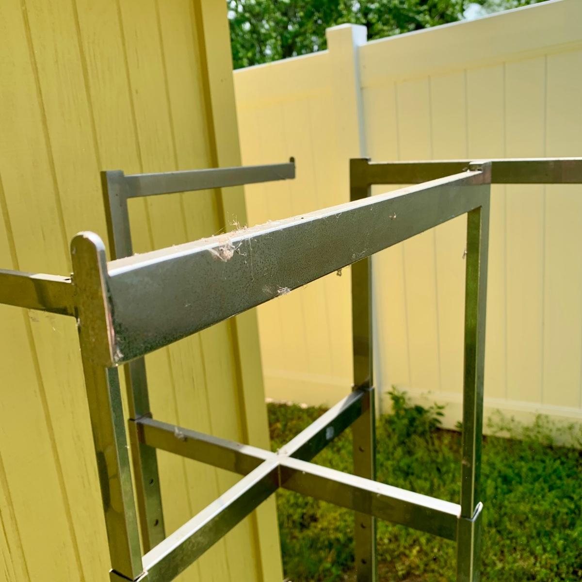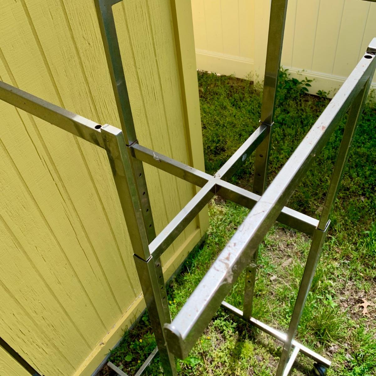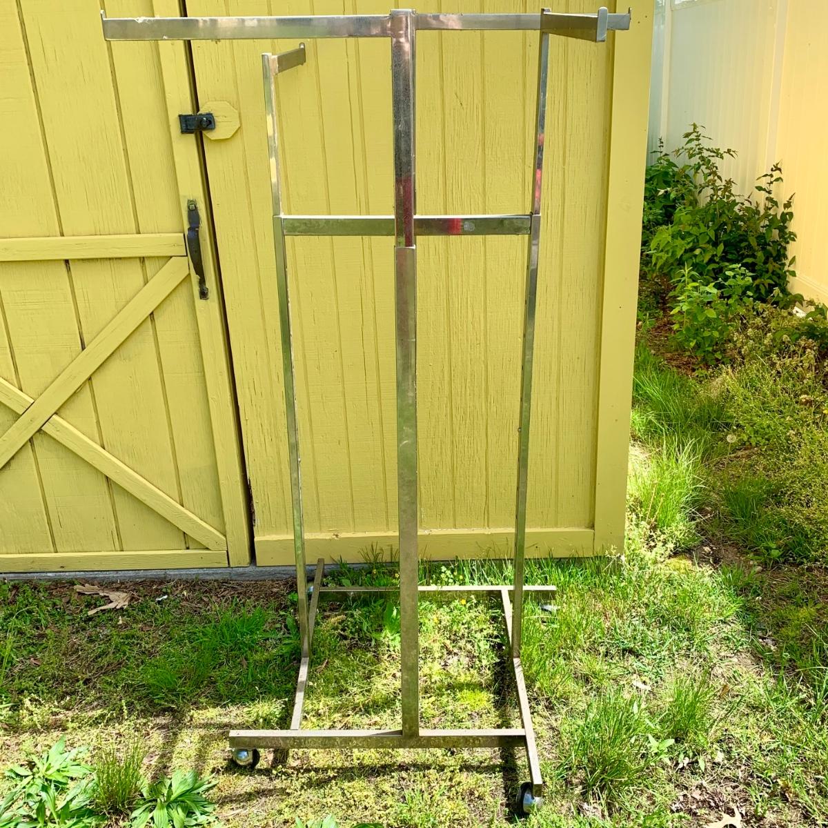 Lot 1 S: Commercial Chrome Four Armed Clothing Display Rack W/ Wheels