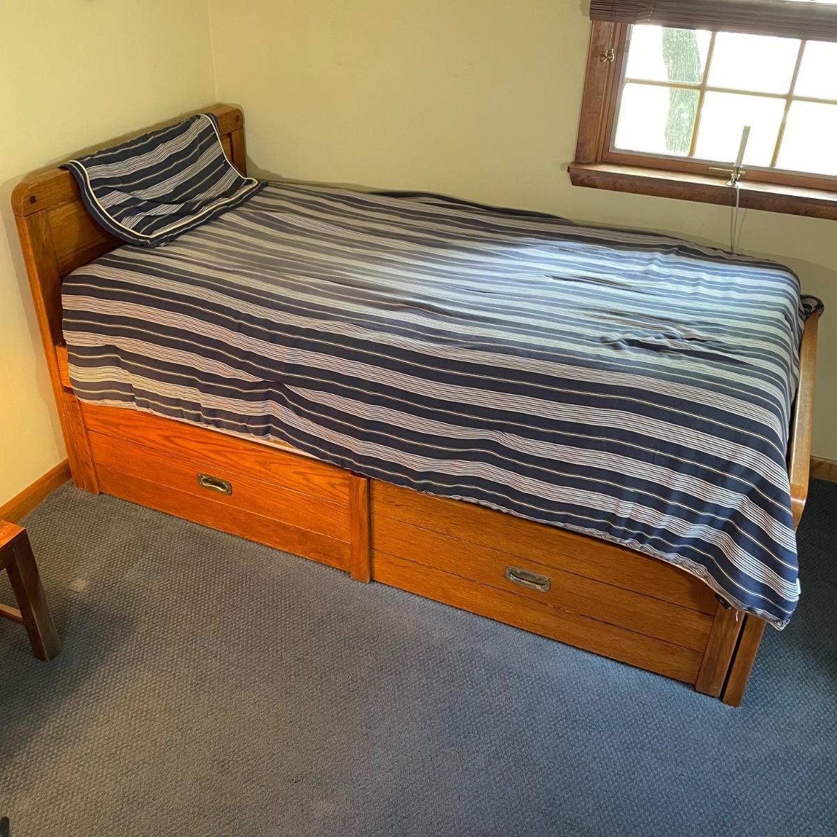 Dresser is 36x18x48, Dresser with mirror is 44.5x18x68 and bed is 41x82x39. Please see all pictures as they are the best representation of the items. The pictures show condition, measurements if taken, and what is included in the lot. Due to the large amount that we photograph and the time frame, we are not always able to take measurements. All items unless noted, are pre-owned and have been used. If you purchased furniture, you must bring help. We do not allow one person to carry large furniture out on their own. Bring help, tools and a truck for the safety of our client’s homes, and your personal safety. Any damages that result to the property including walls, and floors due to moving of the furniture will be charged to the buyer. Company policy. Thank you.