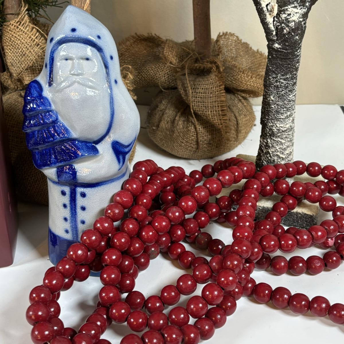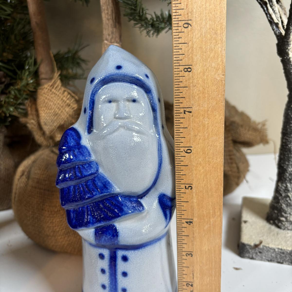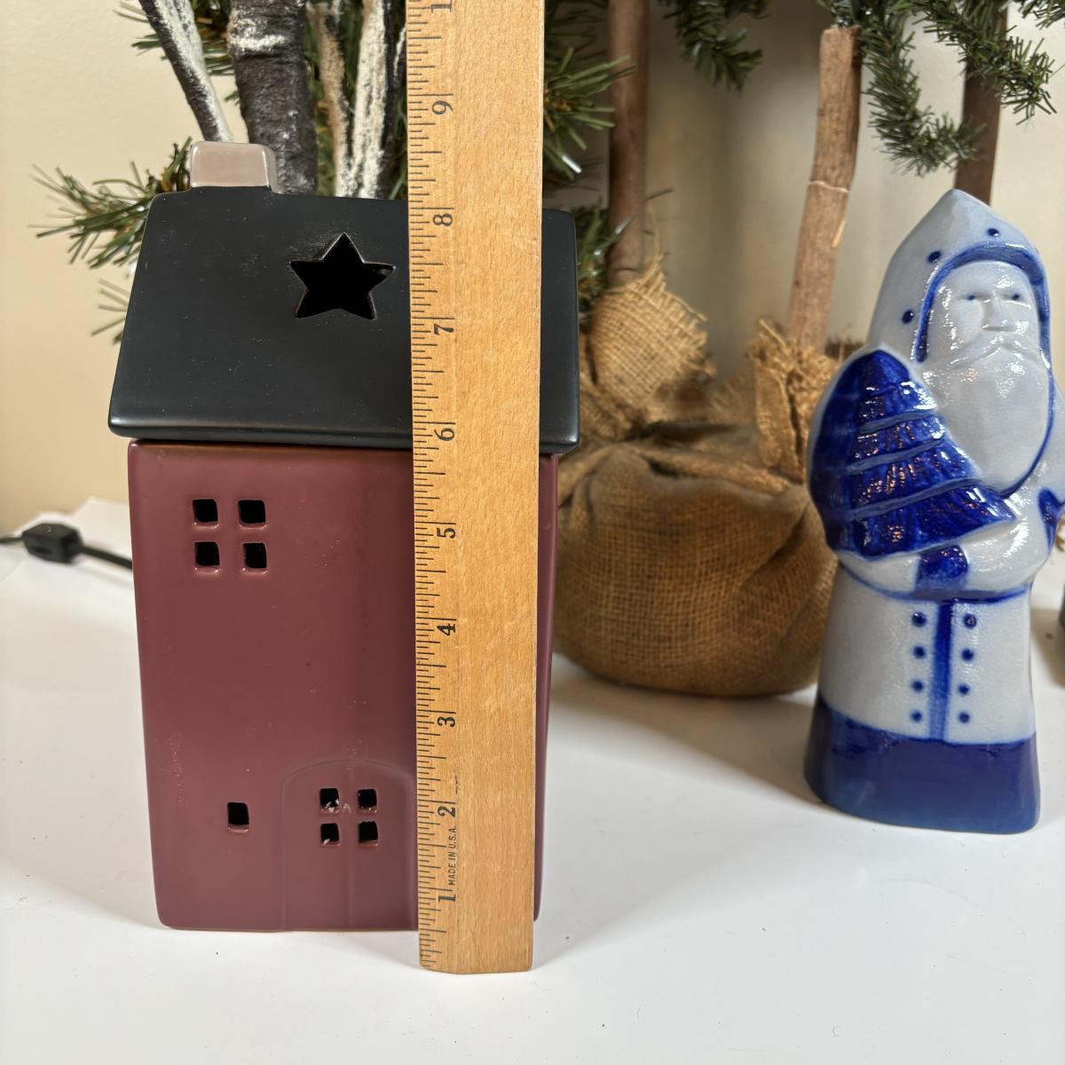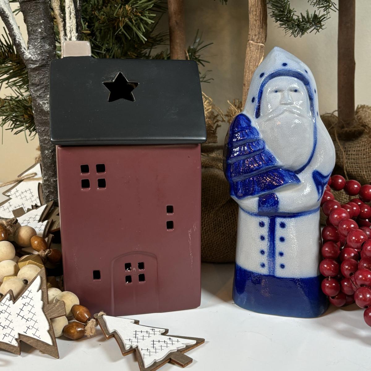 LOT 1: Primitive Christmas: Scentsy Farmhouse Primitive Electric Wax Warmer, Eldreth Pottery Grey & Cobalt Blue Salt Glaze Santa Claus Figure & Primitives