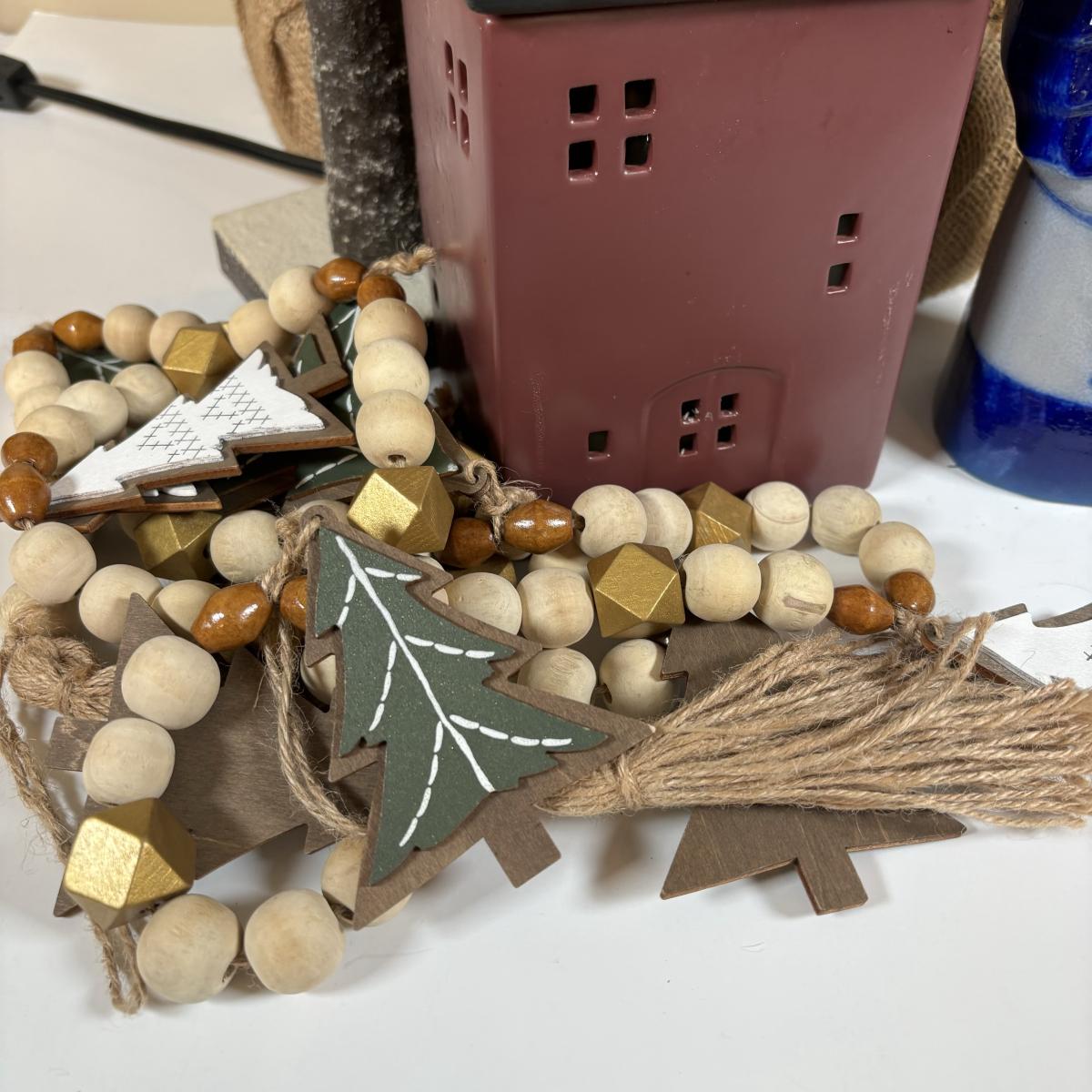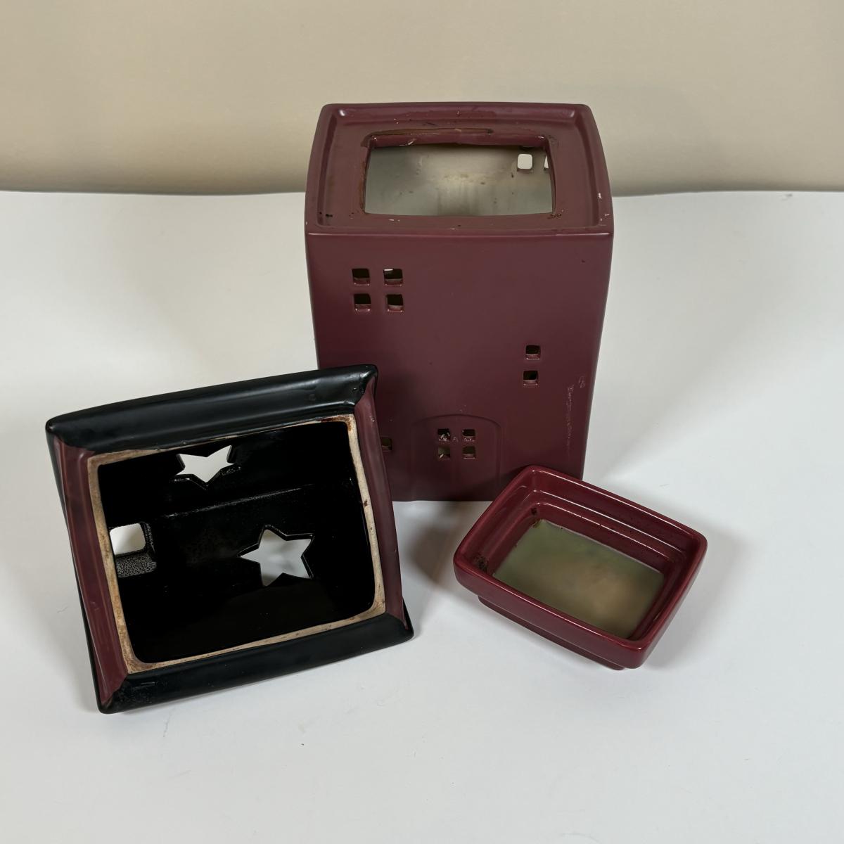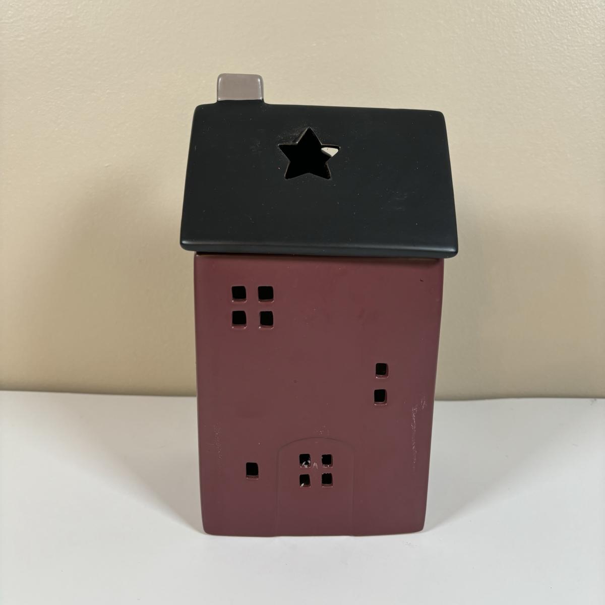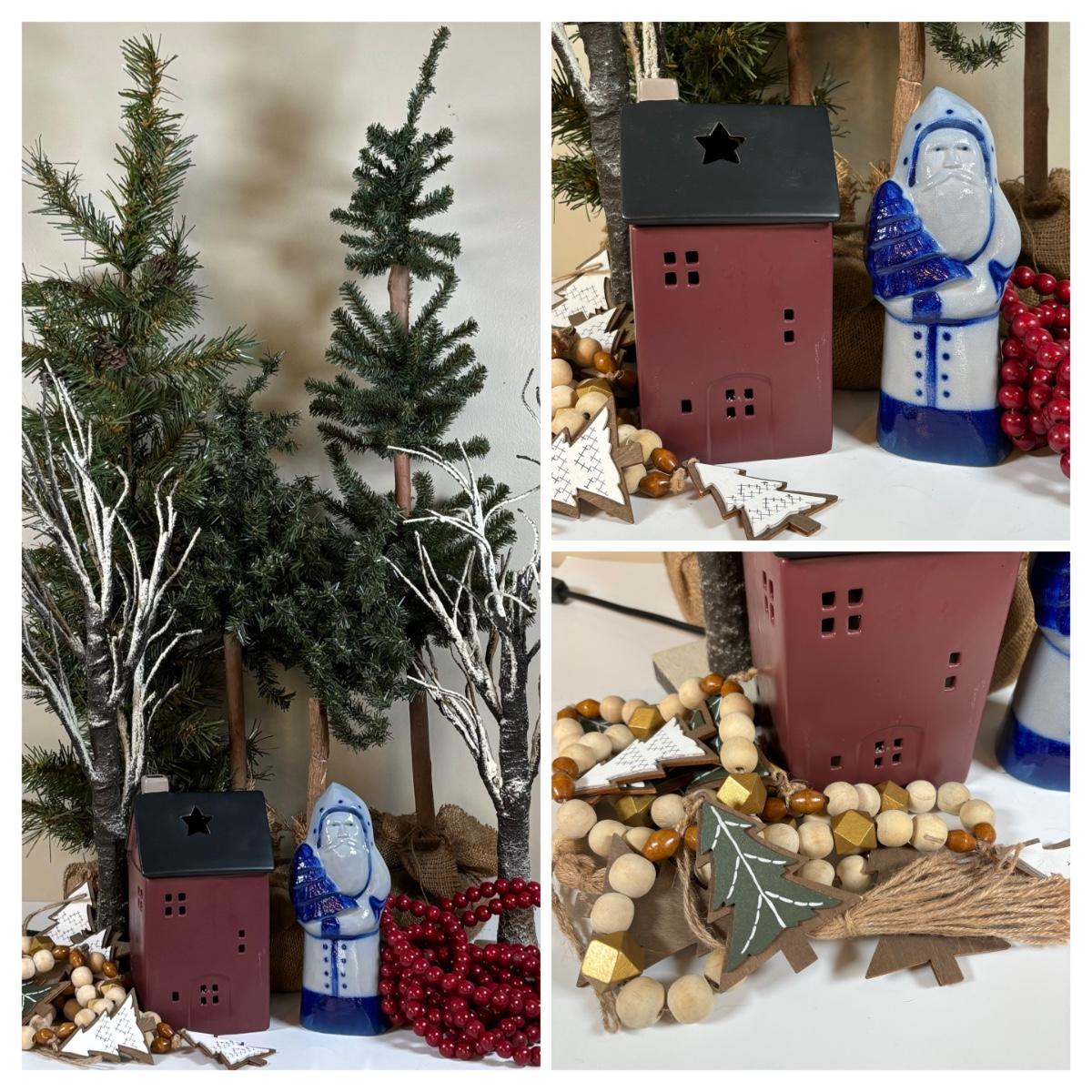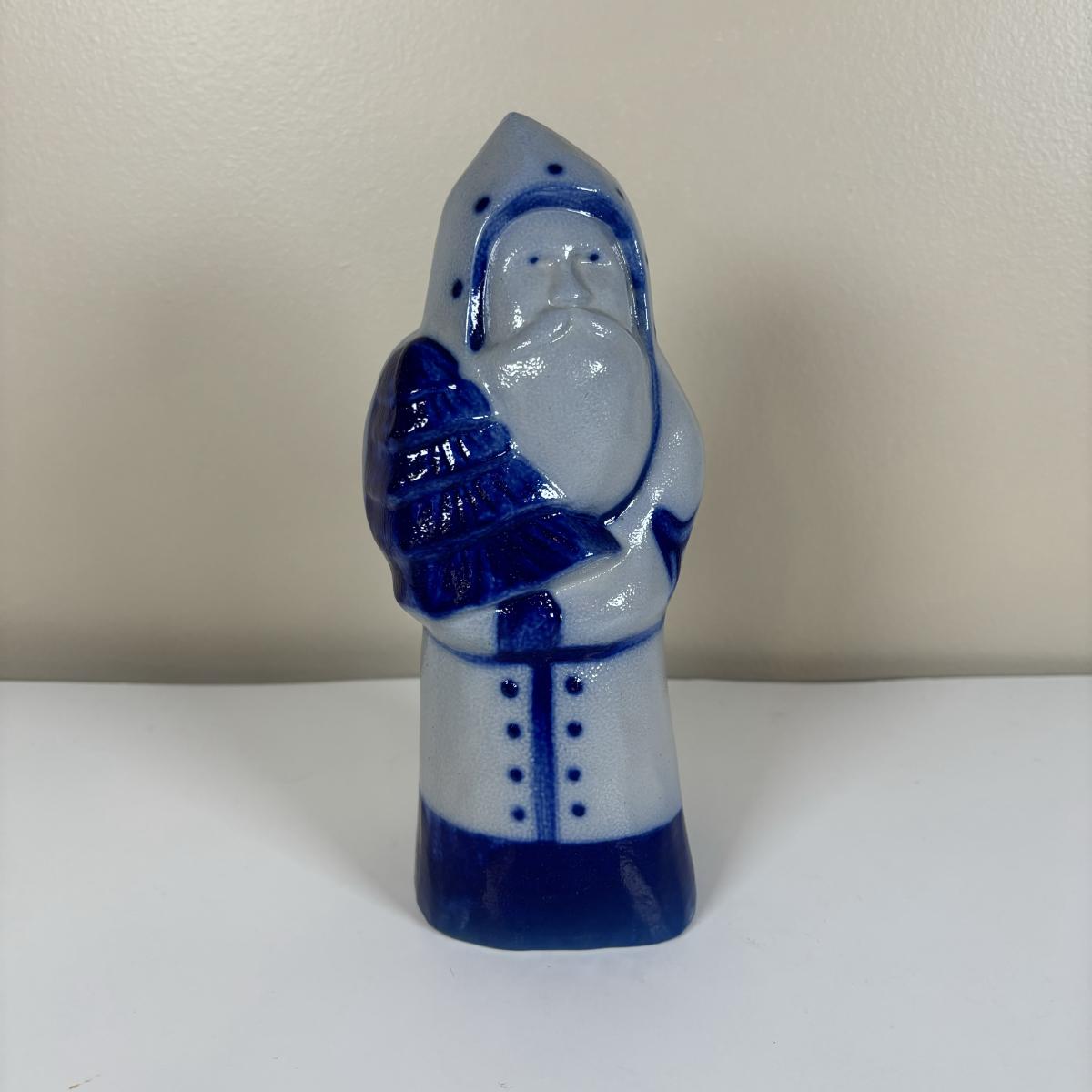 LOT 1: Primitive Christmas: Scentsy Farmhouse Primitive Electric Wax Warmer, Eldreth Pottery Grey & Cobalt Blue Salt Glaze Santa Claus Figure & Primitives