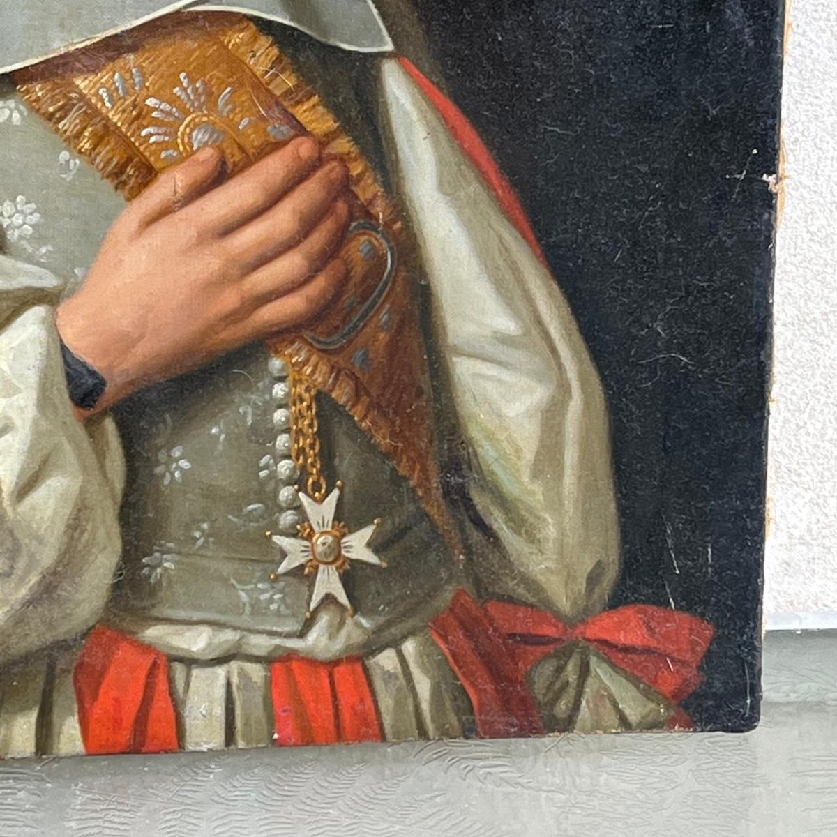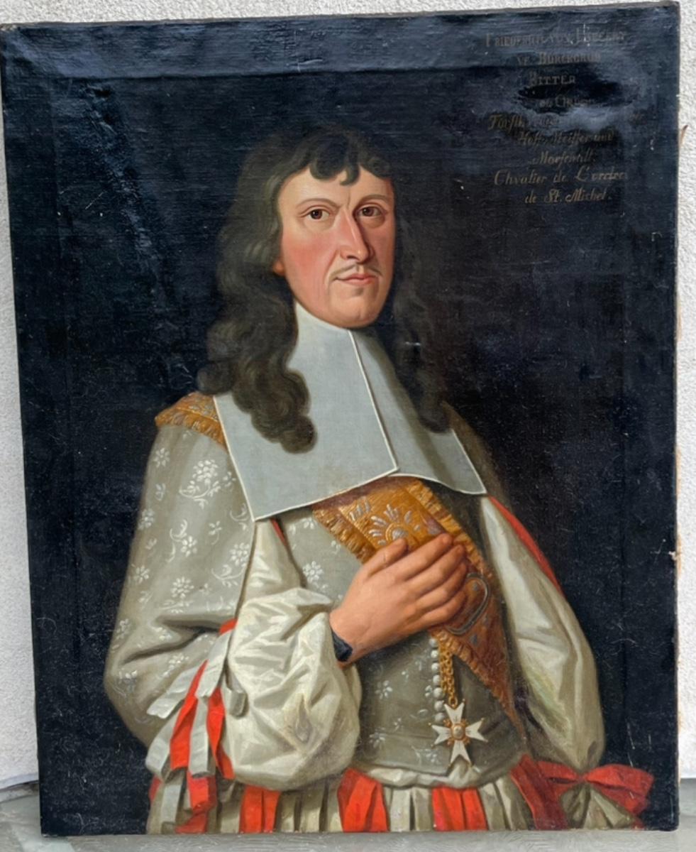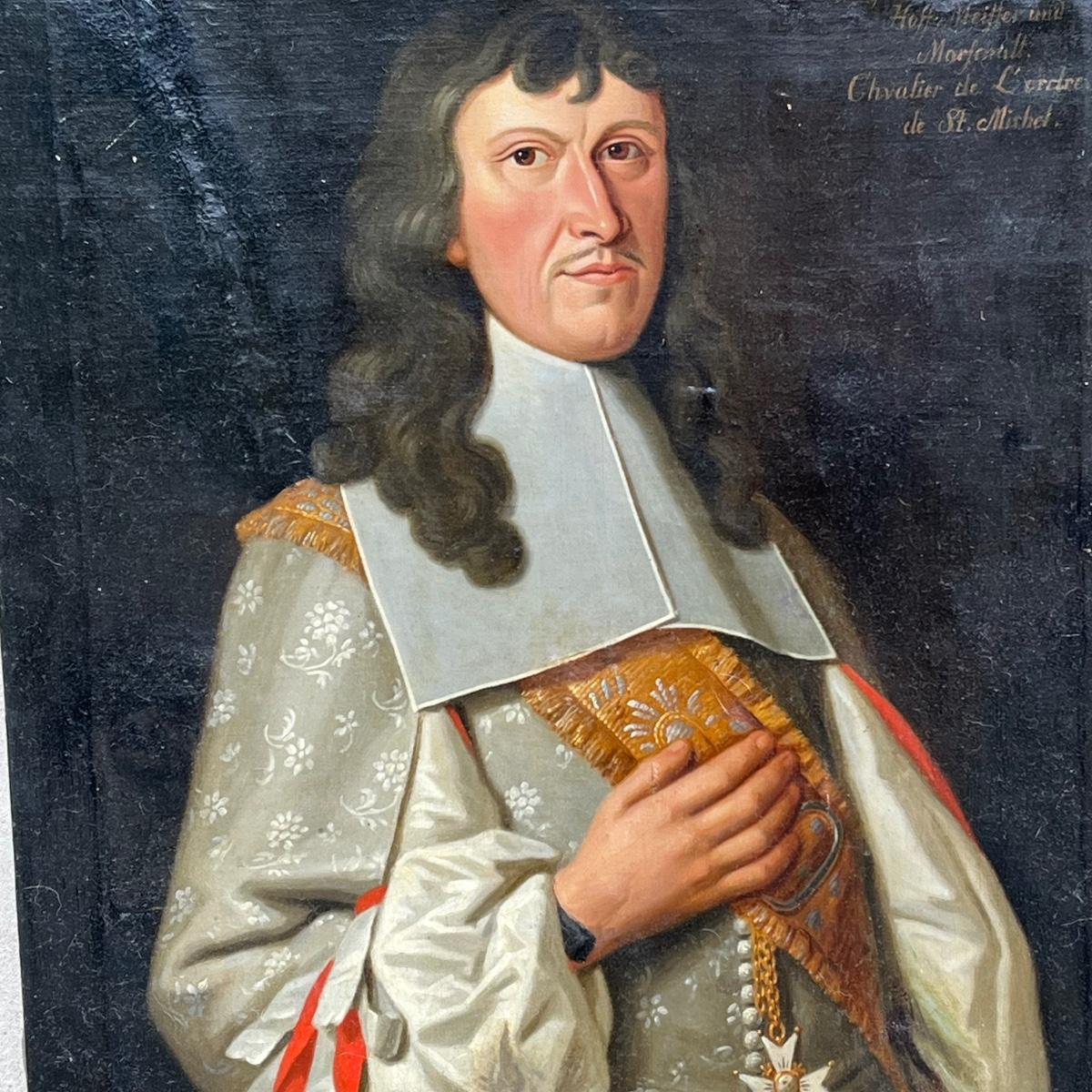 According to a recent appraisal, which priced the piece at $9,500 if it were properly framed, this original oil on canvas is likely by a French court painter, depicting a 17th century officer/gentleman in period military uniform.