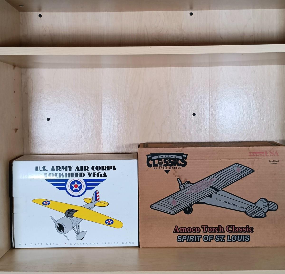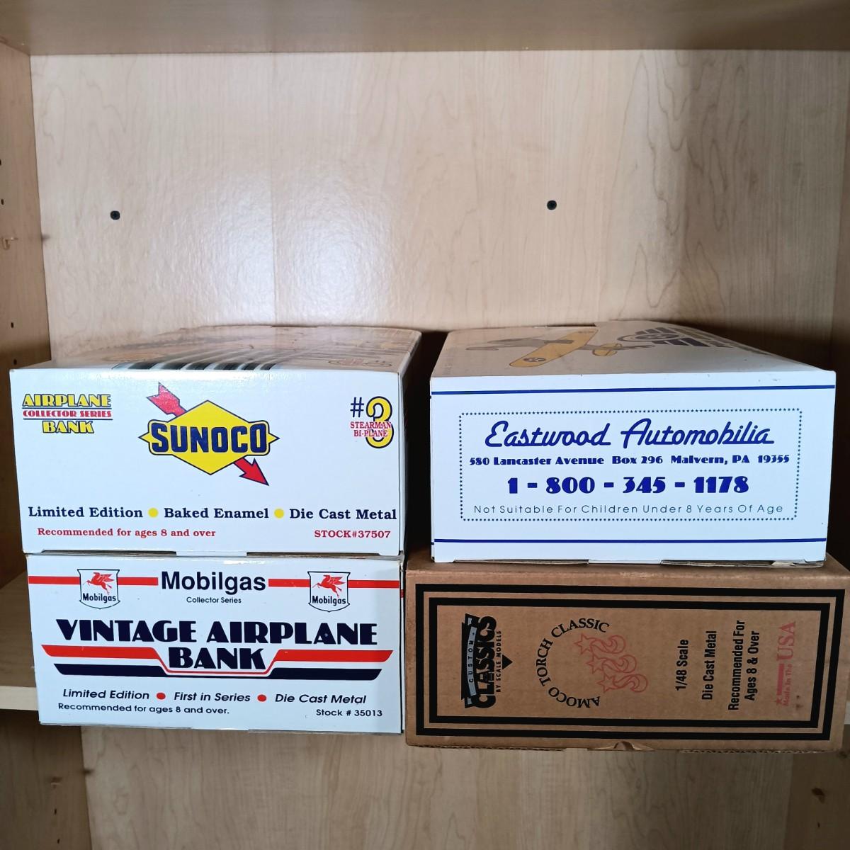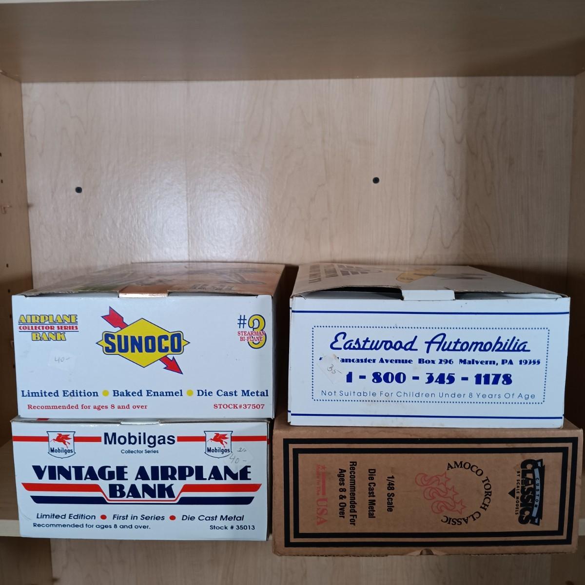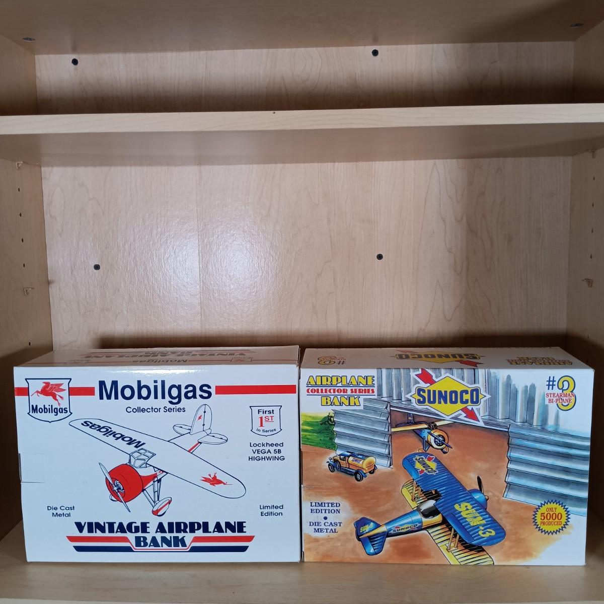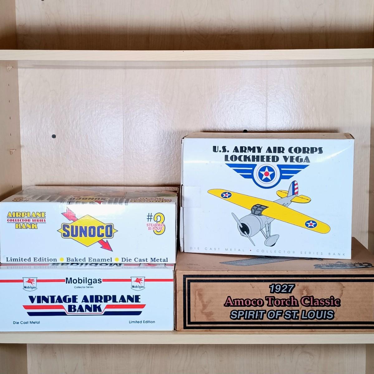 LOT 1: Die Cast US Army Air Corps, Mobilgas & Sunoco Collector Plane Banks w/ Amoco Torch Classics Model Plane