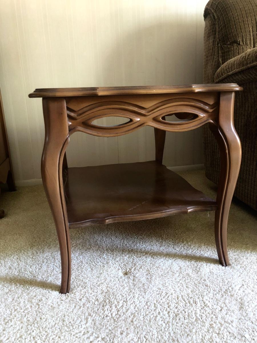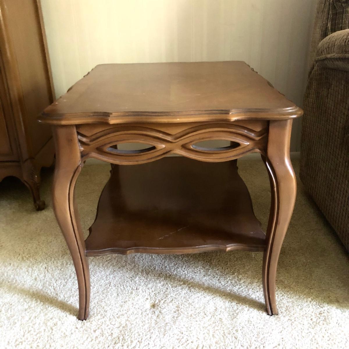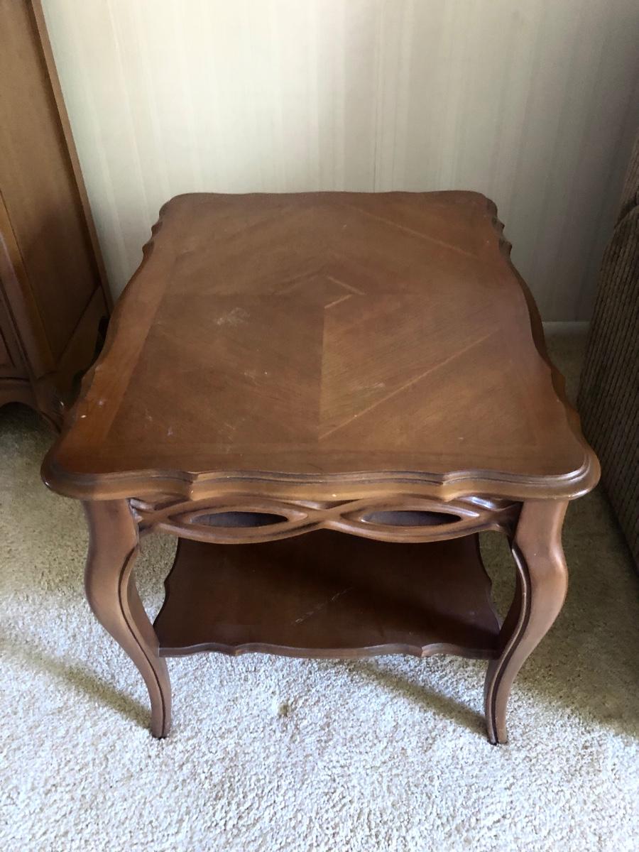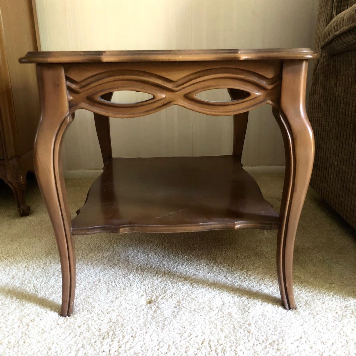 End tables measure 22W x 30D x 22H and 22W x 28D x 22H.