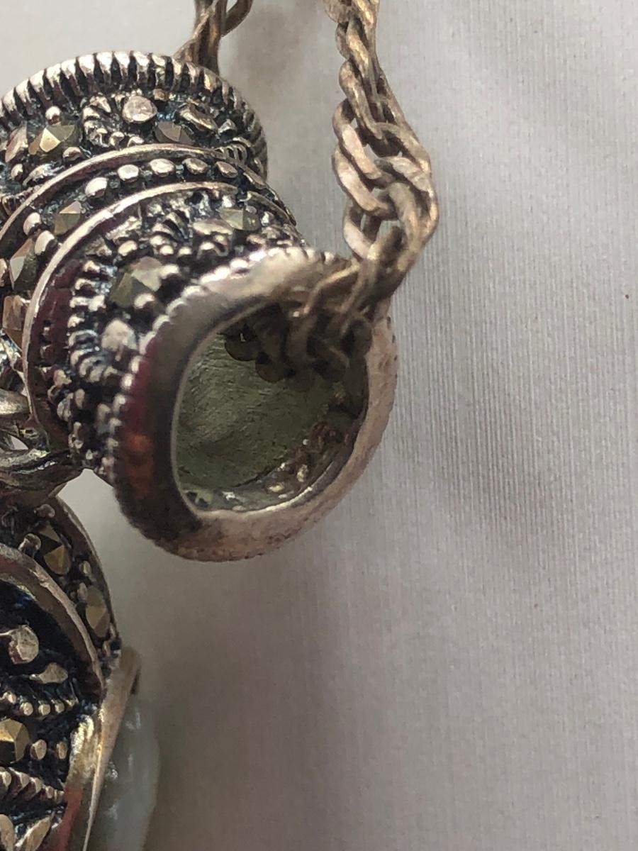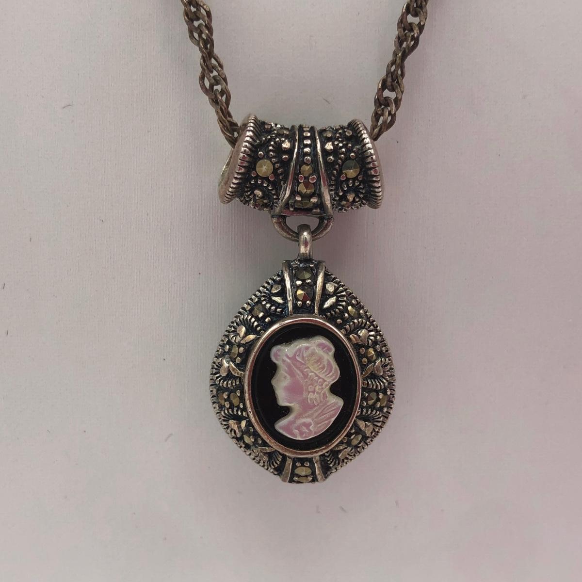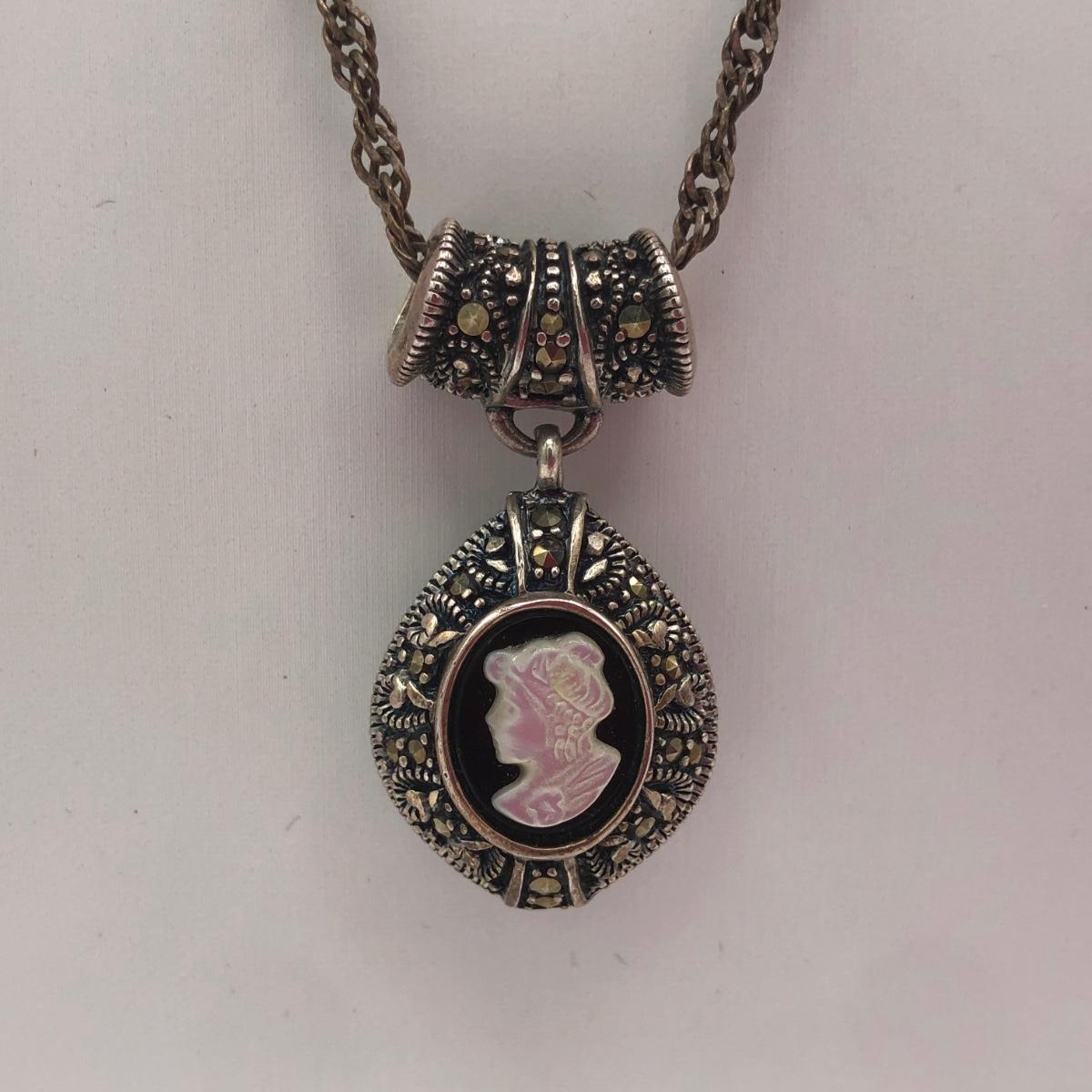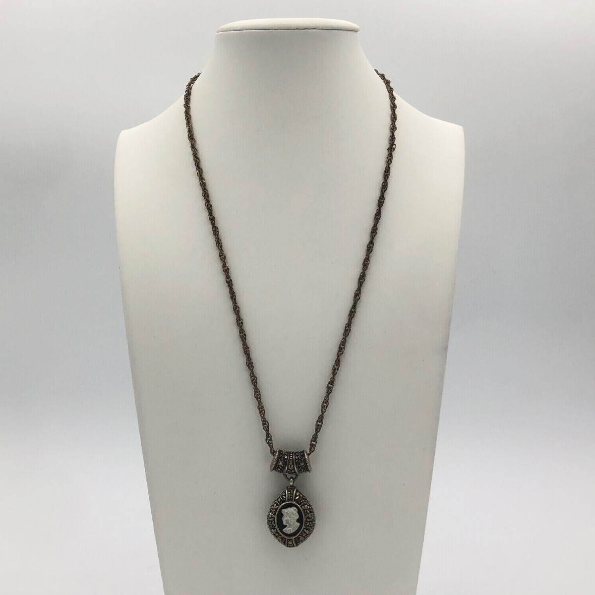 LOT 1J: Vintage Sterling Silver & Marcasite Cameo Slide Pendant on 20” Milor Italy925 Chain (20gtw)