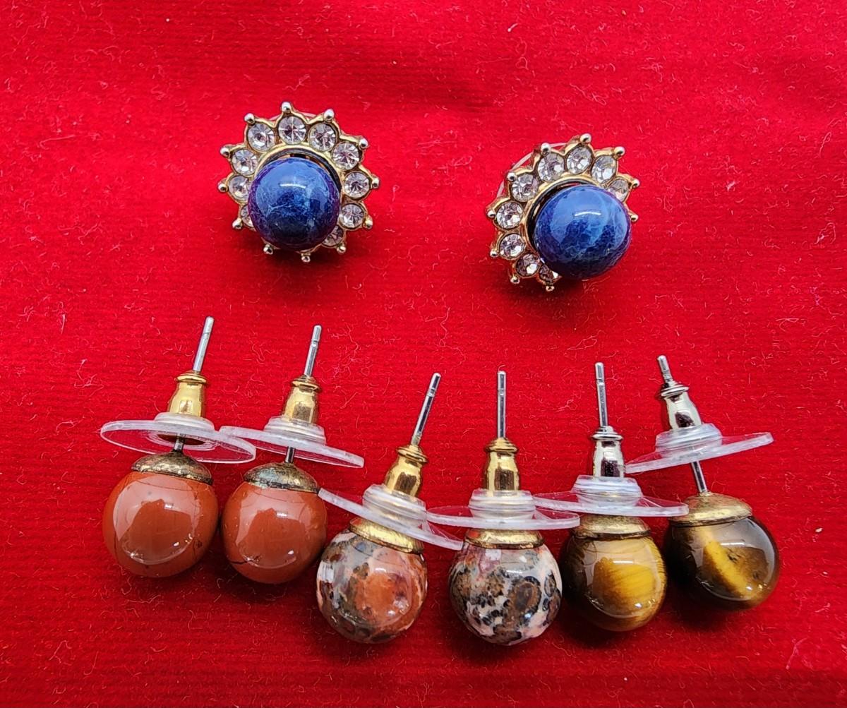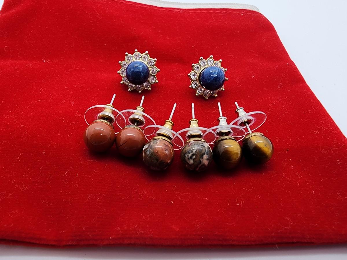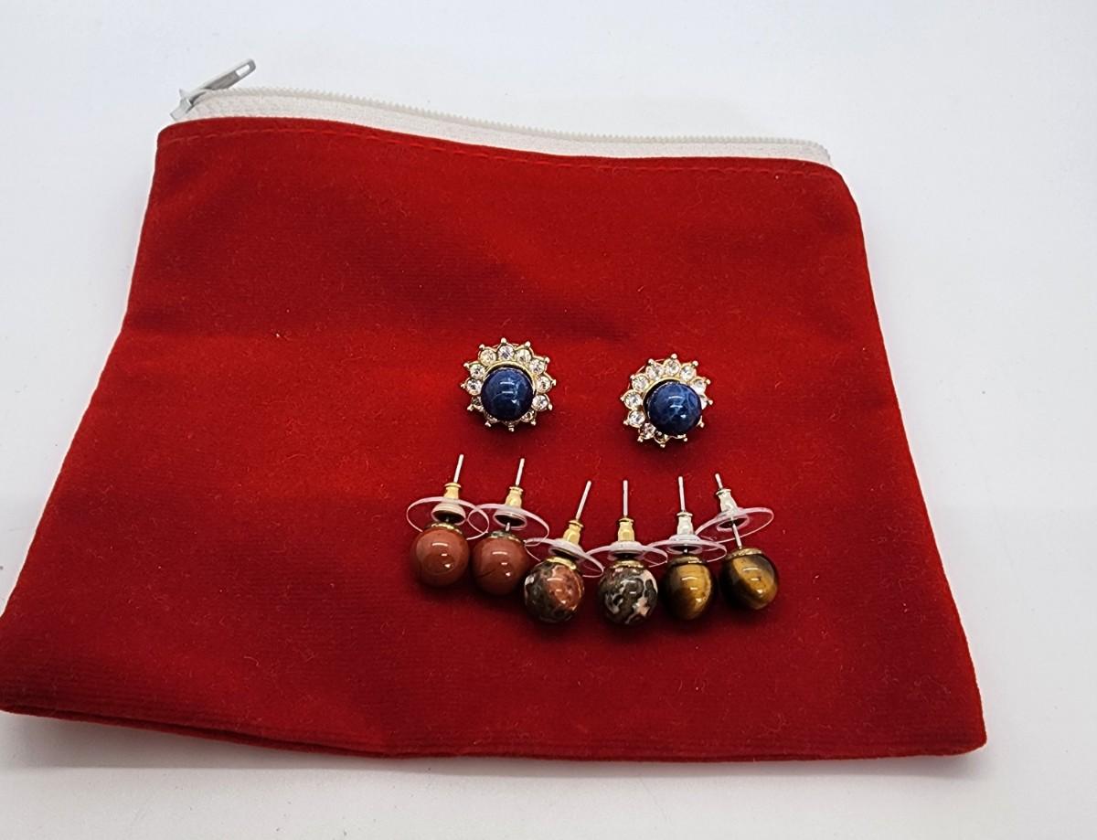 Lot 106- HSN Pierced Faux Pearl Earrings New in Box and Gemstone Earrings with CZ jackets New in velvet bag