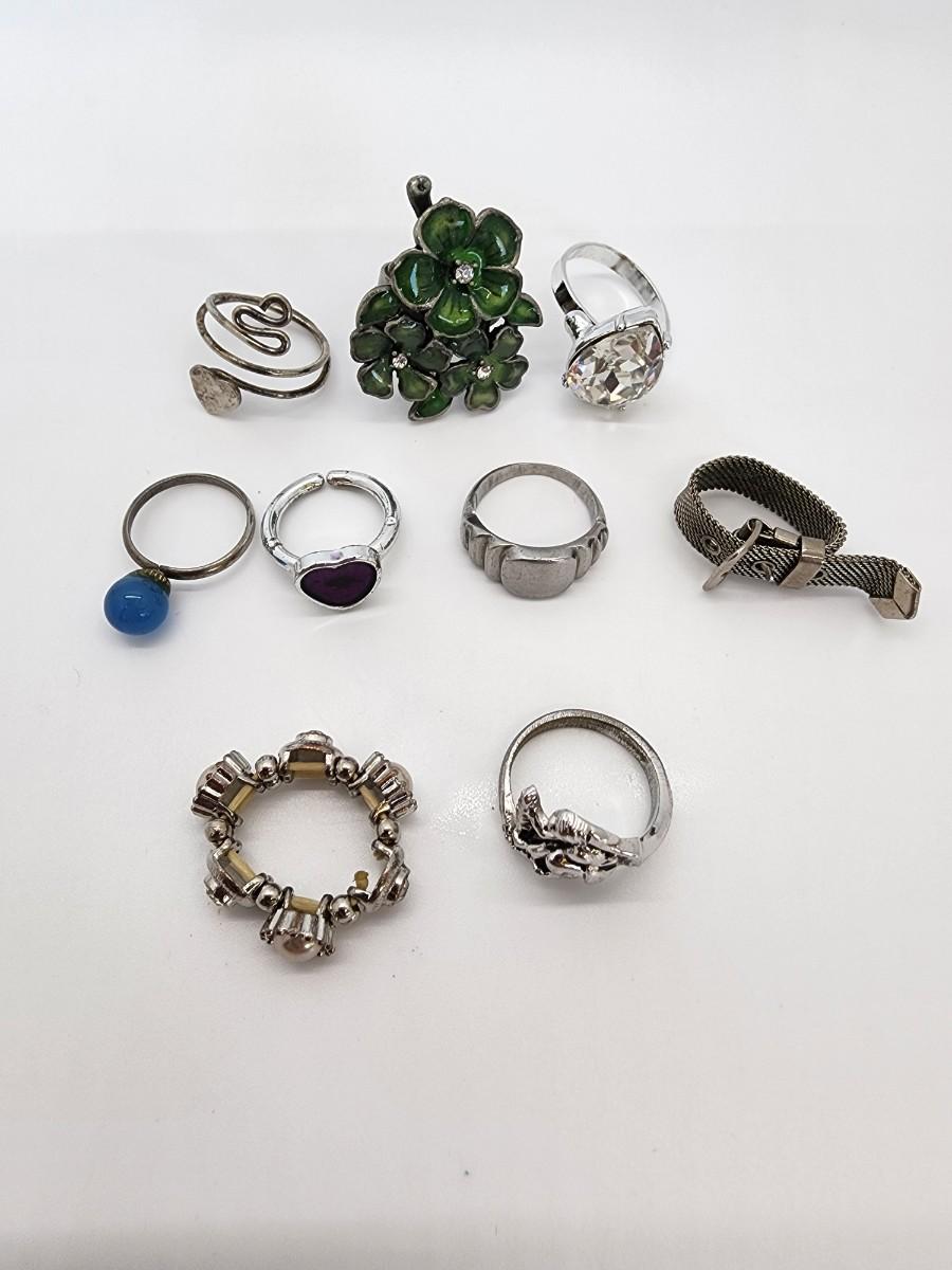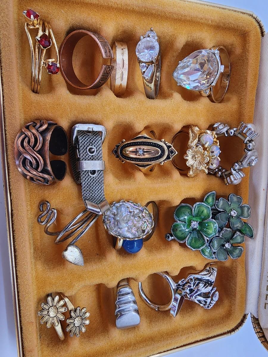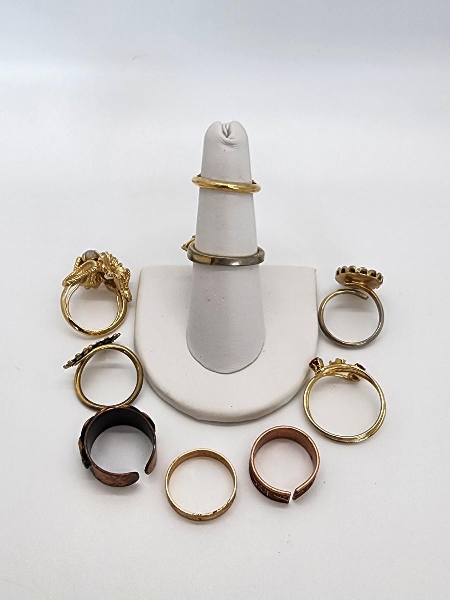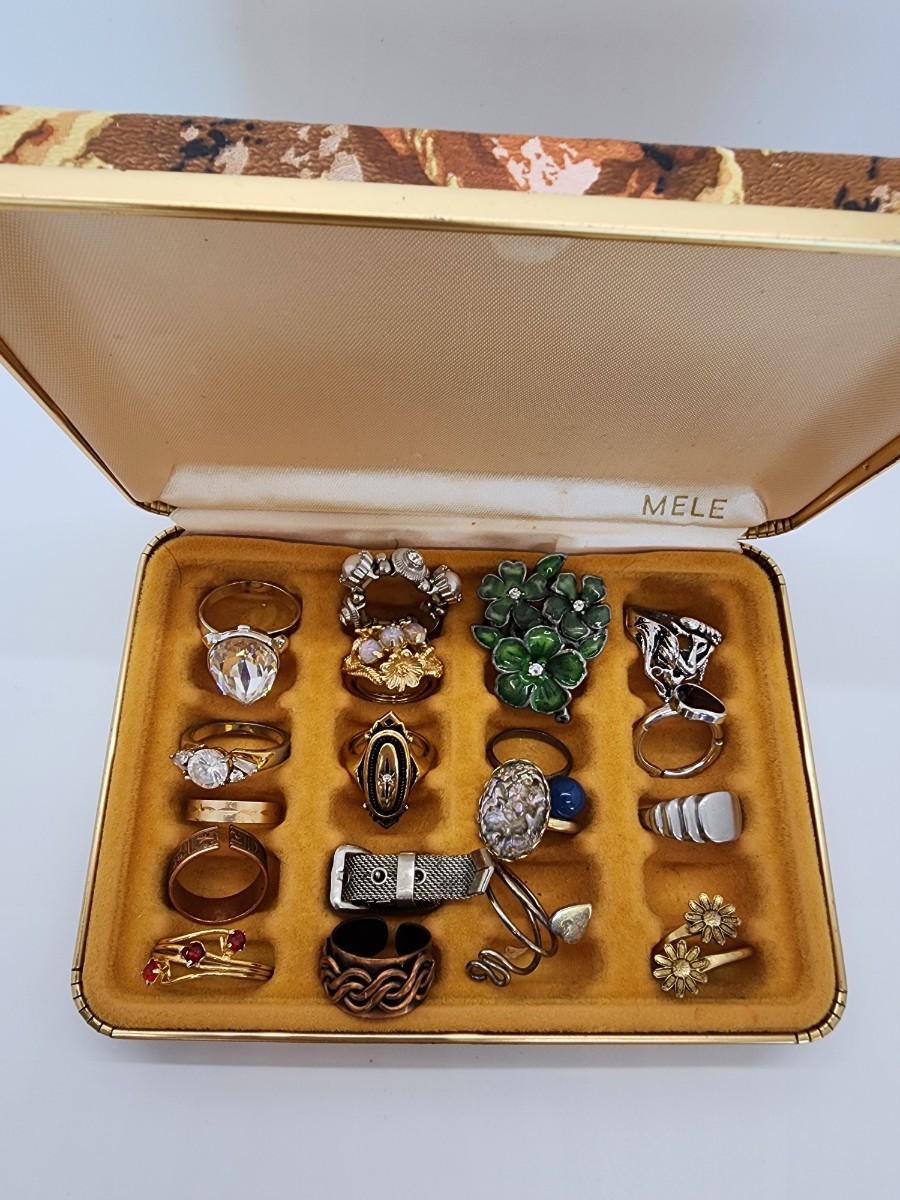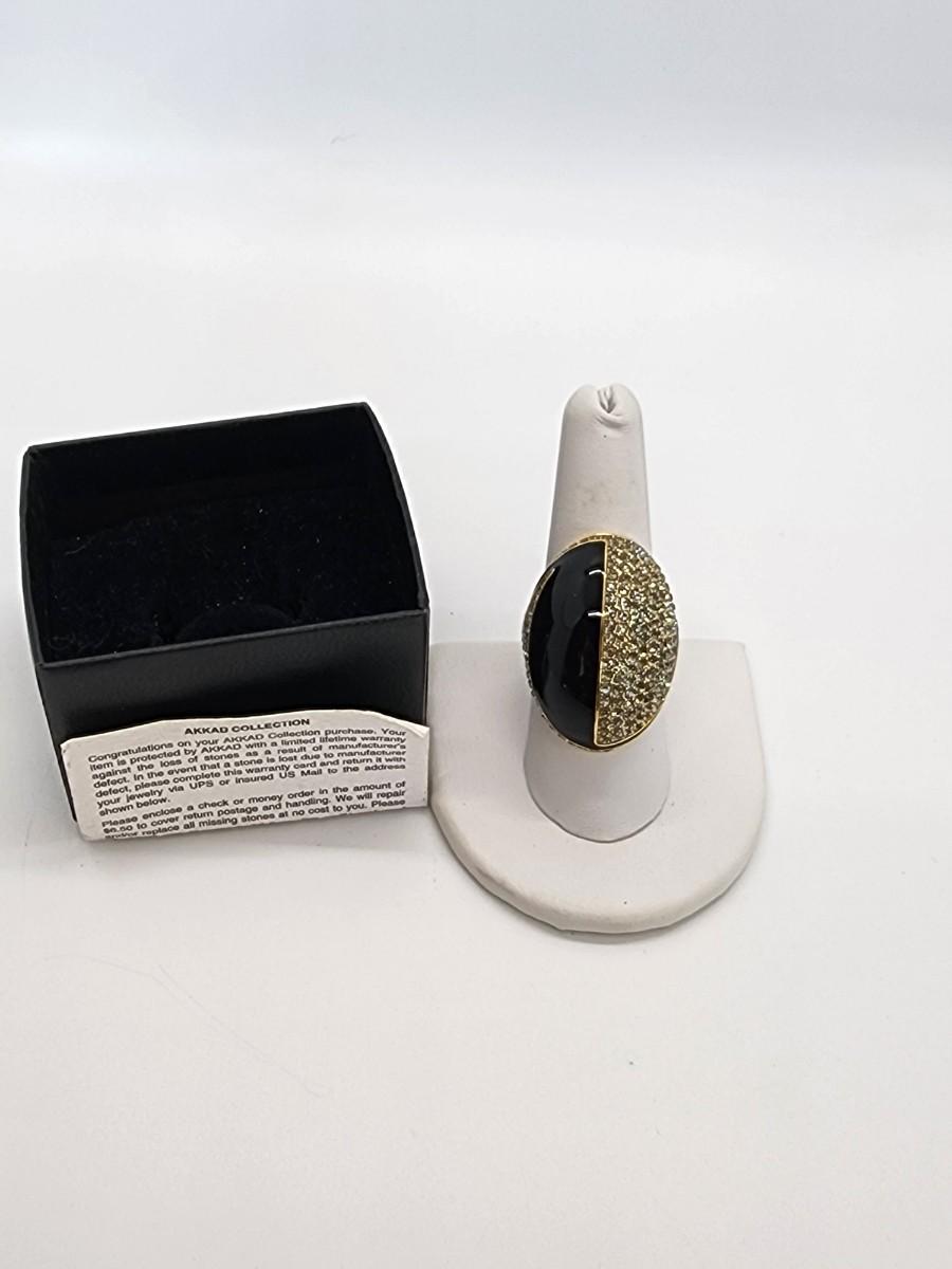 Lot 107- Costume Ring LOT- Vintage ring Case included- One HSN Enamel & CZ Akhad Ring sz. 8 New in box- no lid