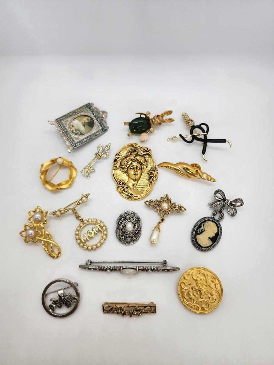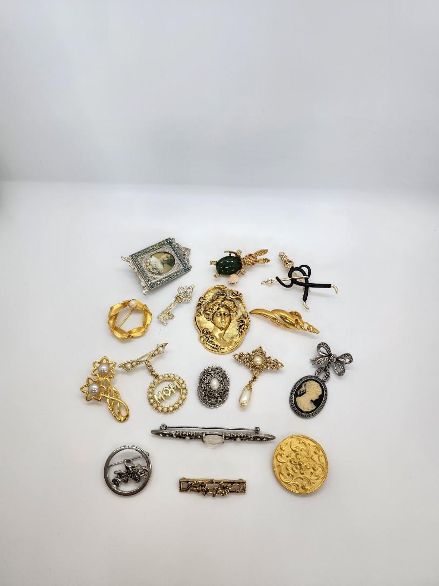 Lot 111: 15 Brooches and One Scarf Clip