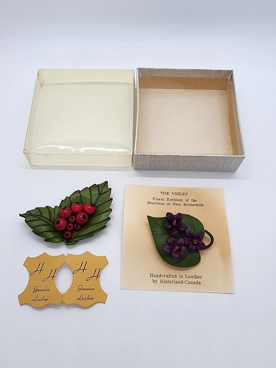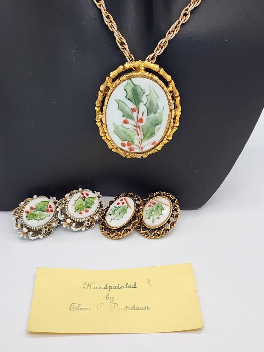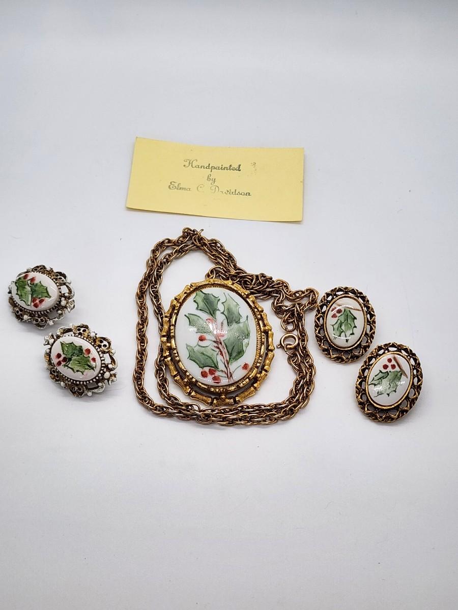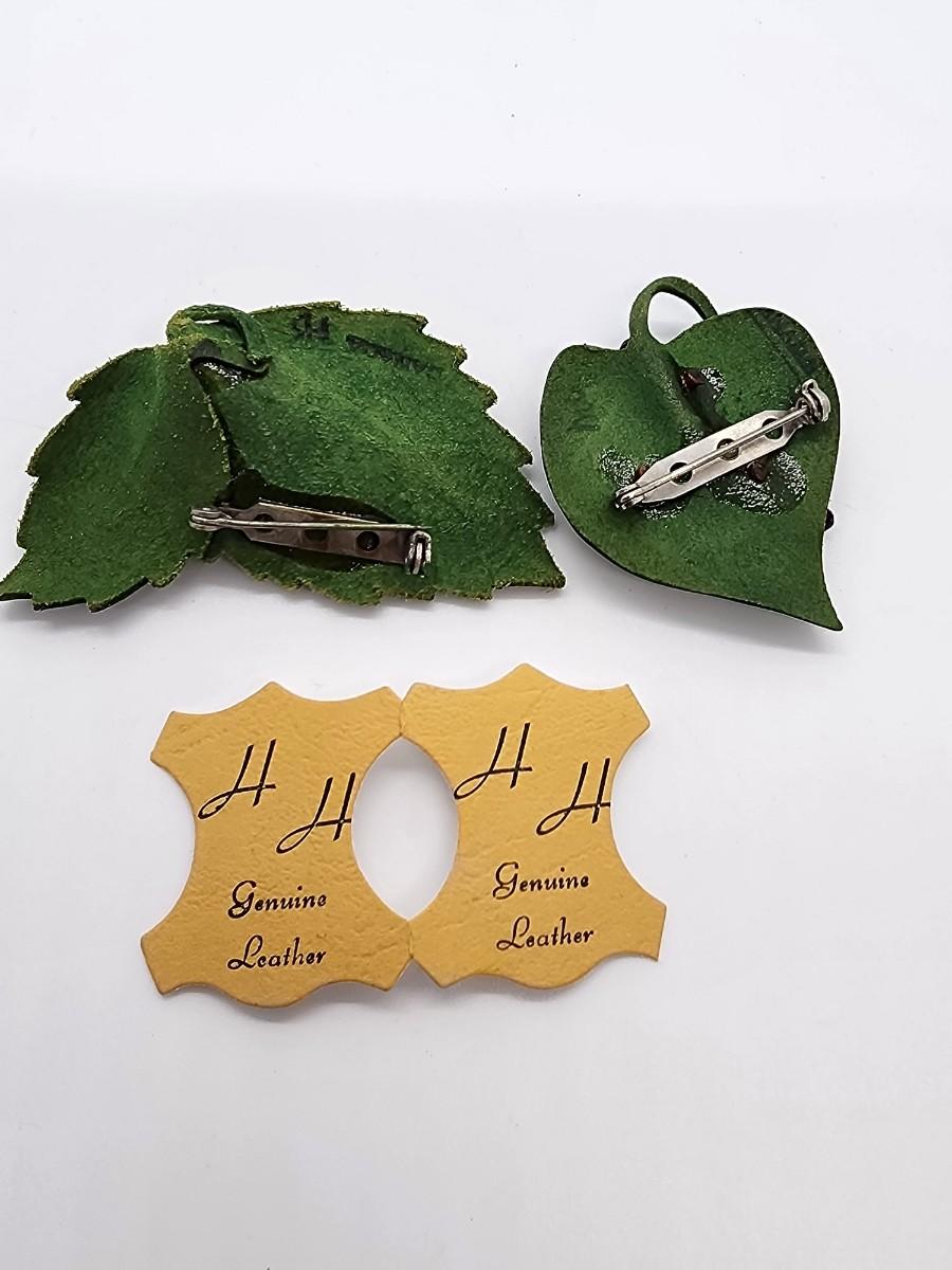 Lot 126: Christmas lot- handpainted Ceramic jewelry, handcrafted Leather brooches and more!