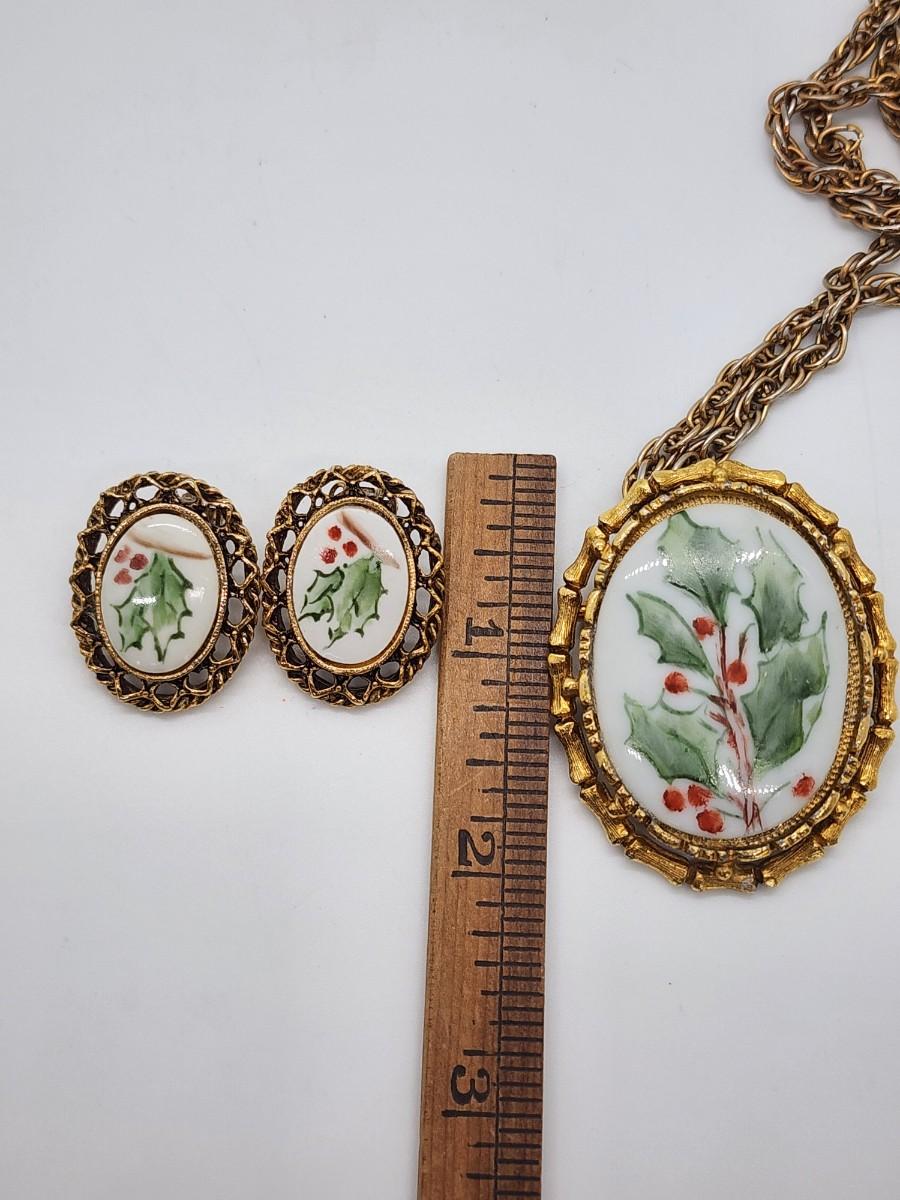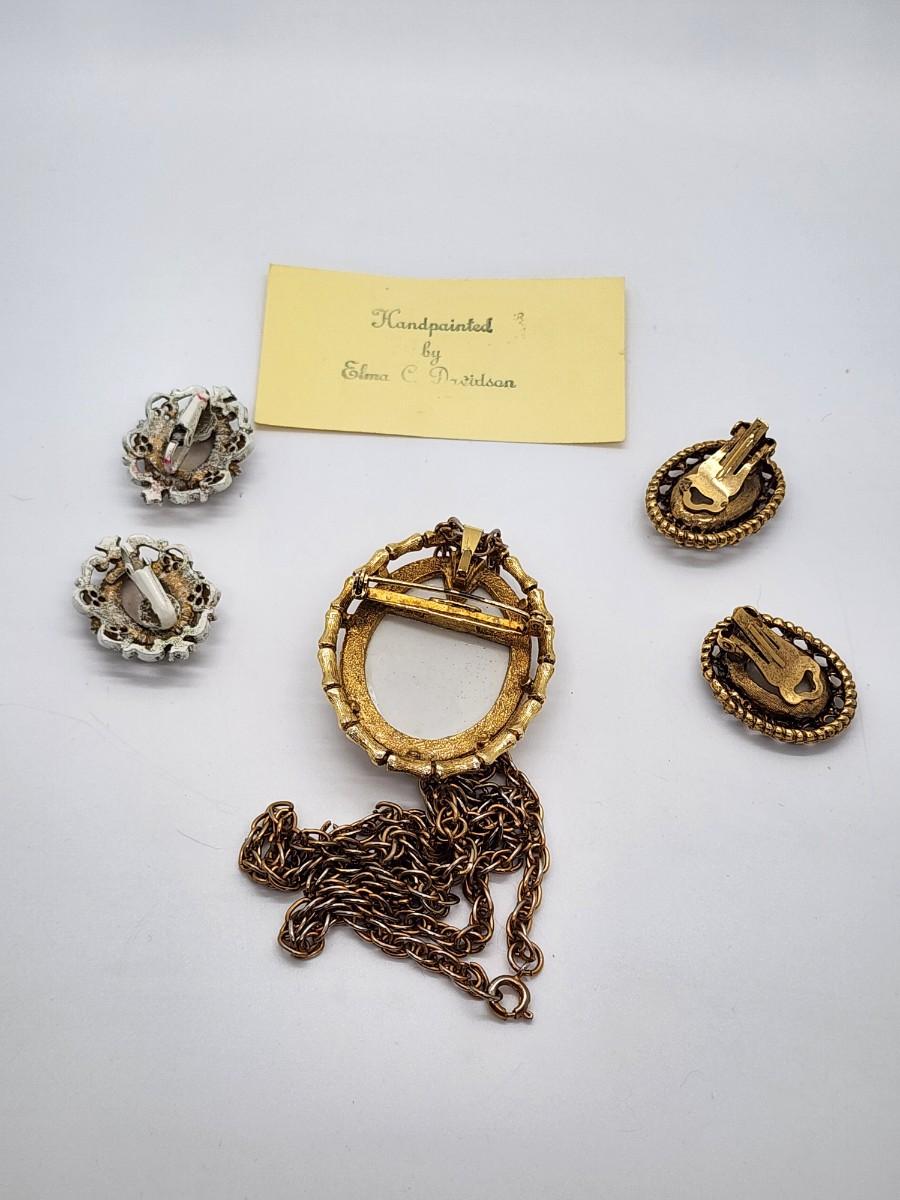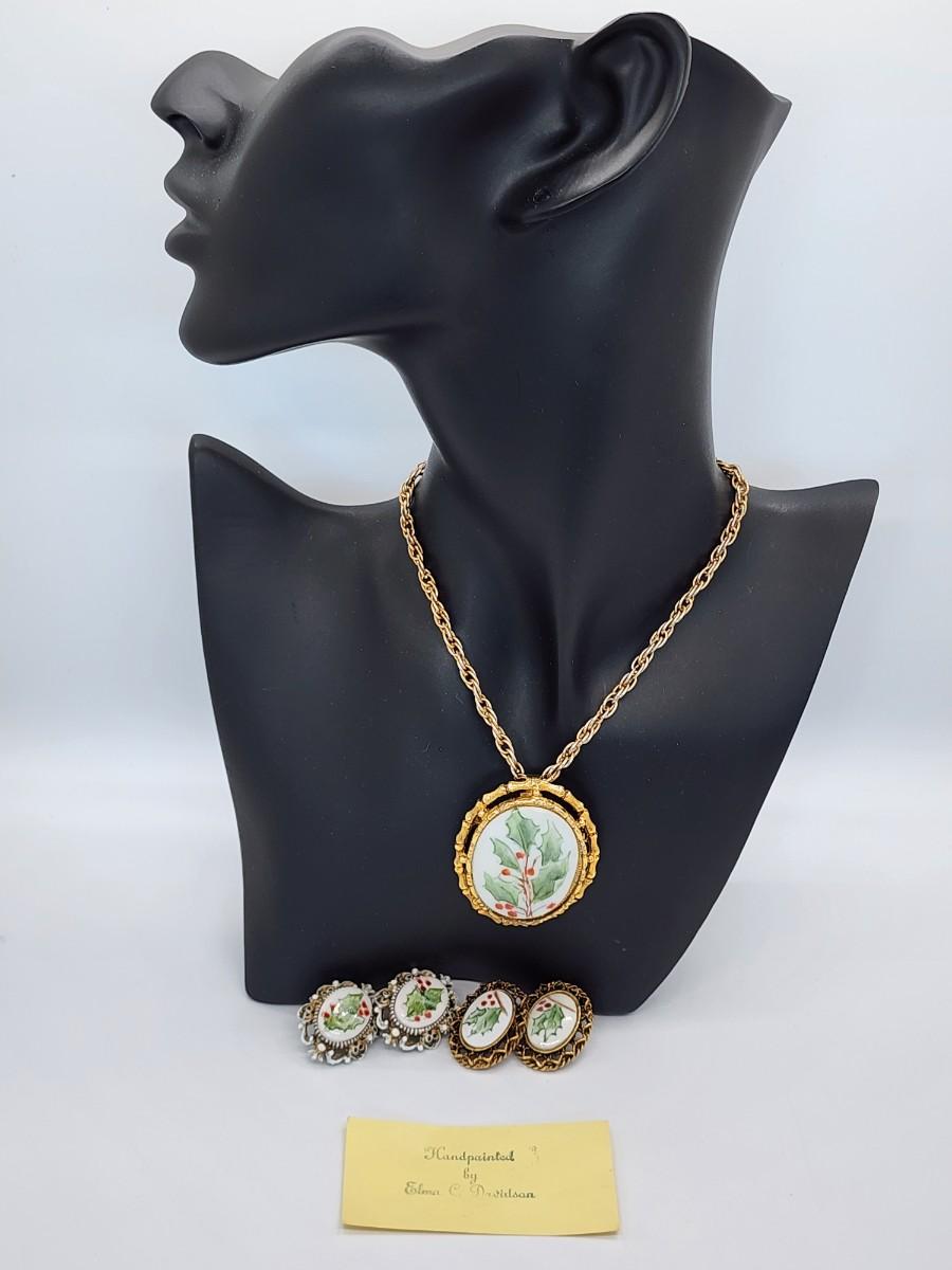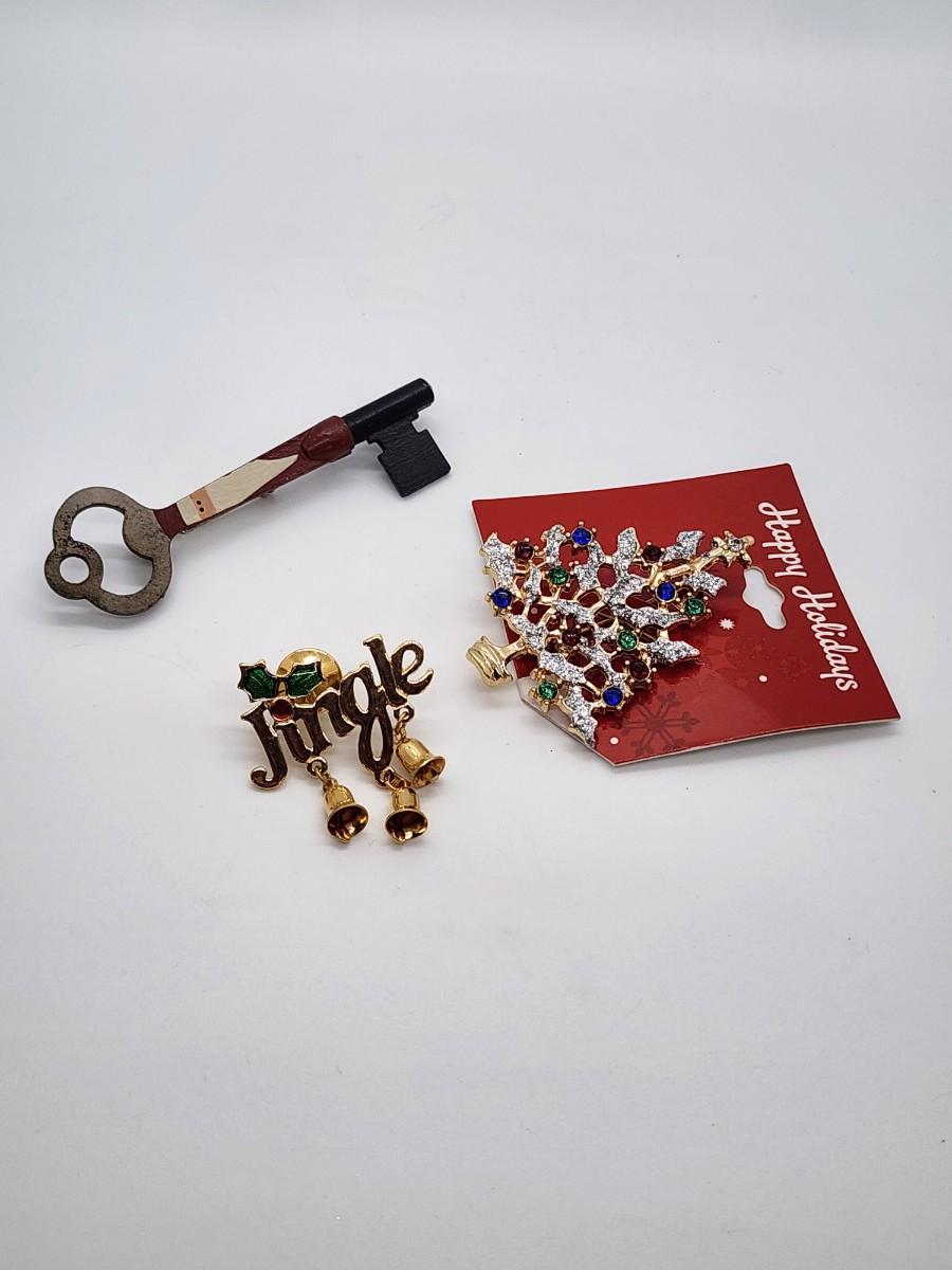 Lot 126: Christmas lot- handpainted Ceramic jewelry, handcrafted Leather brooches and more!