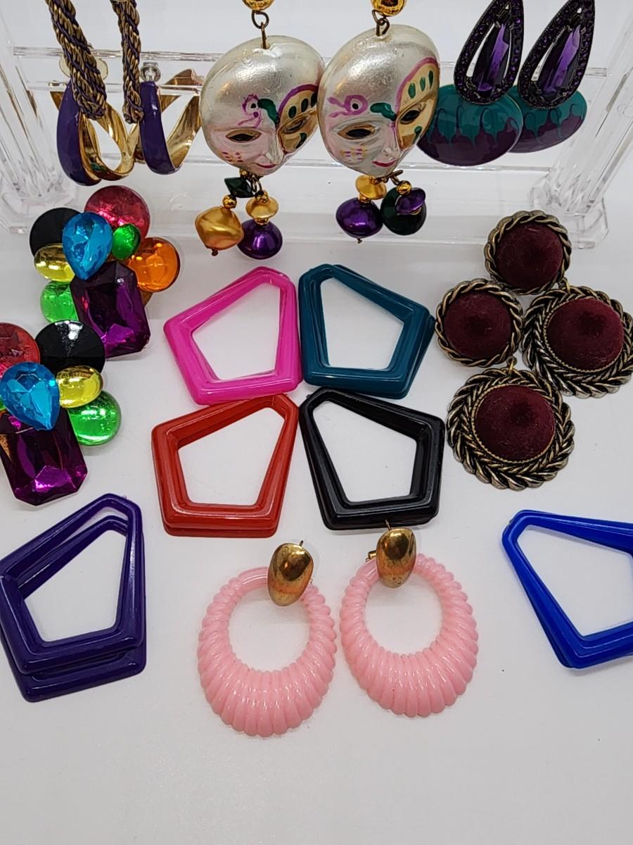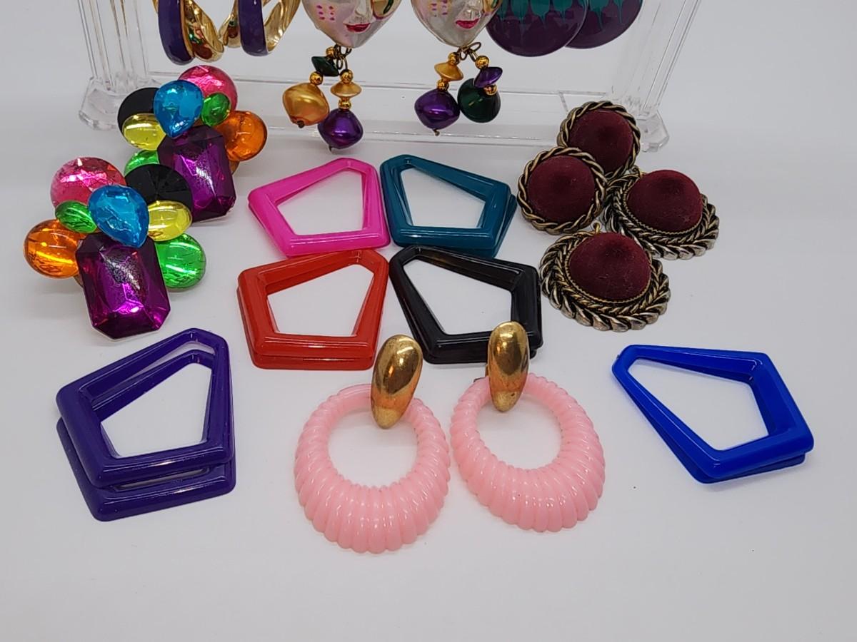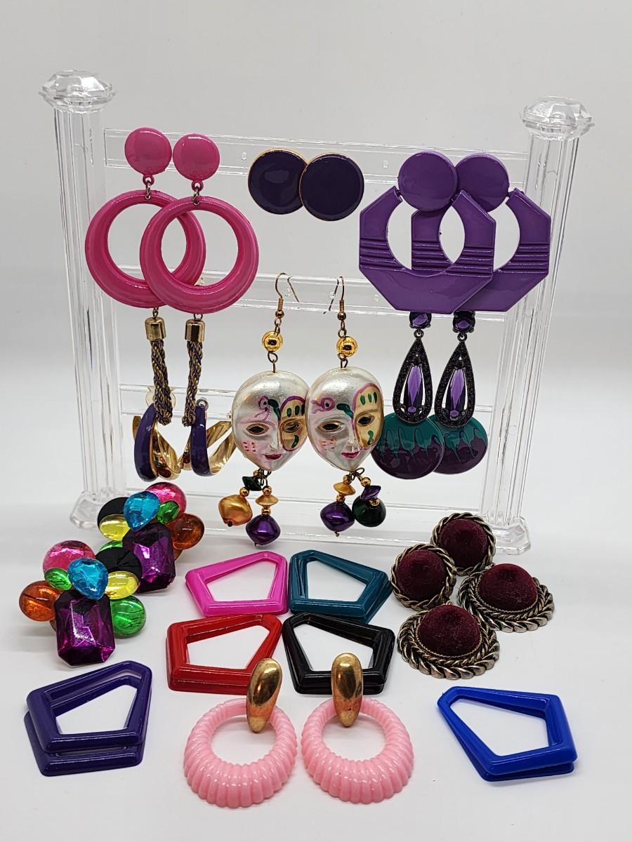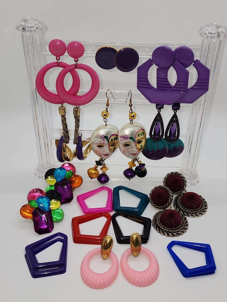 Lot 134: Fun Colorful Earring lot- all Pierced except one pair of Clip-ons