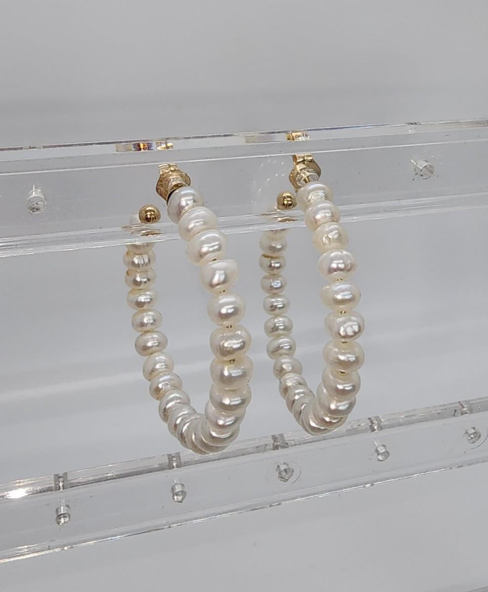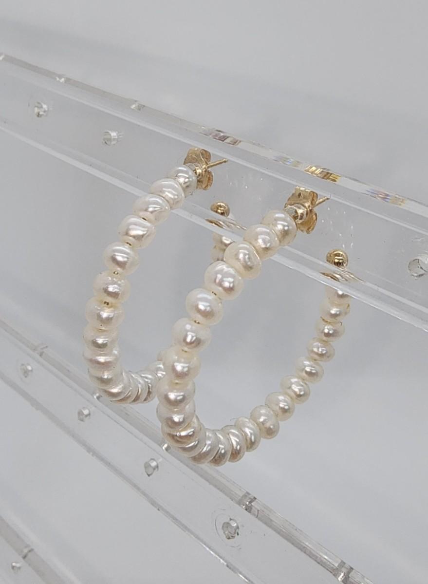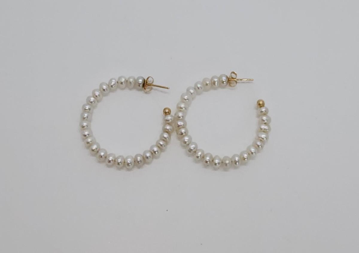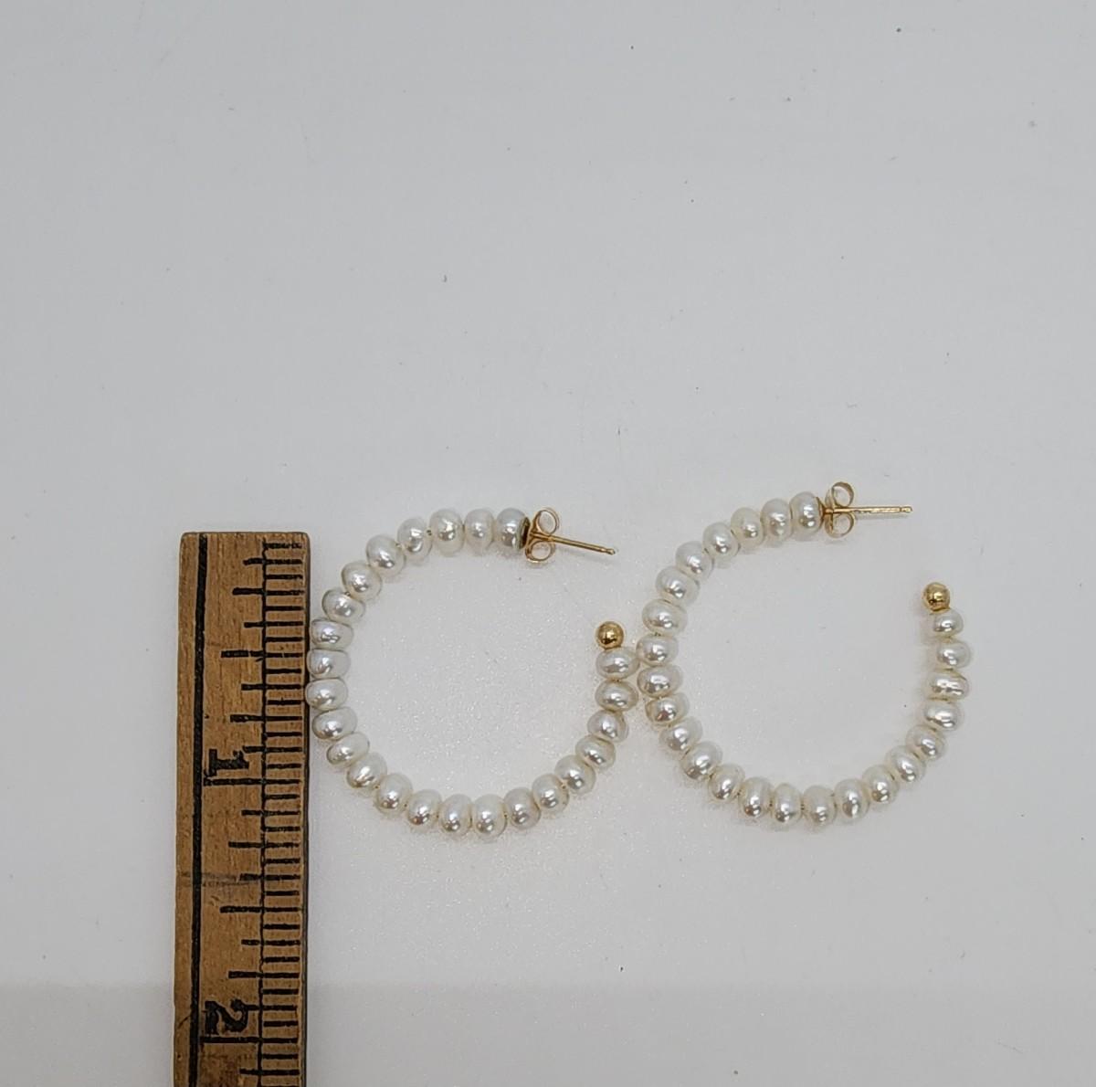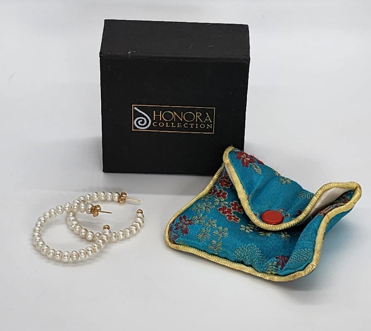 Lot 135: 14k Honora Cultured Freshwater Pearl Hoop Pierced Earrings