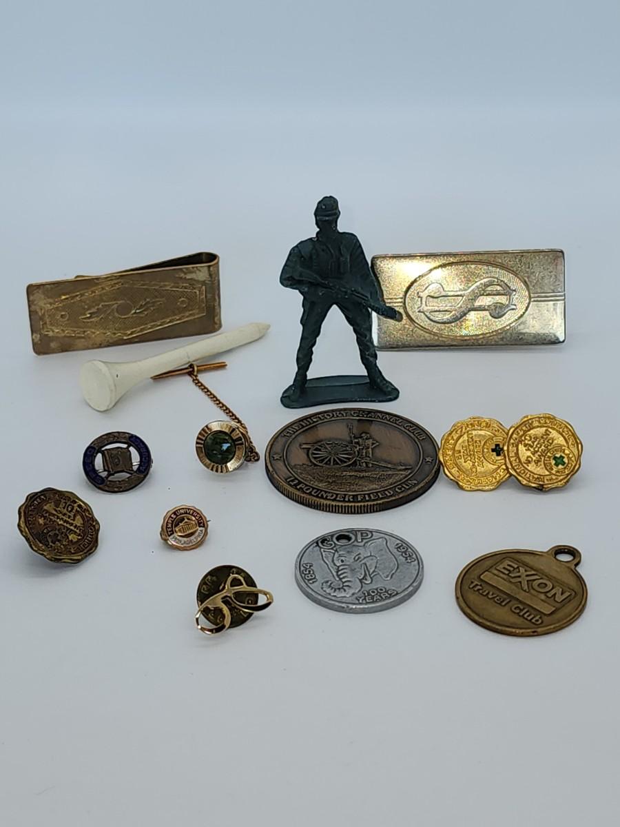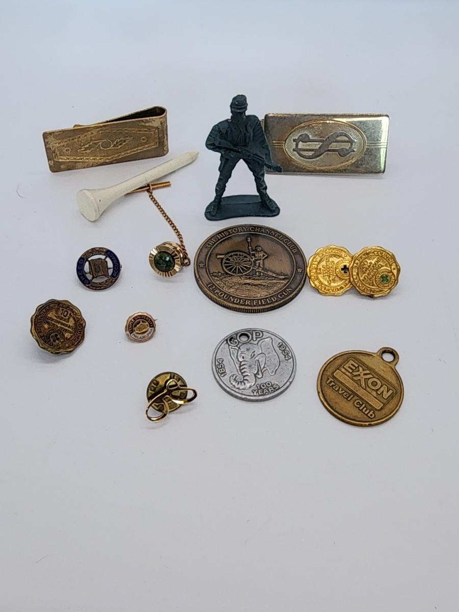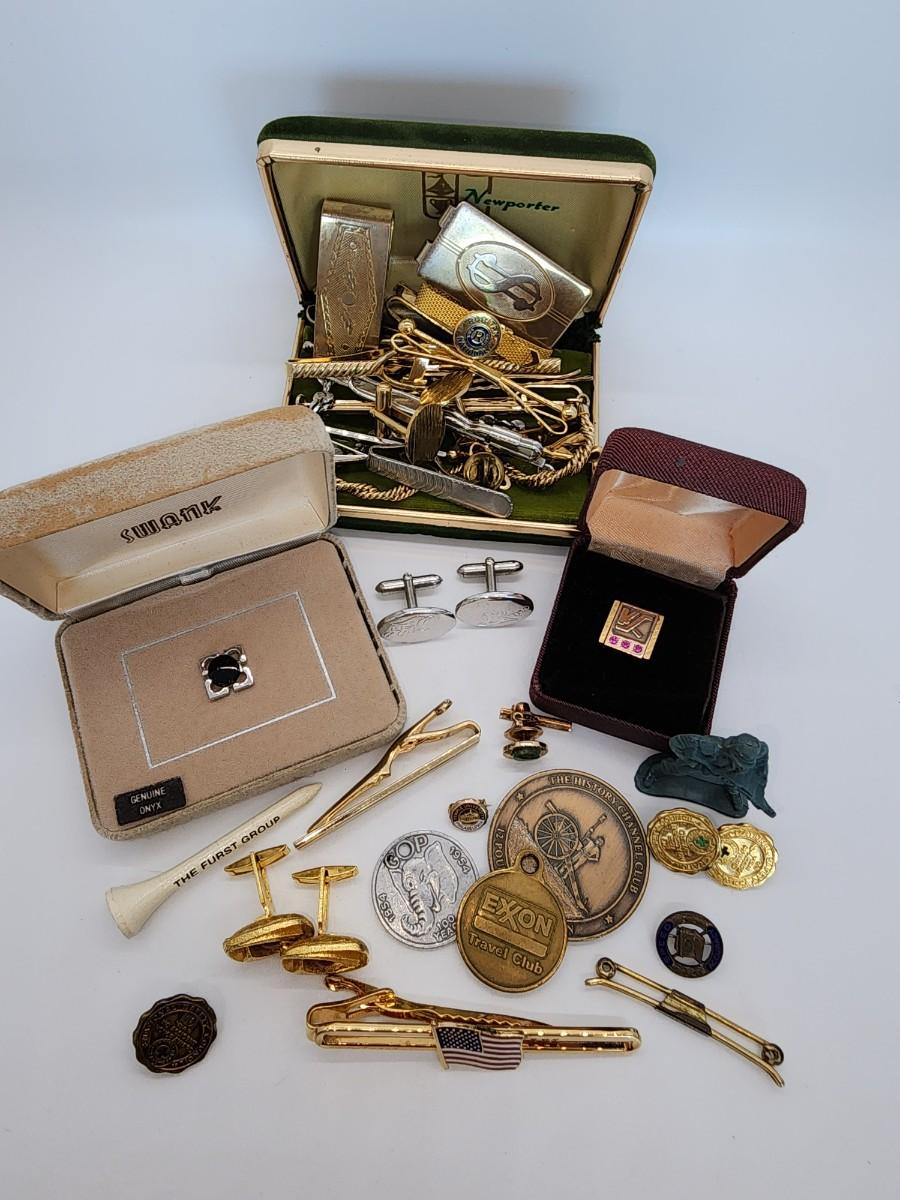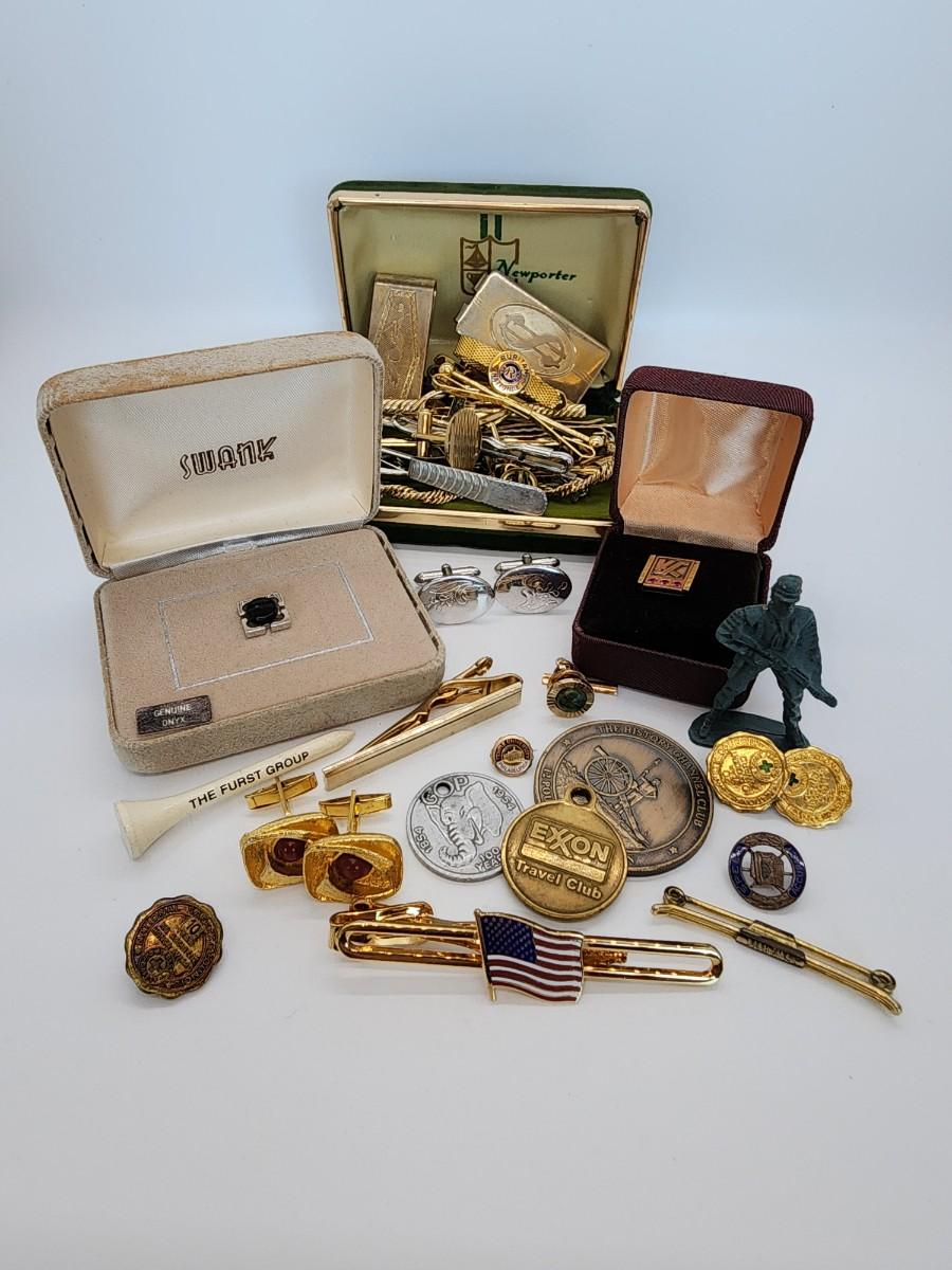 Lot 146: Mens LOT Solid Gold Temple University, Swank Onxy tie pin and much much more