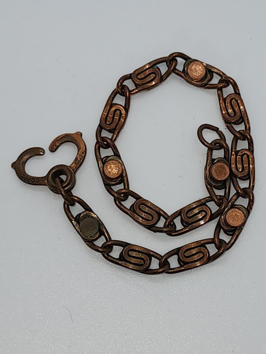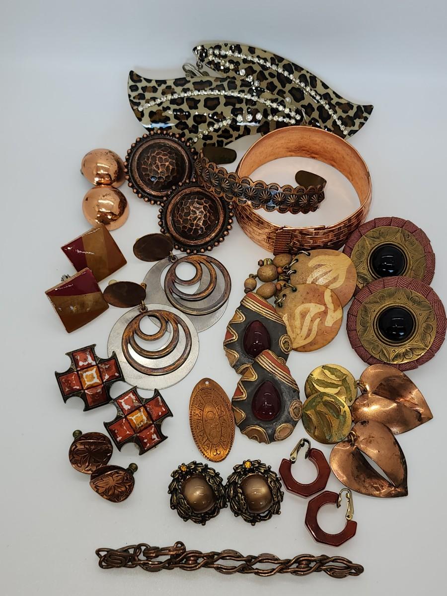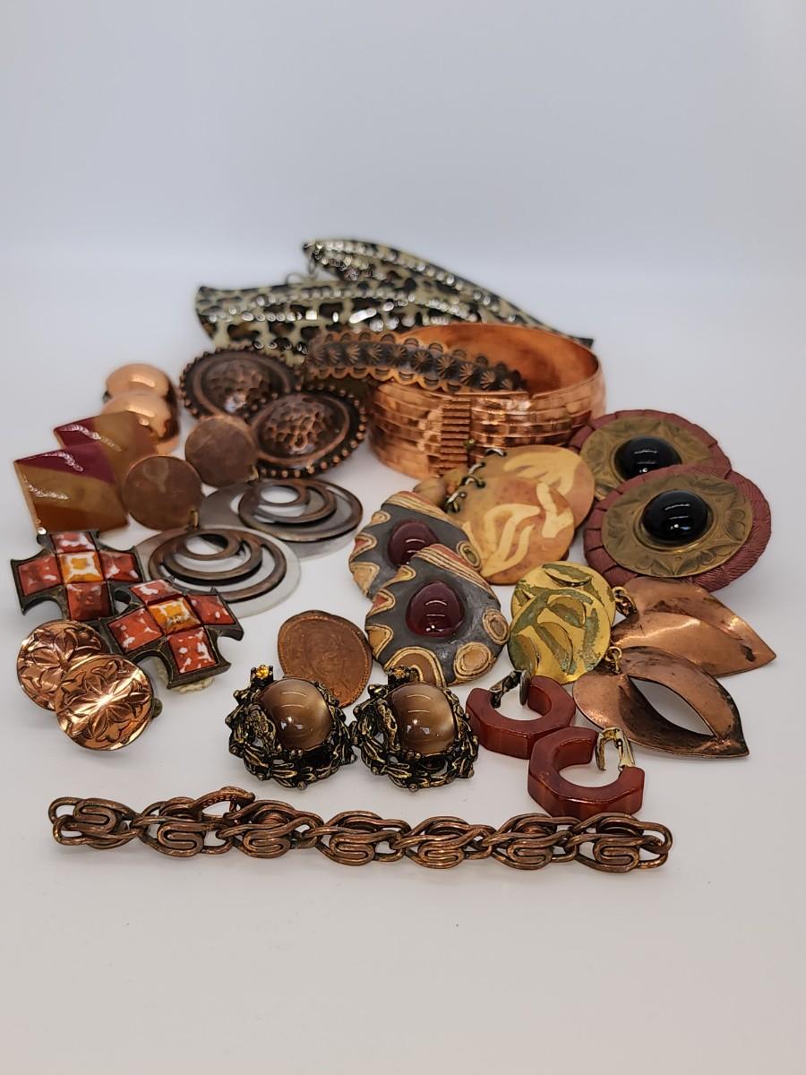 Lot 147: Vintage Copper Bangle, Cuff and Magnetic Link Bracelets and Clip-on Earrings