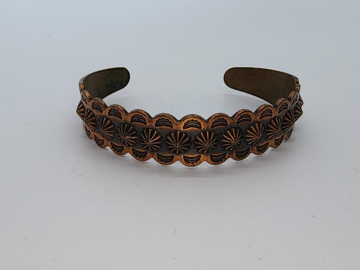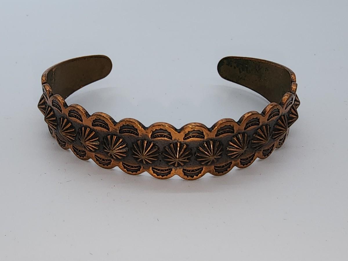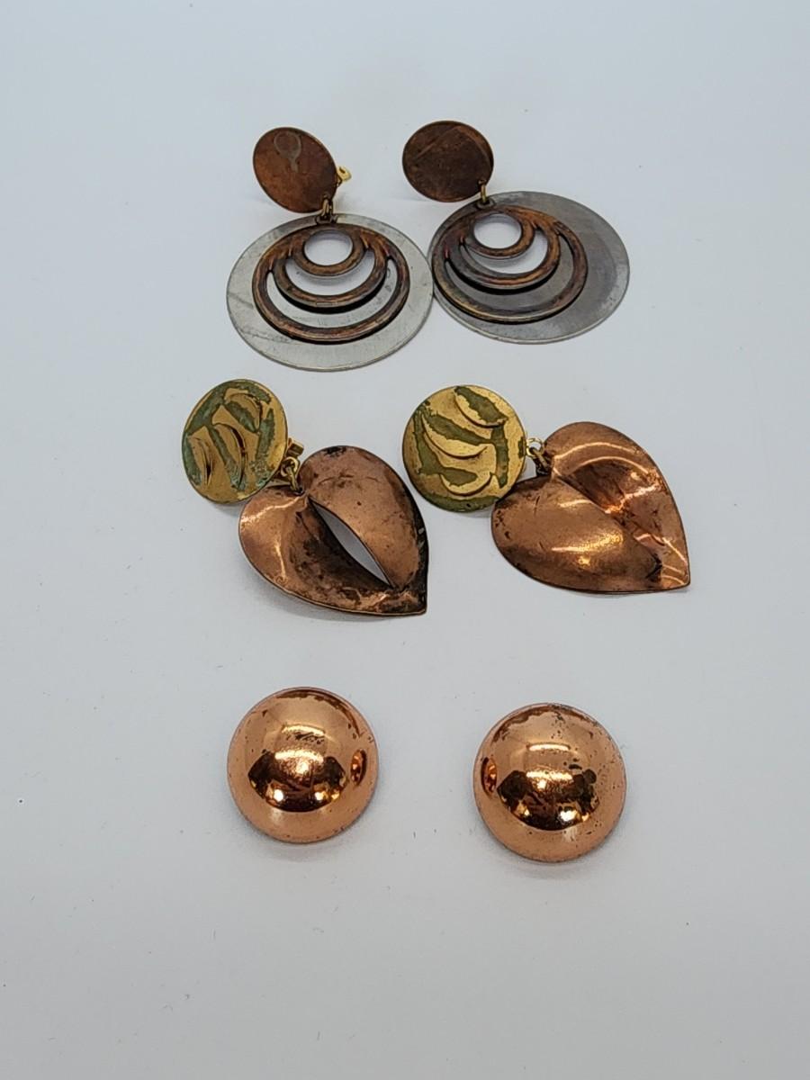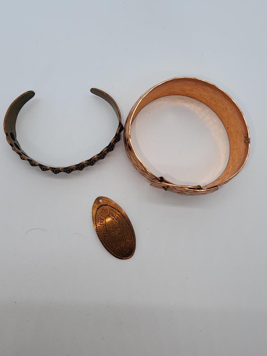 Lot 147: Vintage Copper Bangle, Cuff and Magnetic Link Bracelets and Clip-on Earrings