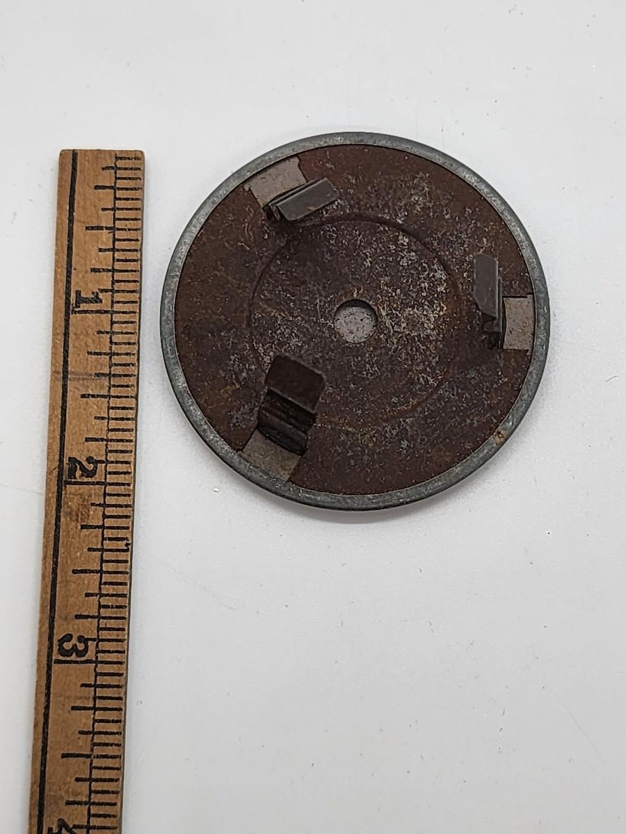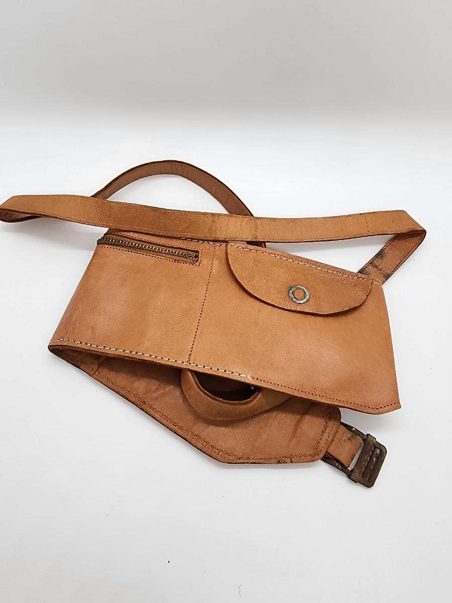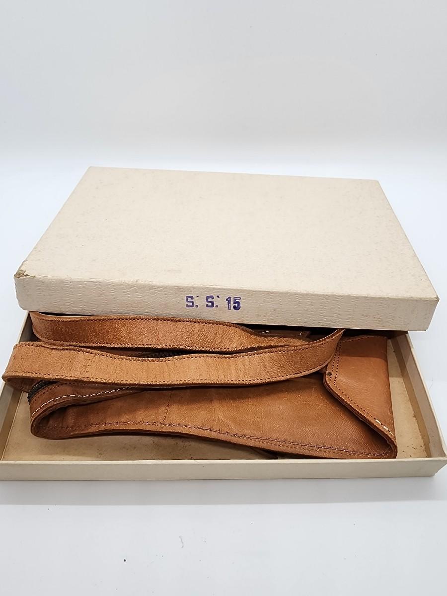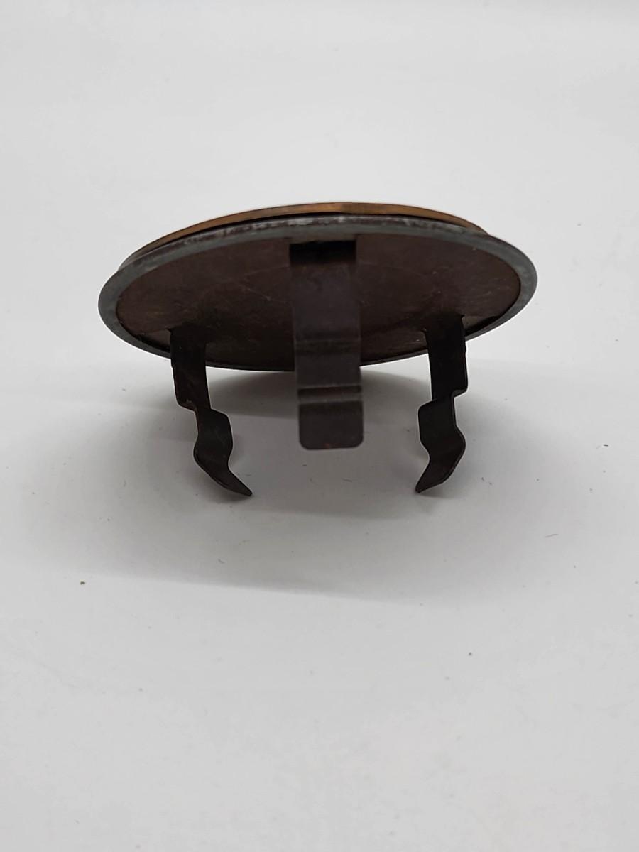 Lot 57: Military LOT Garrison Cap- Leather Money belt 44"L in original box- hubcap? and pair of US Brass Collar Pins