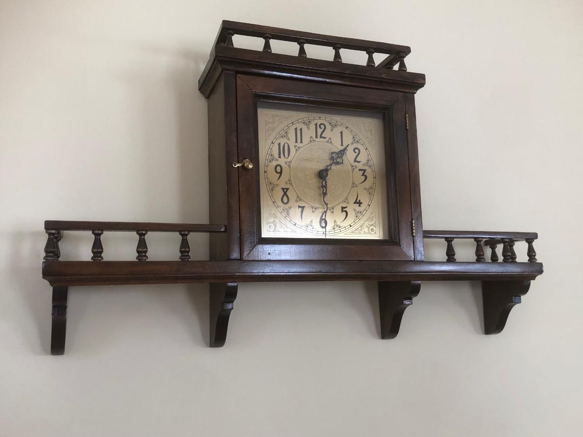 LOT 1L: Wooden Wall Clock w/ Display Shelves