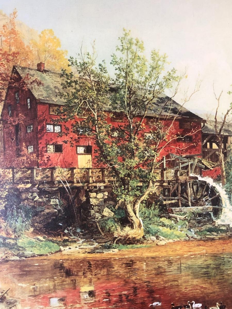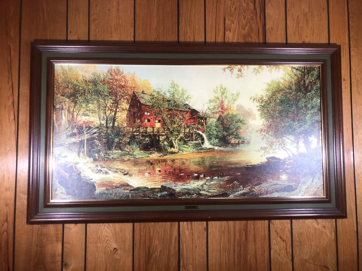 LOT 1D: "The Old Red Mill" by J. Cropsey Vintage Framed Art Print