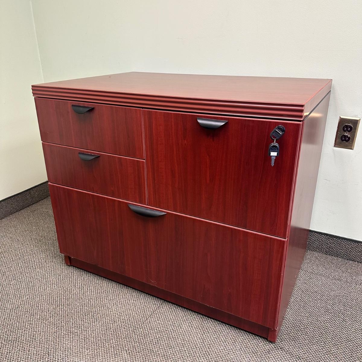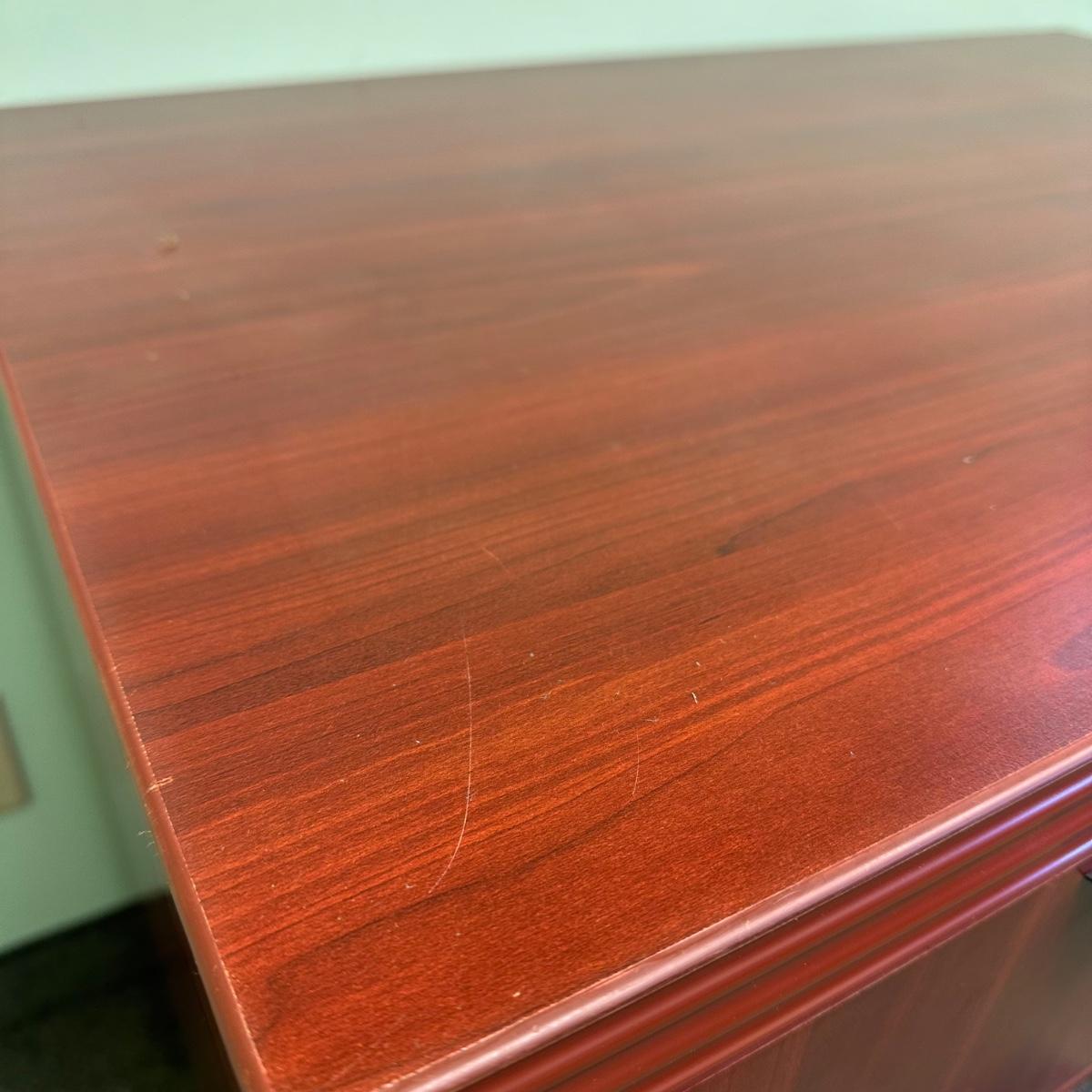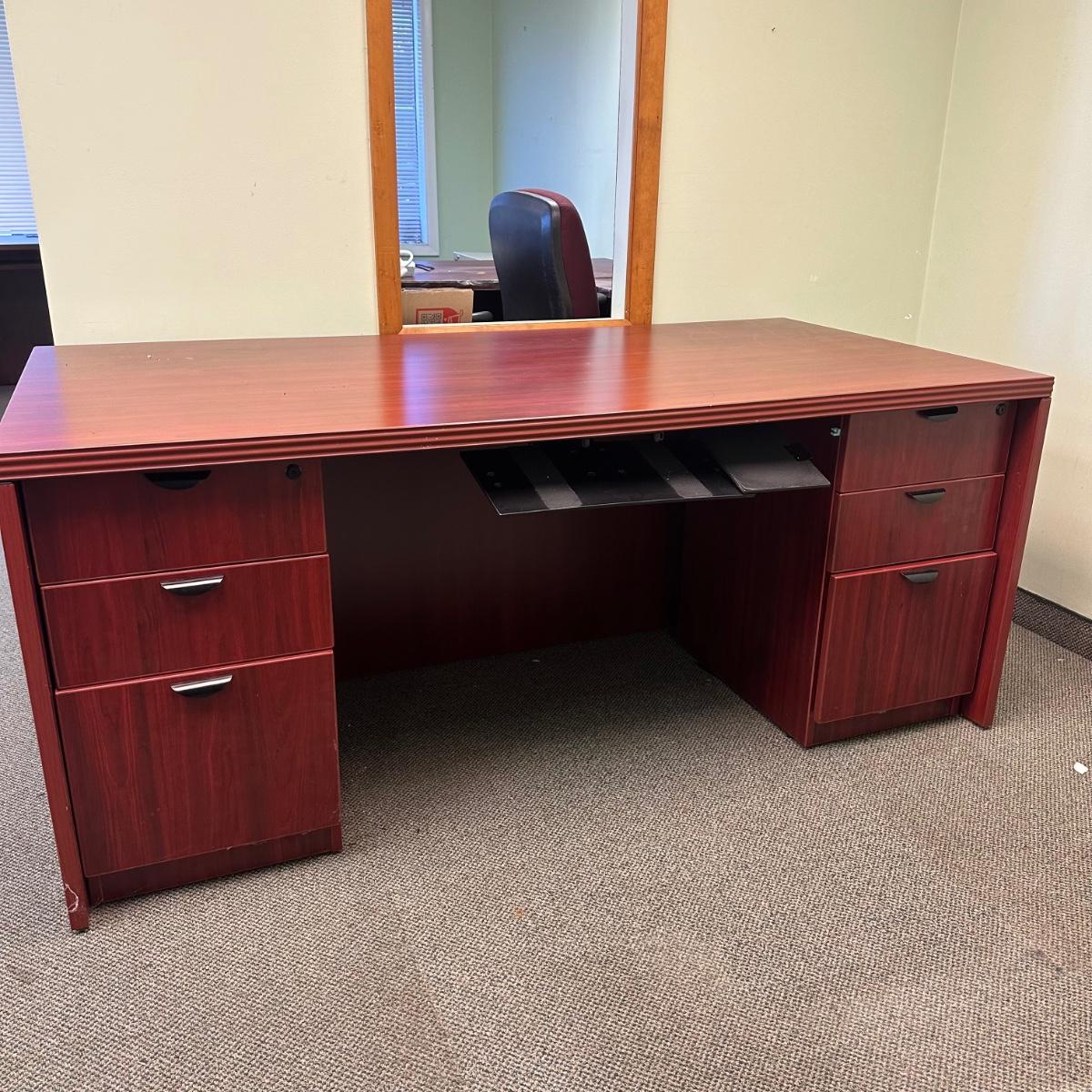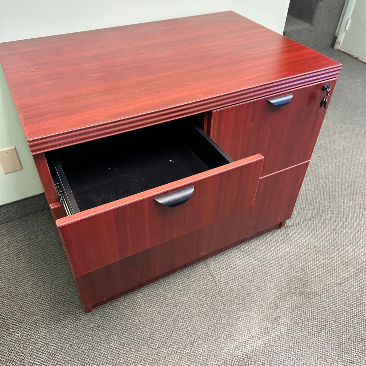 Desk is 71x35.5x30” and cabinet is 35.5x23.5x30” - Please see all pictures as they are the best representation of the items. The pictures show condition, measurements if taken, and what is included in the lot. Due to the large amount that we photograph and the time frame, we are not always able to take measurements. All items unless noted, are pre-owned and have been used. If you purchased furniture, you must bring help. We do not allow one person to carry large furniture out on their own. Bring help, tools and a truck for the safety of our client’s homes, and your personal safety. Any damages that result to the property including walls, and floors due to moving of the furniture will be charged to the buyer. Company policy. Thank you.