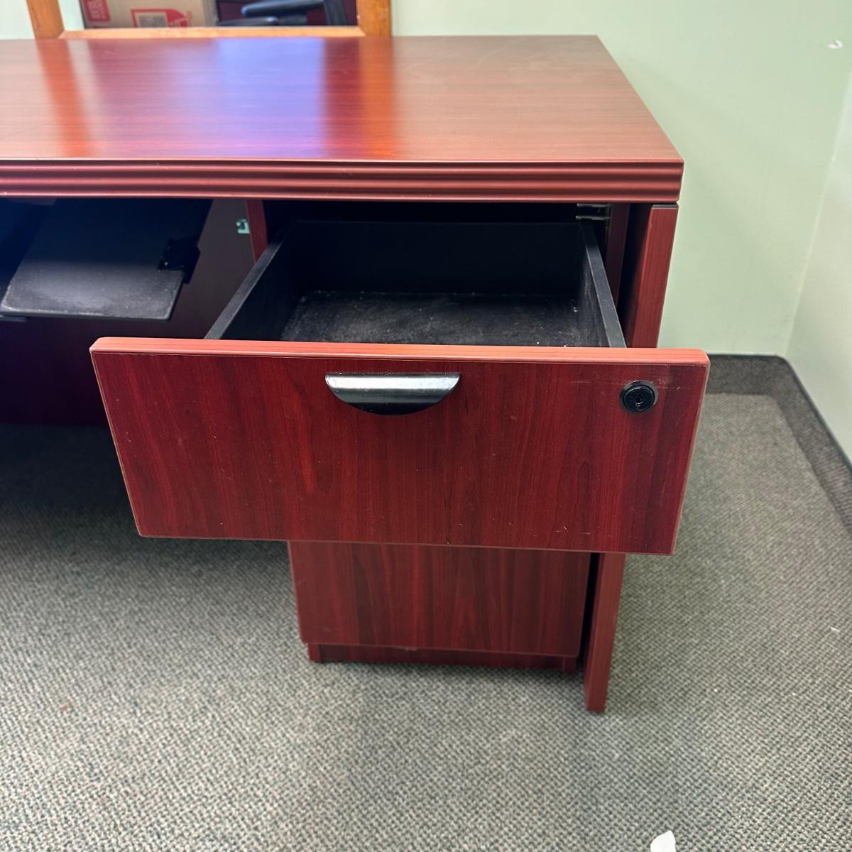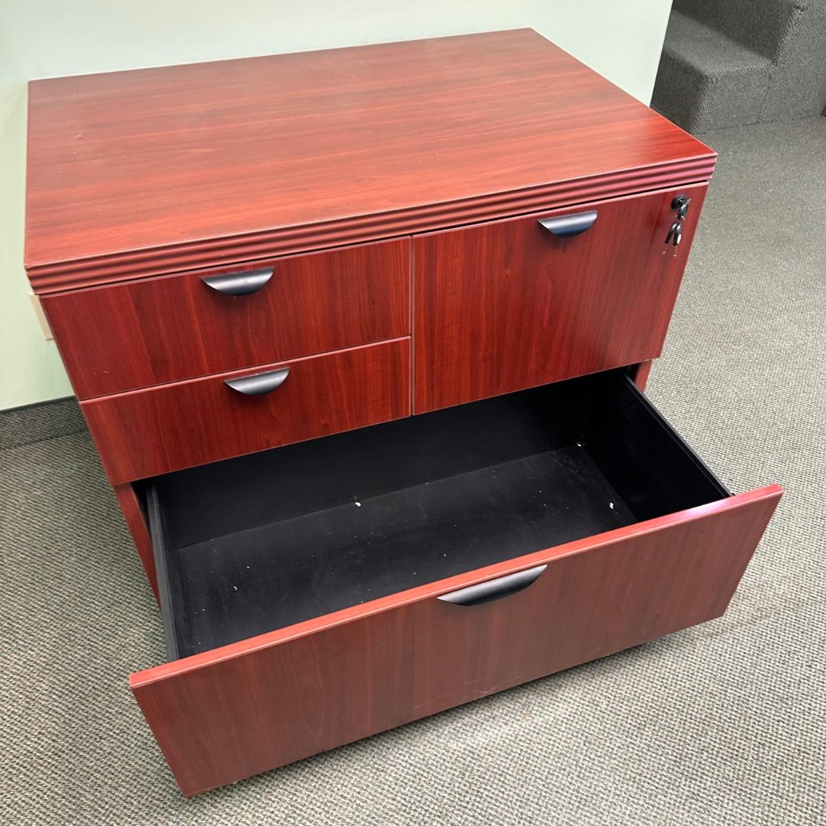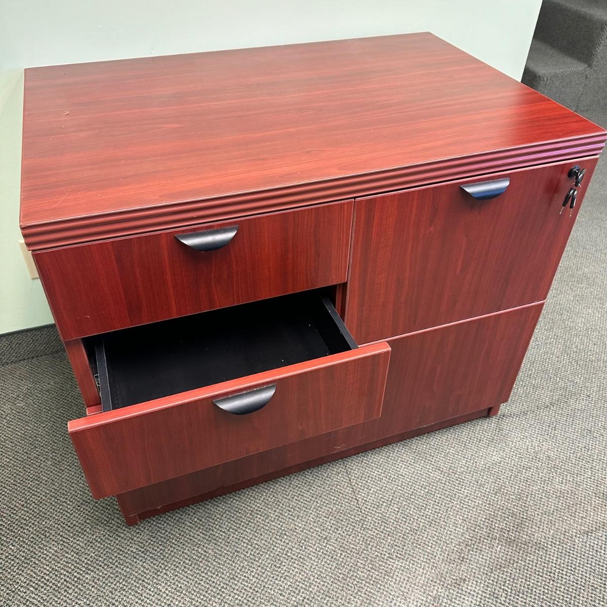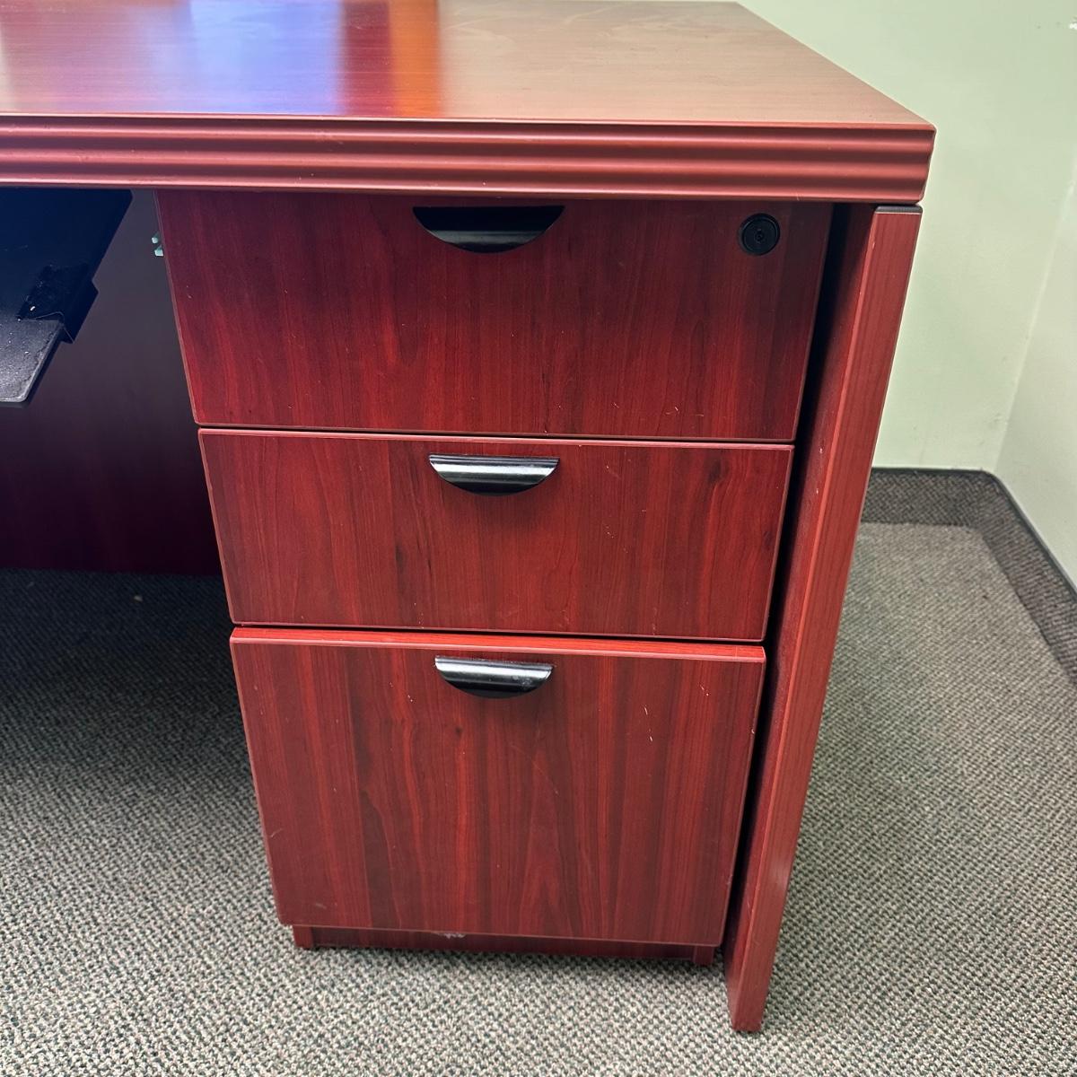 Desk is 71x35.5x30” and cabinet is 35.5x23.5x30” - Please see all pictures as they are the best representation of the items. The pictures show condition, measurements if taken, and what is included in the lot. Due to the large amount that we photograph and the time frame, we are not always able to take measurements. All items unless noted, are pre-owned and have been used. If you purchased furniture, you must bring help. We do not allow one person to carry large furniture out on their own. Bring help, tools and a truck for the safety of our client’s homes, and your personal safety. Any damages that result to the property including walls, and floors due to moving of the furniture will be charged to the buyer. Company policy. Thank you.