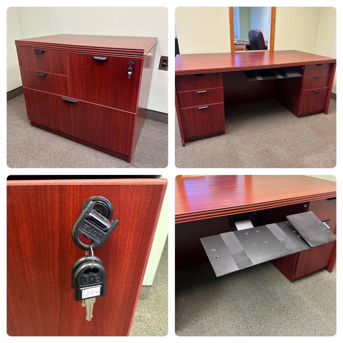 LOT 1S: Locking File Cabinet & 6 Drawer Computer Desk