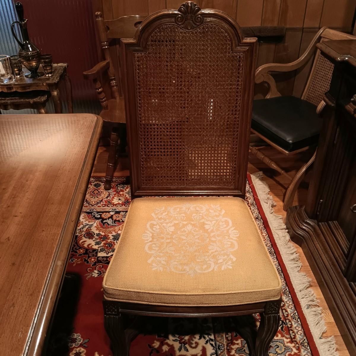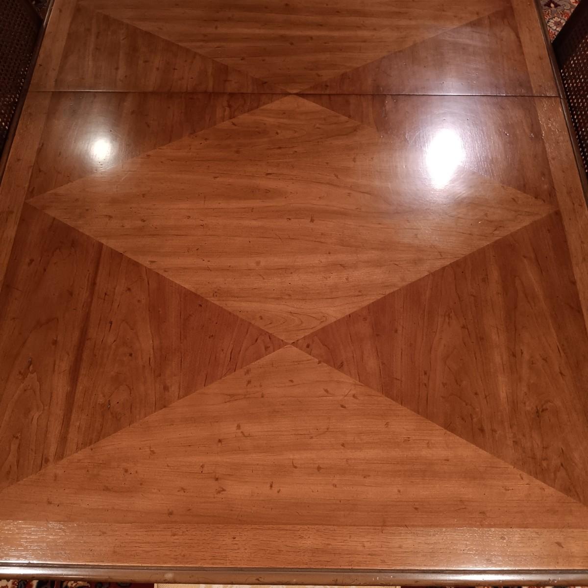 LOT 1: Solid Wood Dining Table with Henredon Cane Back Chairs