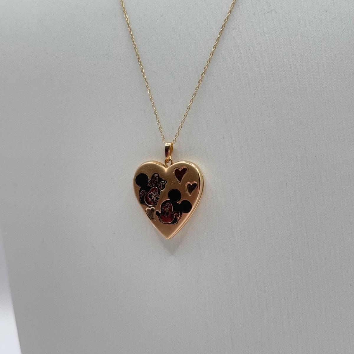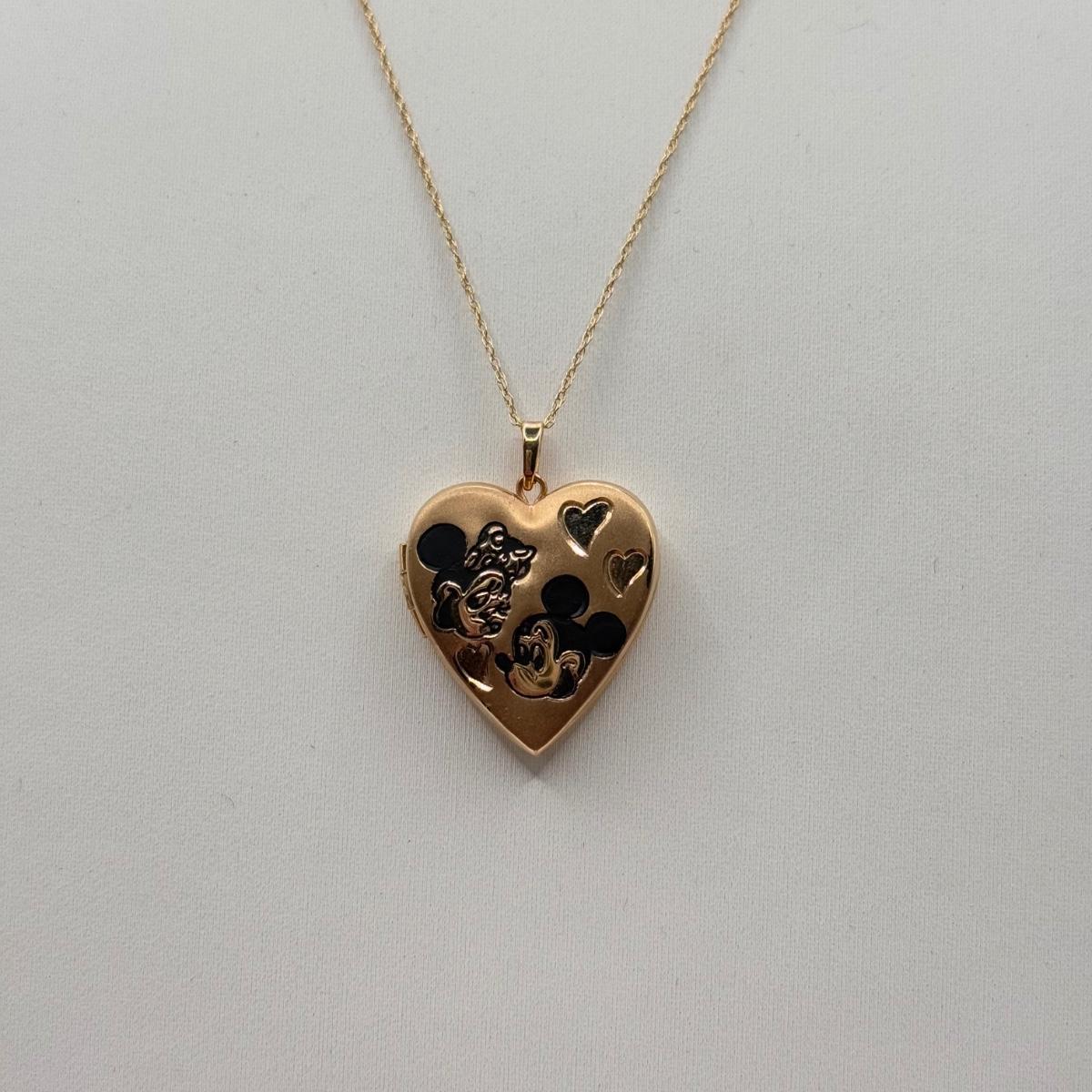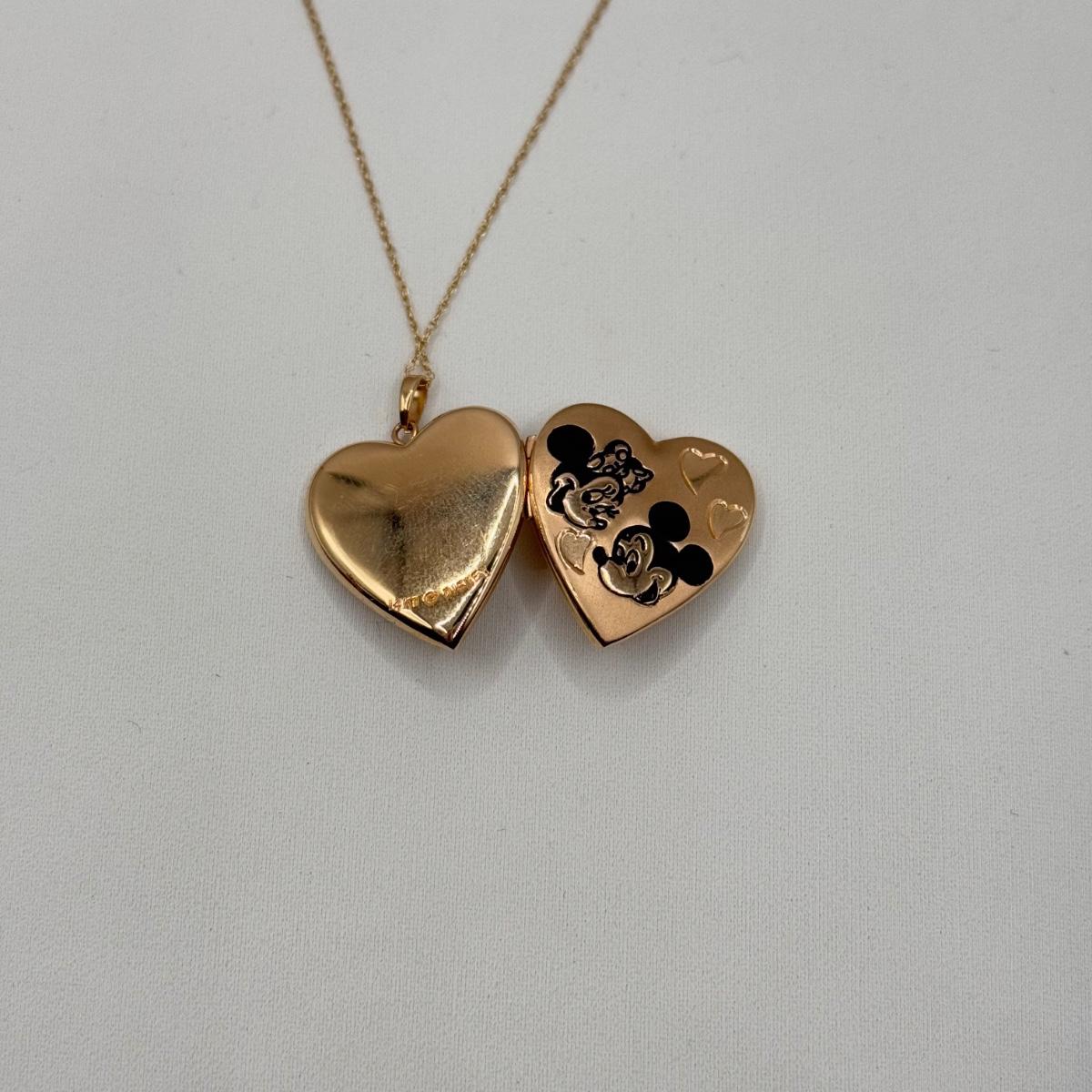 LOT 1J: 14k Gold Disney Mickey & Minnie Mouse Heart Locket Pendant on 16” 14k Gold Chain
