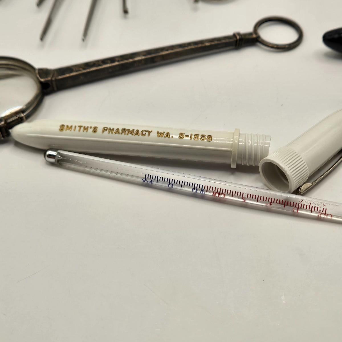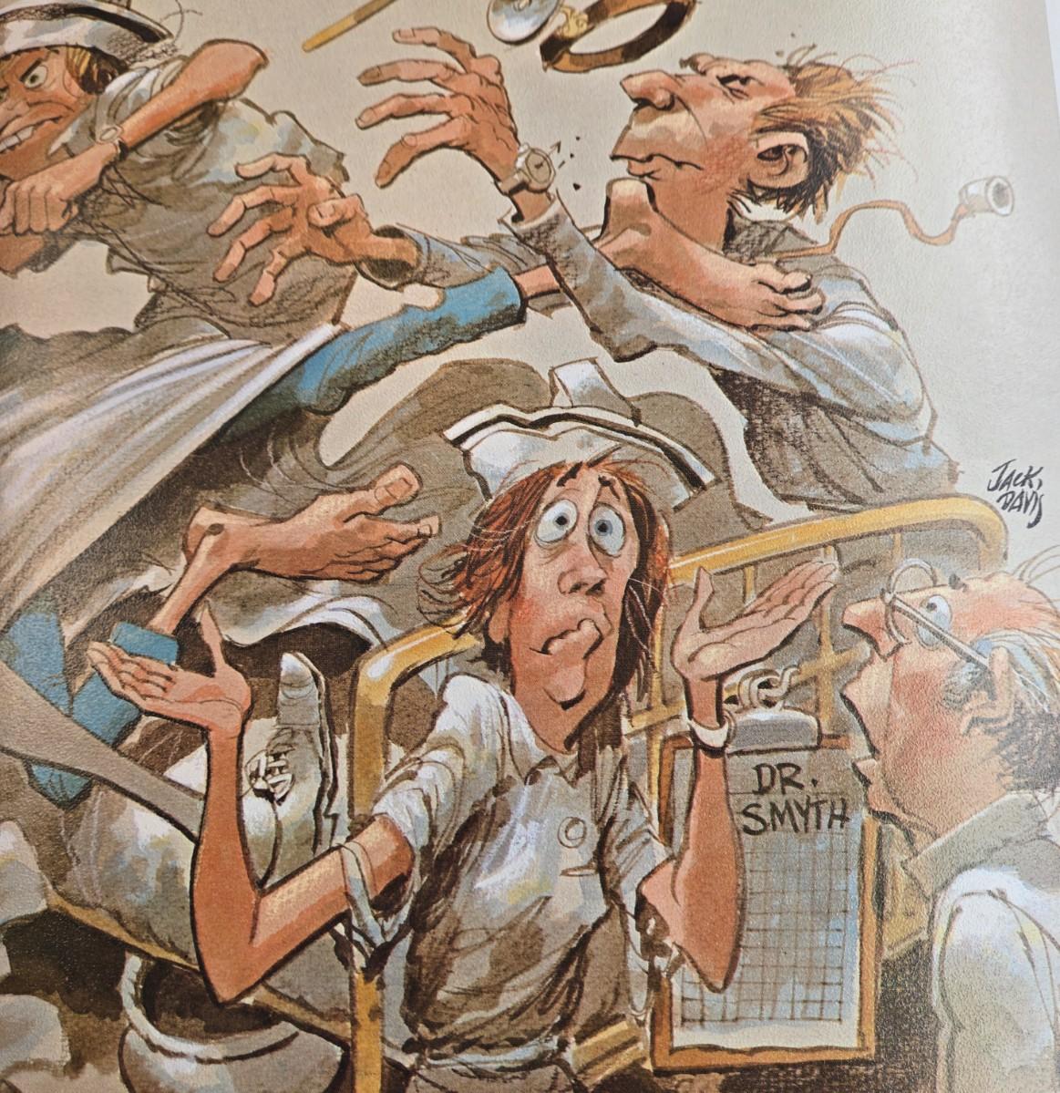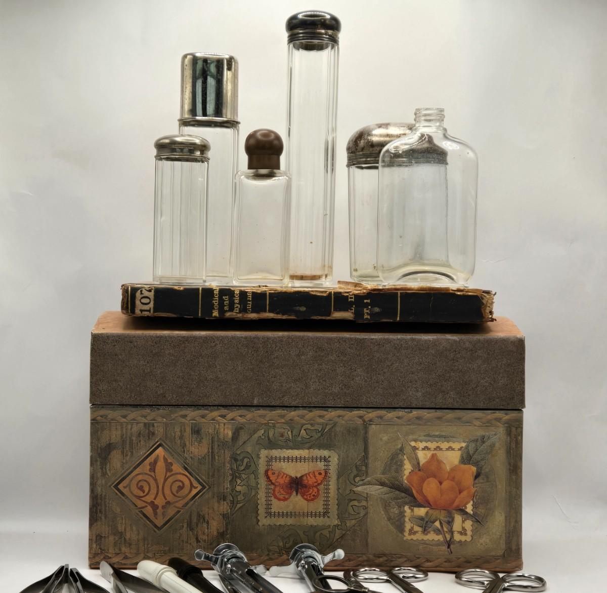 LOT 1: Caricature by Jack Davis of a Chaotic Hospital Scene, Vintage Humphreys' Remedies Sign, The Philadelphia Medical & Physical Journal, and Vintage Doctor Glass Containers & Tools