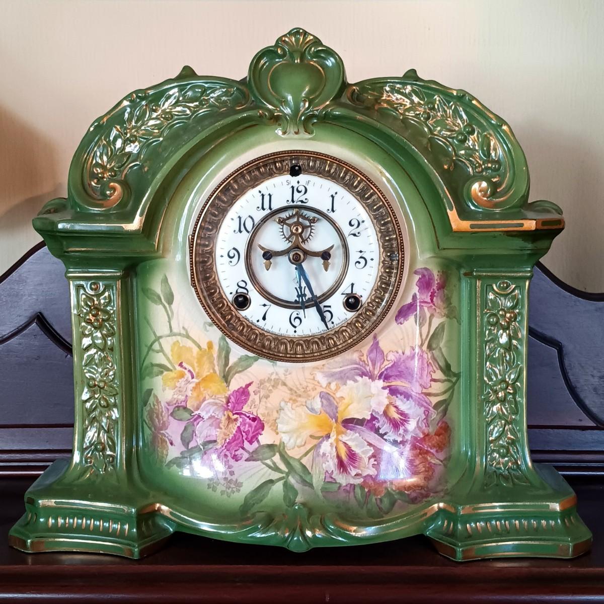 LOT 1: Ansonia Clock Co. Royal Bonn La Orb Mantel Clock
