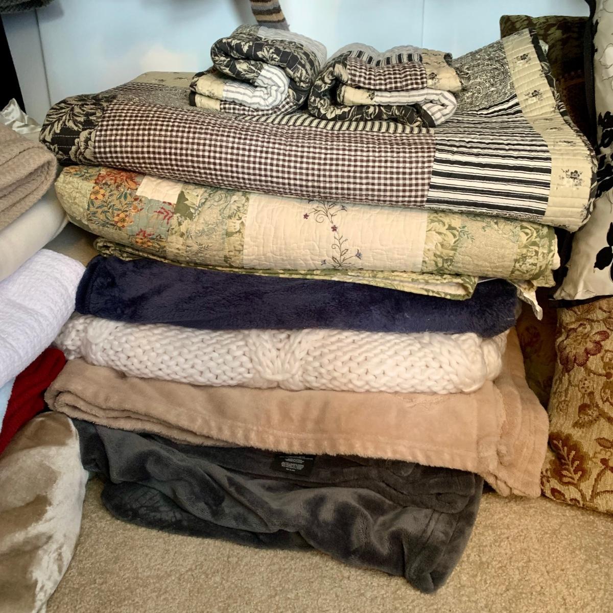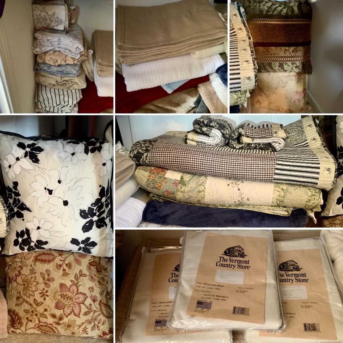 LOT 1 Z: Large Bedding Collection; Throw Pillows, Sheets, Pillowcases, Quilts, Throw Blankets, & More!