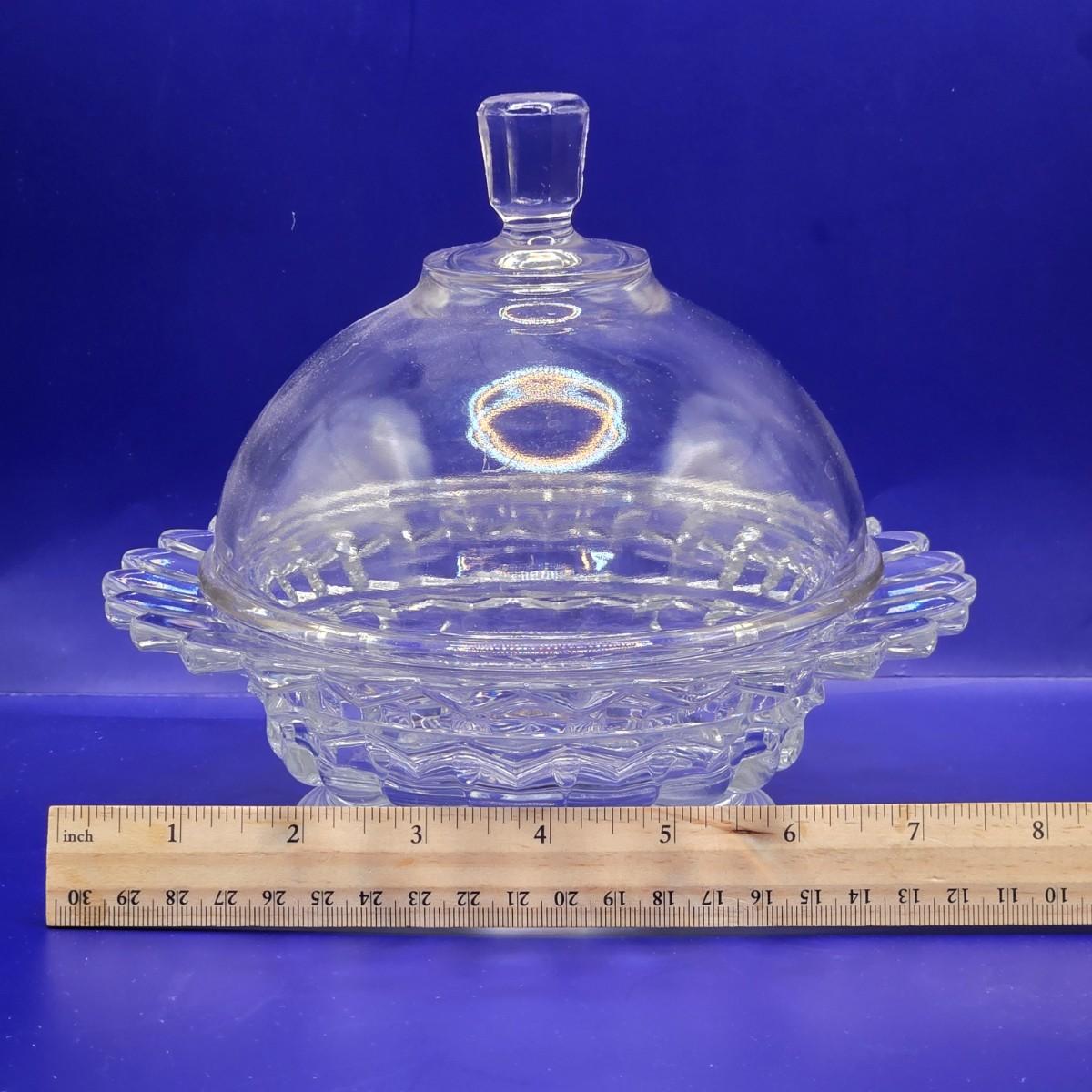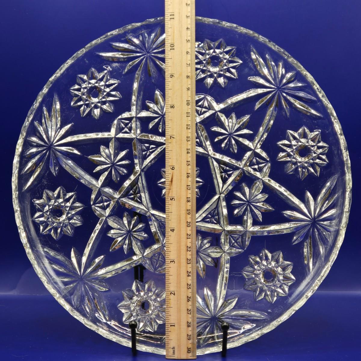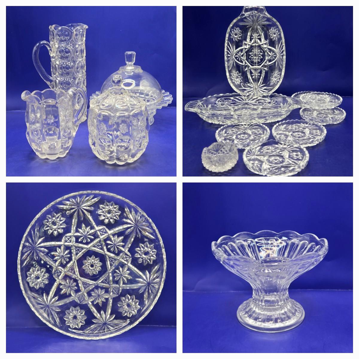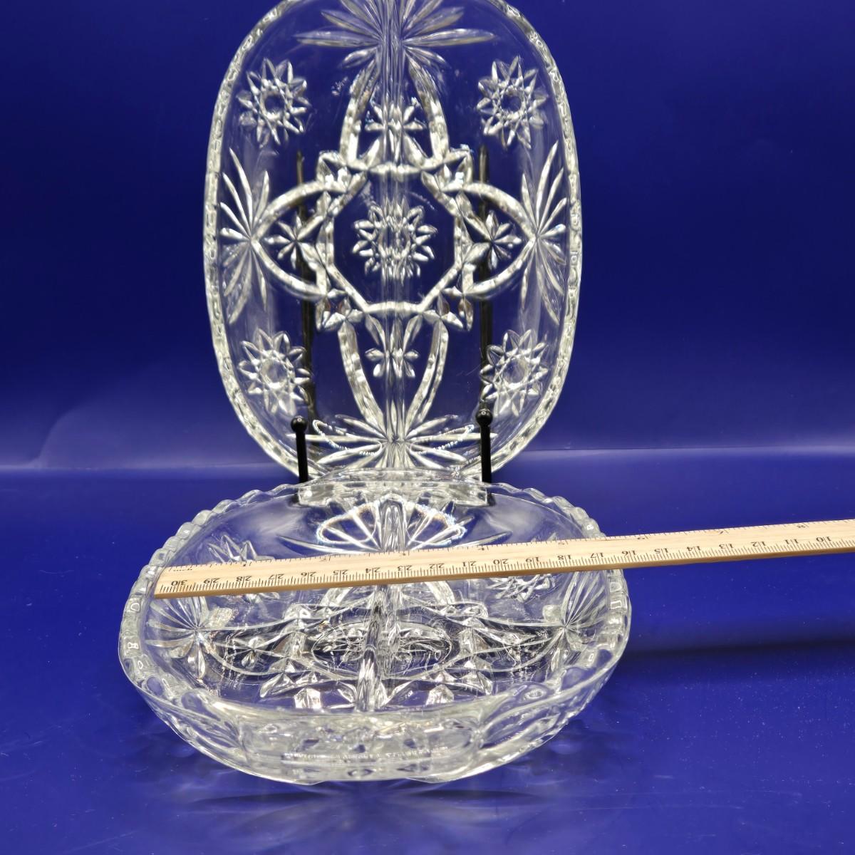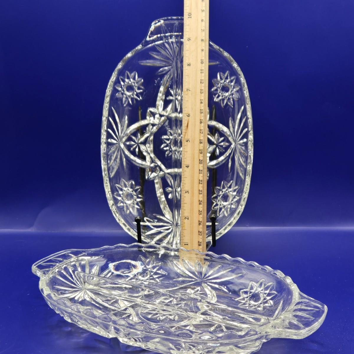 LOT 1L: Variety of Crystal and Glass Pieces Including Large Platter, Covered Cheese Dish, Creamer & Sugar, and More