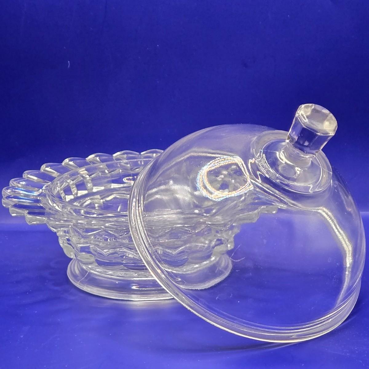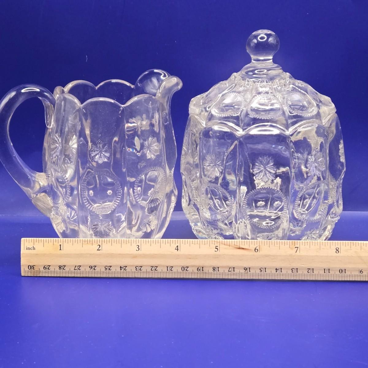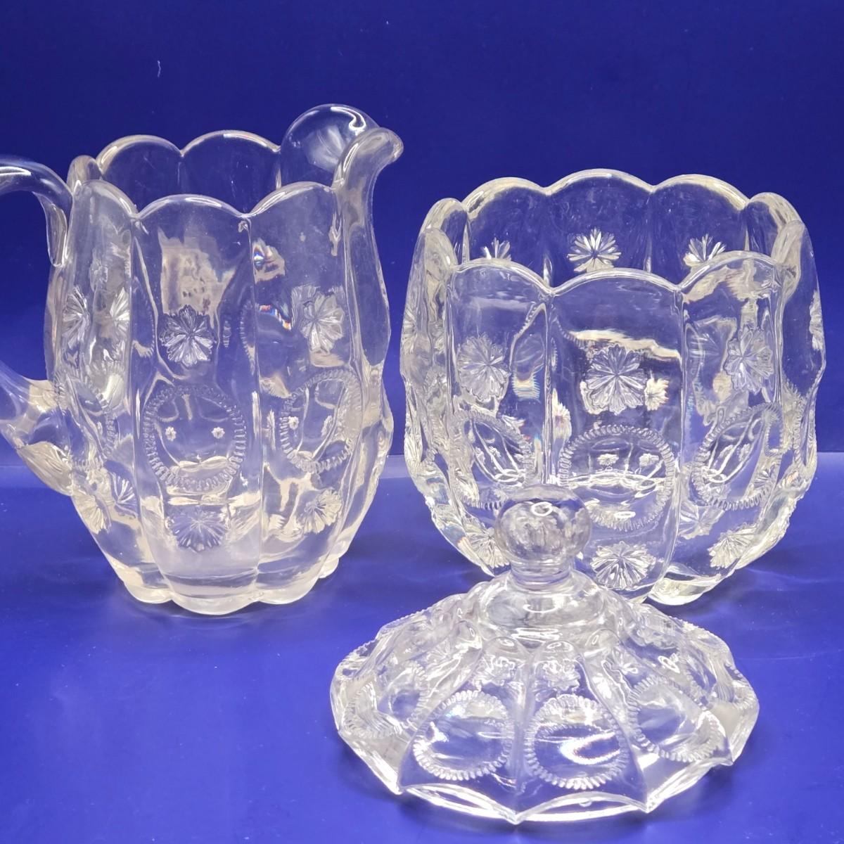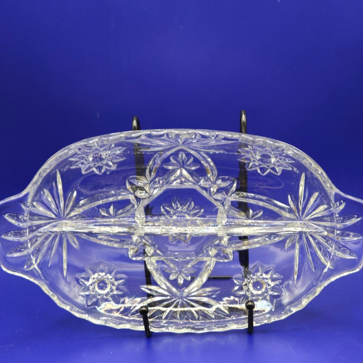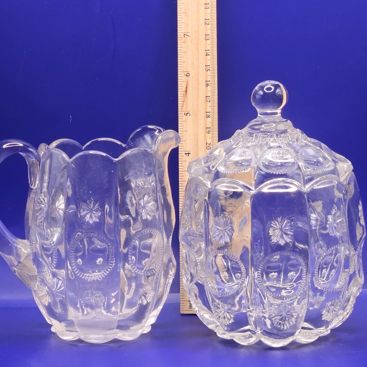 LOT 1L: Variety of Crystal and Glass Pieces Including Large Platter, Covered Cheese Dish, Creamer & Sugar, and More