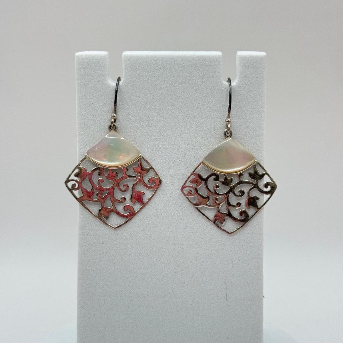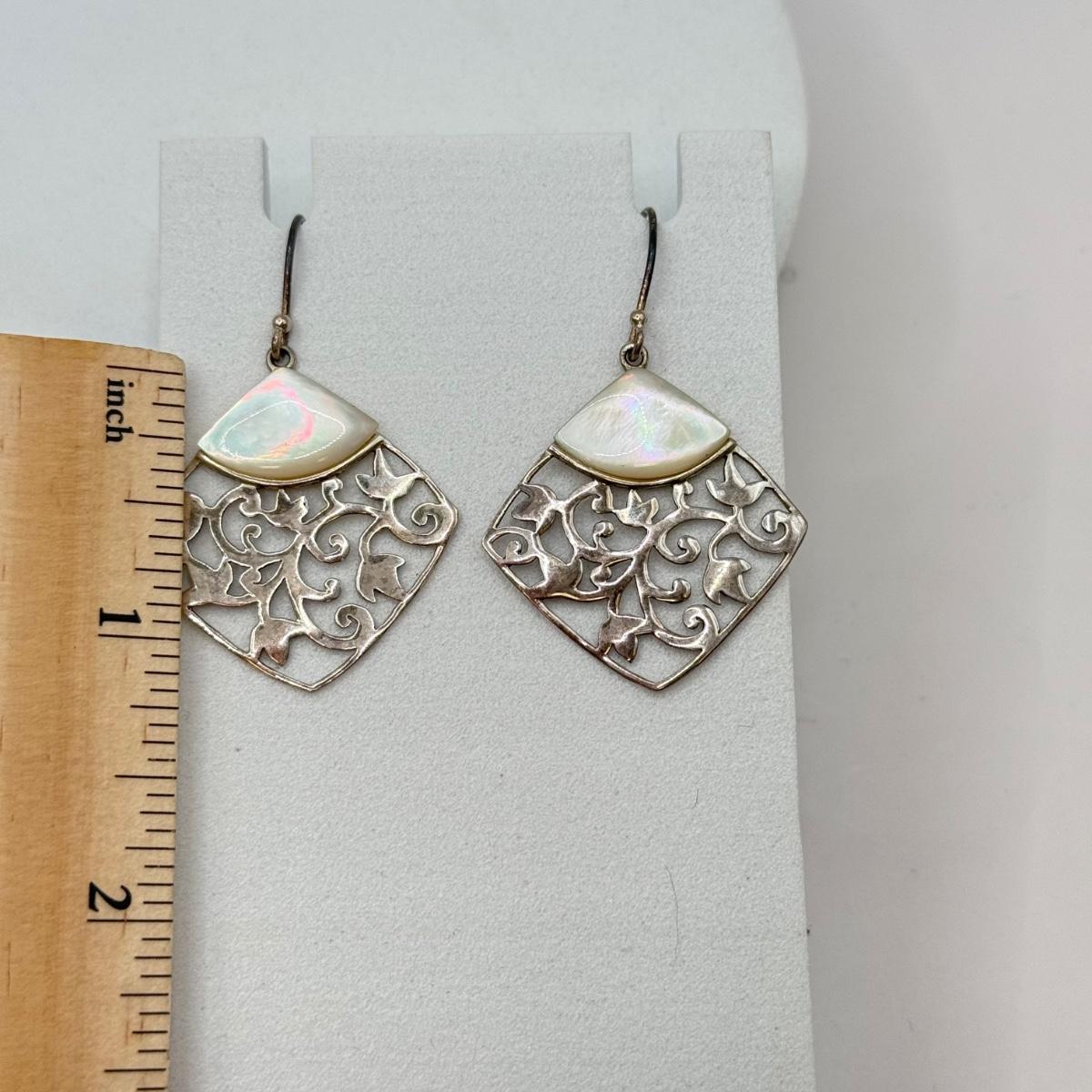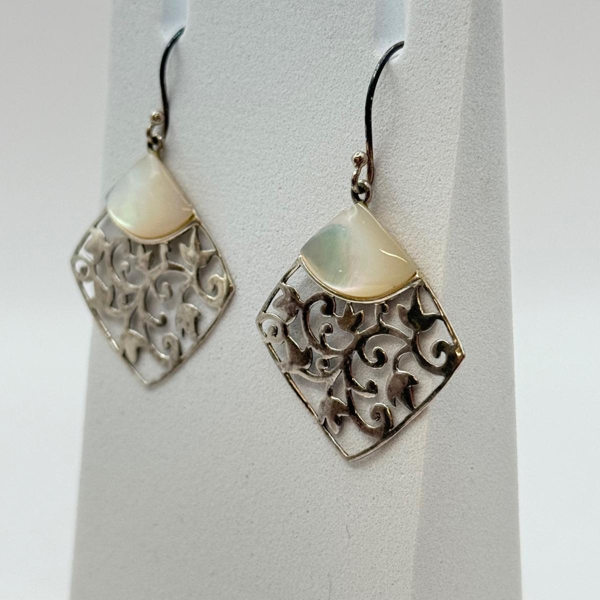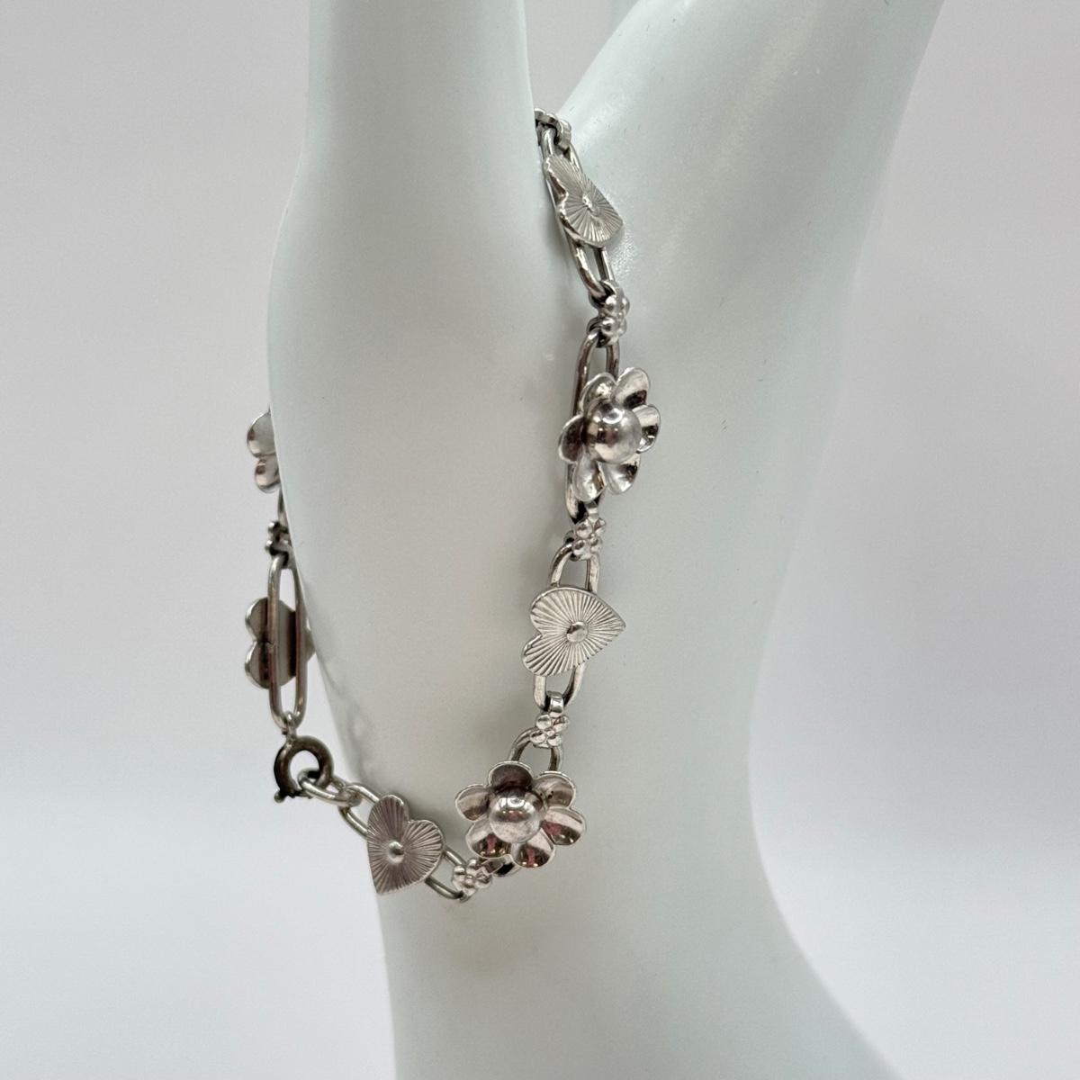 LOT 1J: Sterling Silver (925) Collection 15" Necklace w/Pendant, Mother of Pearl Earrings, Heart & Flower Bracelet