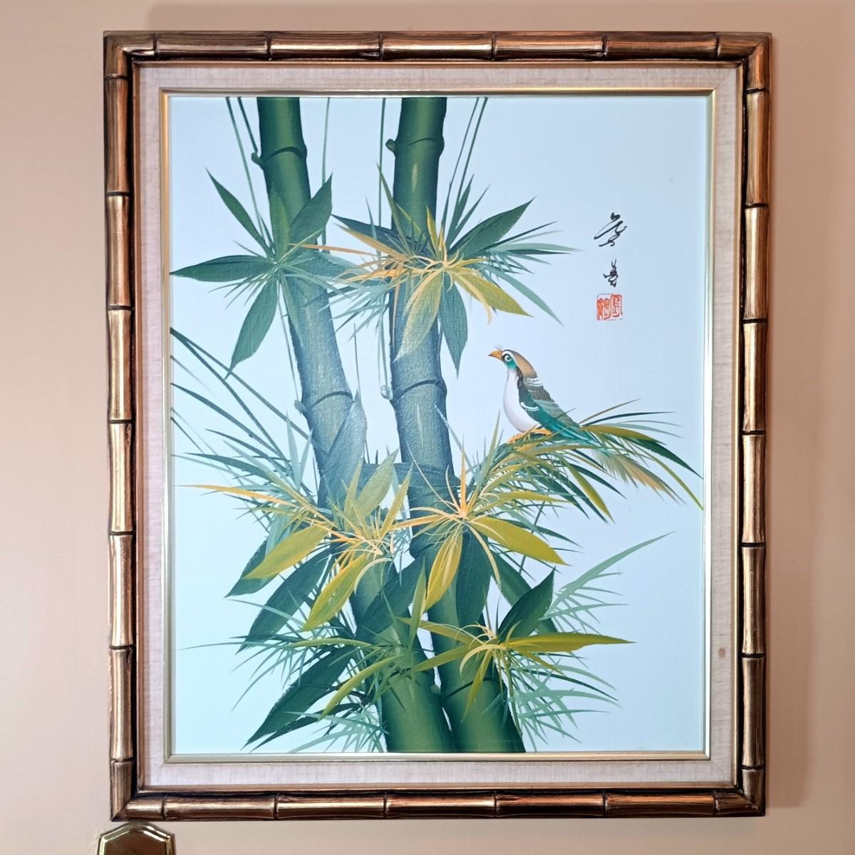 LOT 1H: Signed Oil on Canvas of Bird and Bamboo