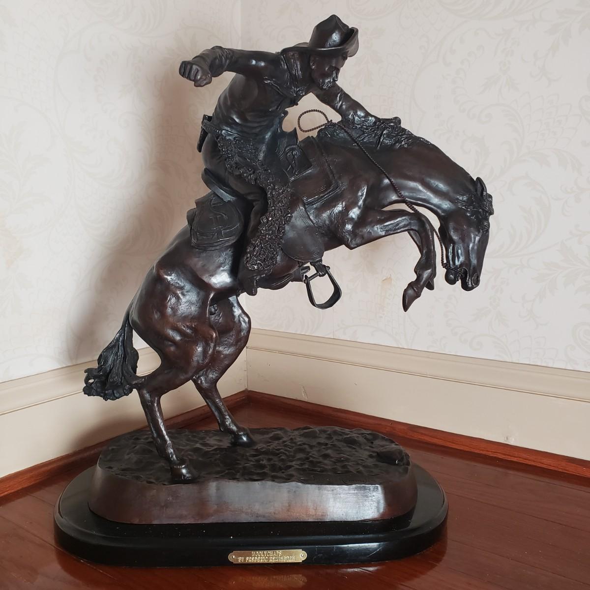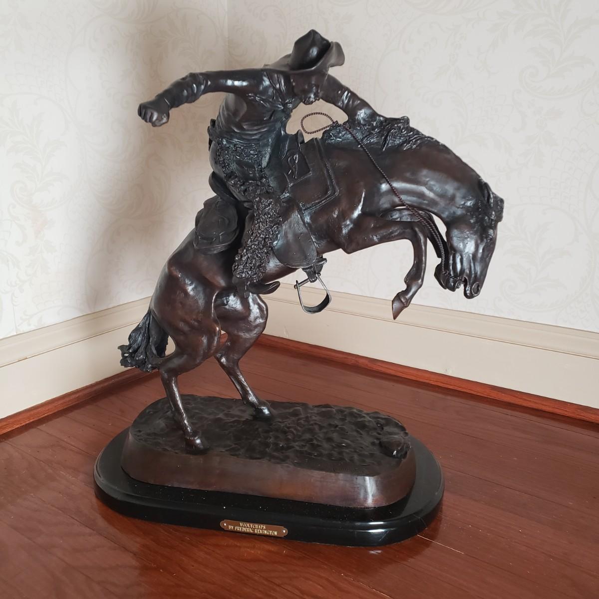 LOT 1L: Remington Bronze Sculpture "Wooly Chaps"